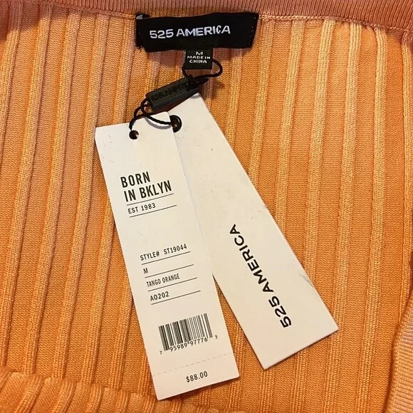 A comfy rib knit midi skirt with a chic split side, pulls on to completes an effortless look. New with tags! Size M Approx measurements laying flat Waist 14” Length 29” Slit 10.5” Color-Tango orange(solid sherbet orange color) Features elasticized waist ribbed knit construction, split side, pull on style, midi length 80% rayon, 20% nylon •No Returns No Holds No Trades