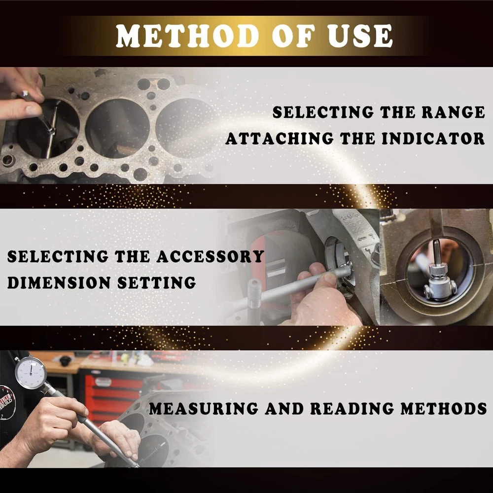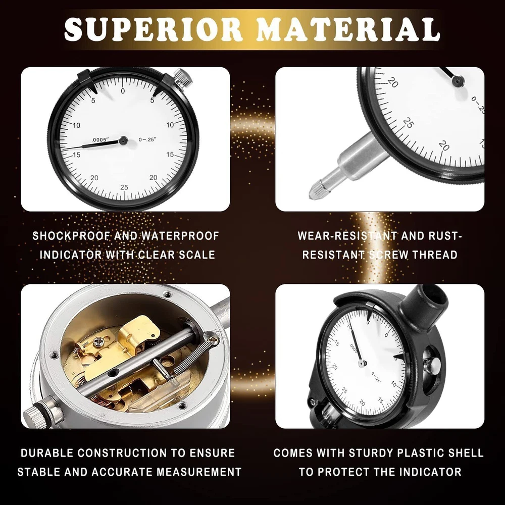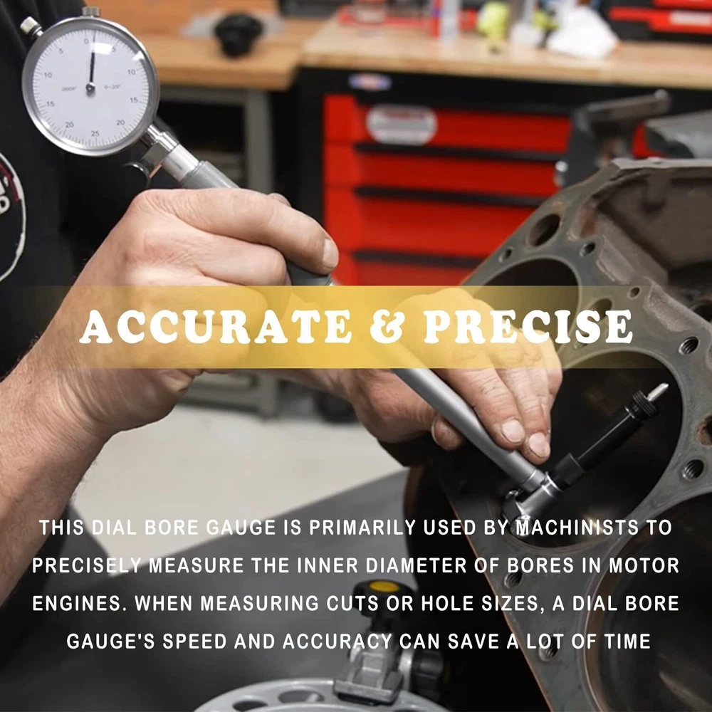 Feature: 1. Performance Accurately measuring hole diameters & detect geometry abnormalities, measure the interior diameter of a hole at any depth (within its reach) 2. Material The dial bore gage anvils are made of high quality carbide, extending wear time and improves wear resistance. Hole gauges are easily adjustable and self-centering for fast, accurate measurements. 3. Application & Accurate Measurements The bore gage features a dial indicator with a graduations of 0.0005" and a measuring depth of 9.5", and has a measurement range of 1.4 to 6 ". Directly replace part for 52-646-400-0 4. Superior Quality The dial bore gage anvils are made of high quality carbide, extending wear time and improves wear resistance. Hole gauges are easily adjustable and self-centering for fast, accurate measurements. 5. Reliable Performance Accurately measuring hole diameters & detect geometry abnormalities, measure the interior diameter of a hole at any depth (within its reach) Product description 52-646-400-0 Gauge Measurement Tool Extender Cylinder Dial Bore Gage Set Accurately measuring hole diameters & detect geometry abnormalities, measure the interior diameter of a hole at any depth (within its reach) Set includes a bore gage with an insulated grip, 2x self-centering measuring heads, 9 x 2- 6 " anvils, 3 x 1.4-2 " anvils, a extender holder and one fitting case. Package Include Set includes a bore gage with an insulated grip, 2x self-centering measuring heads, 9 x 2- 6 " anvils, 3 x 1.4-2 " anvils, a extender holder and one fitting case.