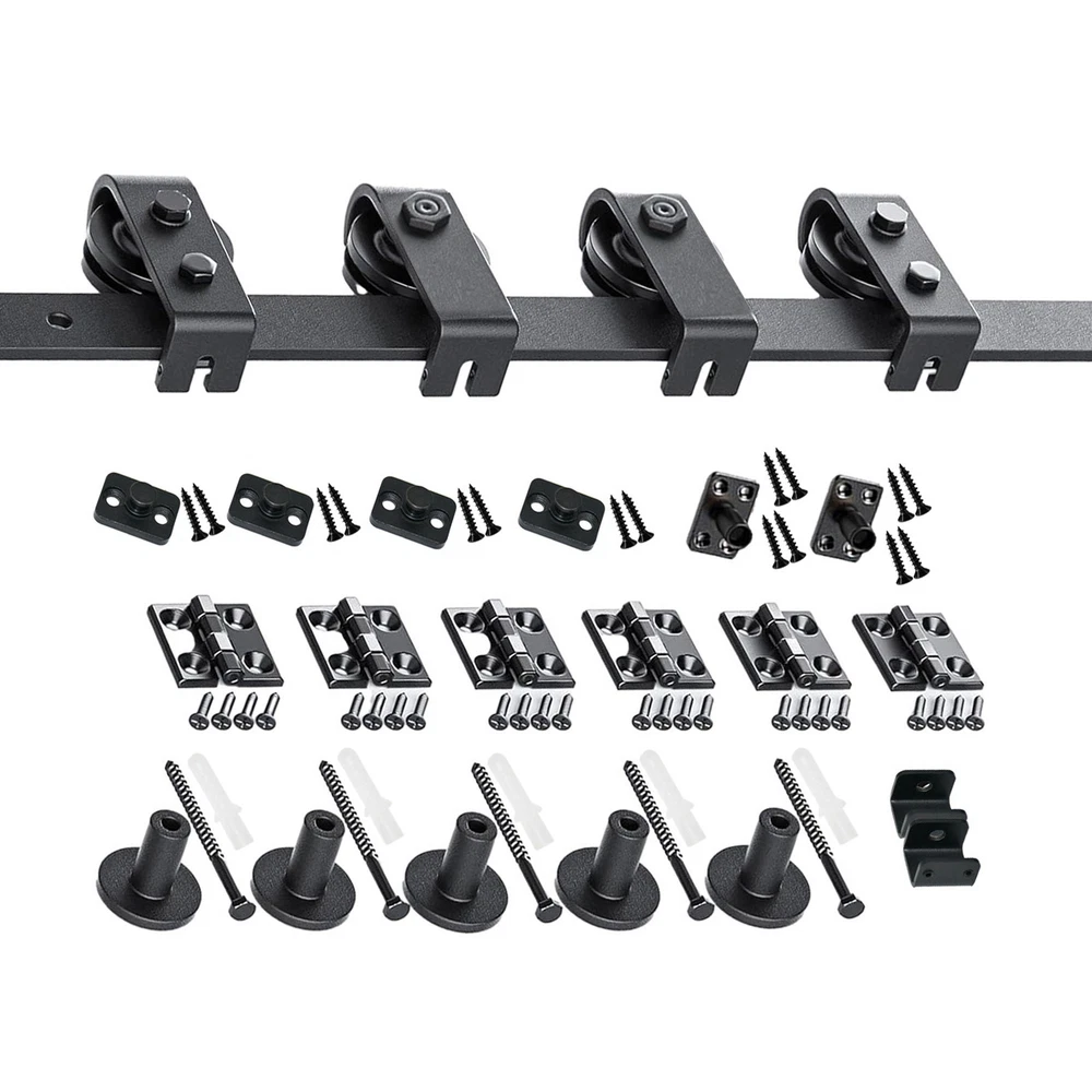 52in Bifold Sliding Barn Door Hardware Folding Roller Flat Track Kit For 4 Door