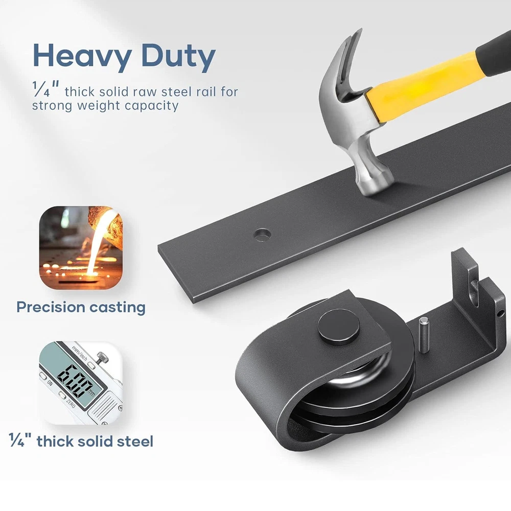 This sliding barn door hardware kit is a game-changer! The carbon steel construction feels super sturdy, and the rollers glide smoothly for whisper-quiet operation. Installation was a breeze, and now my folding doors save so much space while looking stylish. The anti-rust coating gives me peace of mind—no more worrying about wear and tear. Such a sleek upgrade for any room!