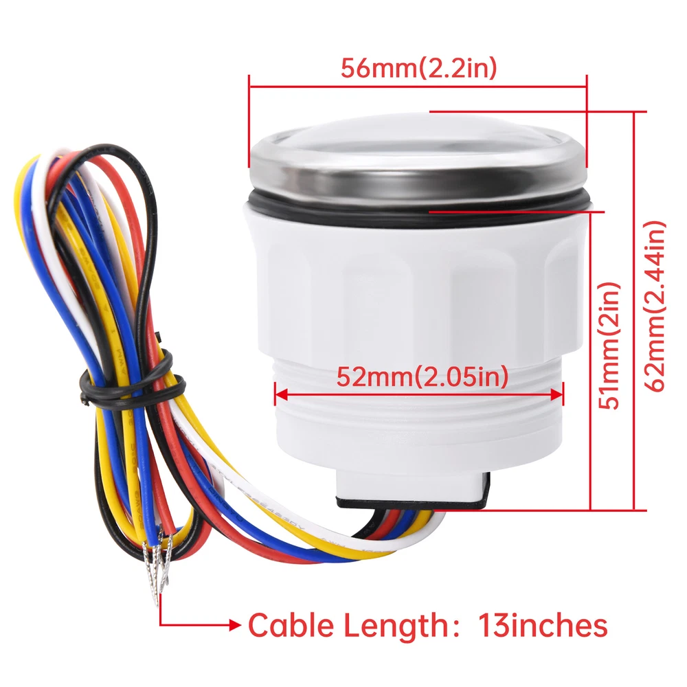 52mm 4 Gauge Set Fuel Level Oil Pressure Water Temp Volt For Car Truck Boat US 4 Gauge Set 52mm Fuel Water Temp Volt Oil Pressure For Car Truck Boat 7Colors LED Warmly tips: If any problem after buying, such as some when you install or the parcel received or un-received, please do not open a case and do not hesitate to contact us. We would do our best to give you the best solution Feature: High-brightness LED backlight. 316 stainless steel for long-term use even in acid-base, humid environment. IP67 waterproof and dust-proof grade. With curved glass( with anti-fog function). Suitable for all kinds of vehicle modification. Using stepper motor drive pointer, accurate display of the engine speed, and with the LCD display clear display mileage. Gauges have many kinds backlight color (red,yellow,orange,green,blue,purple,white),customers can adjust any color that you like Fuel Level Gauge Sizes: 52 mm (2-1/16") Measuring Range: Empty - Full Resistance: 240 (E) - 33 (F) ohms NOTES: 240-33ohms fuel level sensor only fit for 240-33ohms fuel gauge Backlight: 7 Colors Volt Gauge Sizes: 52 mm (2-1/16") Measuring Range: 8 - 16 (V) Backlight: 7 Colors Water Temperature Gauge Install diameter: Φ52mm Indication range: 0~120℃/30-250℉ Input signal: 287.4~22.4 ohms Storage temperature: -40~+85℃ Backlight: 7 Colors Oil Pressure Gauge Install diameter:Φ52mm or 2-1/16" Indication range:0~10bar / 0-150 PSI Input signal: 10-184 ohms Operating temperature:-30~+75℃ Storage temperature:-40~+85℃ Backlight: 7 Colors Package Includes: 1X 52MM Fuel Level Gauge 1X 52MM Voltmeter 1X 52MM Water temp gauge 1X 52MM Oil pressure gauge 4X Installation Instruction 4X Cable