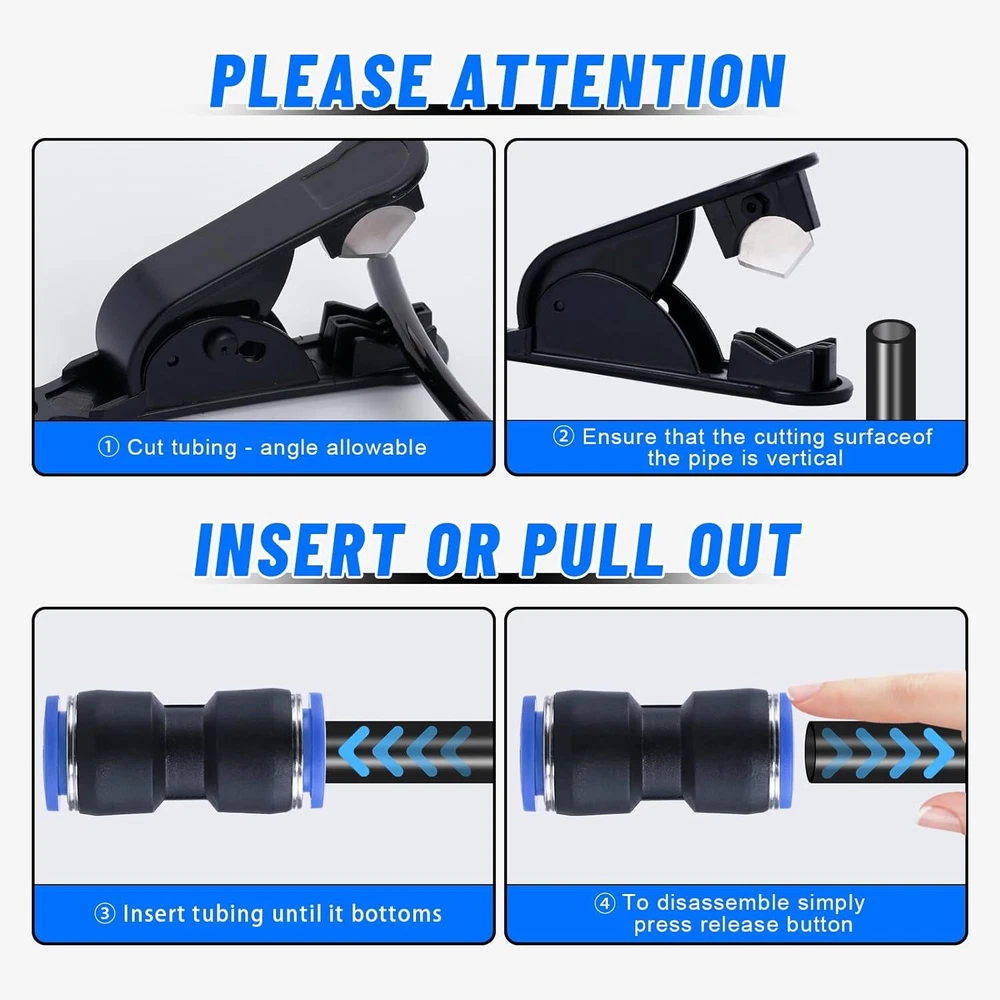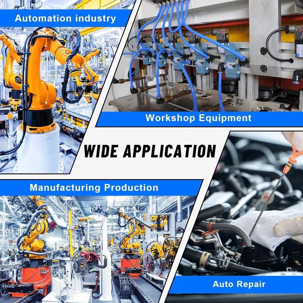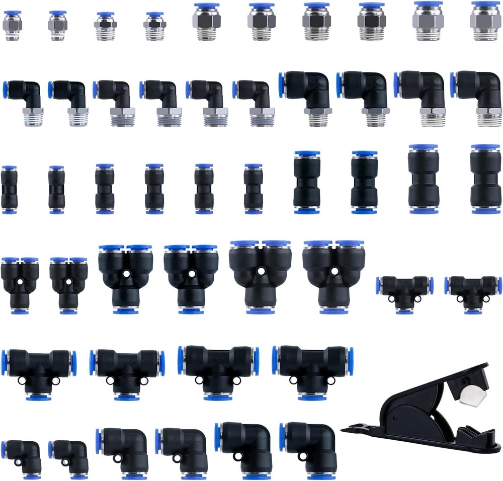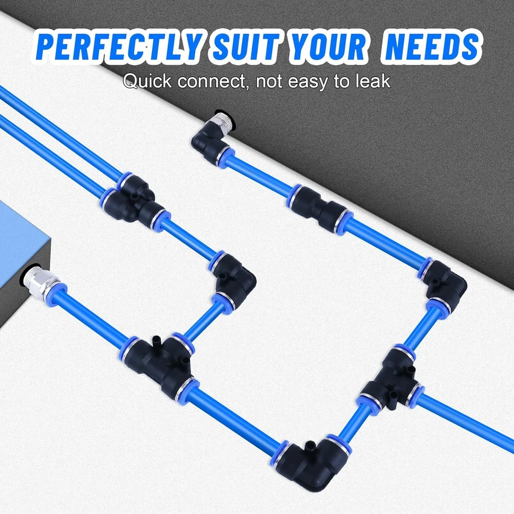 53 Pcs Quick Connect Air Hose Fittings Kit 1/8" 1/4" 3/8" 1/2" Air Line Quick... PREMIUM MATERIAL - Quick connect air hose fittings kit made of high quality Polybutylene Terephtalate (PBT) and with stainless steel lock claw and good steel washers for a thousand bounces. High pressure resistance and environmental, can withstand strong pressure without tripping 53 PCS KIT - The air line quick connect fittings includes 53 pcs fittings: 12 pcs Straight Connectors with NPT Thread. 12 pcs 90° Elbows Connectors with NPT Thread. 8 pcs Straight Union Connectors. 6 pcs Tees. 6 pcs 90° Elbows Connectors .6 pcs Splitters Connectors.1 pc Tubing Cutter. Pneumatic fitting types: 1/2", 3/8", 1/4", 1/8". All in a durable yet lightweight plastic storage container with flip lock tabs, rust and secure WIDE APPLICATION - Our air line fittings are suitable for PU / PA / PE / PVC lines or hoses. They widely applied in manufacturing production lines, truck,trailer repairs, Pneumatic tools, instruments, mechanical gas piping and laboratory automation equipment. Besides those, daily gardening maintenance and lawn mower machine areas also need those items EASY TO INSTALL - Push to connect air fittings assortment is a simple push in design and easy to be installed. Release rings at the top could be pushed down easily when inserting the tube into the coupler and bouncing up immediately when taking out the tube. Cutting tool is included for meeting your tube length requirements MAX WORKING PARAMETER - Fluid type: air, vacuum, 0 -145 Psi, 0 - 0.9 Mpa. Proof pressure: 1.32 Mpa. High pressure resistance, long service life. Temperature Range: 0 - 60 °C | 32 - 140 °F Shipping We offer FREE shipping on all orders! We ship within Three business days of payment, usually sooner. Local pickups and combined shipping options are not provided at this time. Return You can return a product for up to 30 days from the date you purchased it. Any product you return must be in the same condition you received it and in the original packaging. Please keep the receipt. Payment We accept payment by any of the following methods: PayPal Please pay as soon as possible after winning an auction, as that will allow us to post your item to you sooner! Feedback Customer satisfaction is very important to us. If you have any problem with your order, please contact us and we will do our best to make you satisfied. Contact Us If you have any queries, please contact us via ebay. We usually respond within 24 hours on weekdays. Please visit our eBay store to check out other items for sale! Thank you for shopping at our store.
