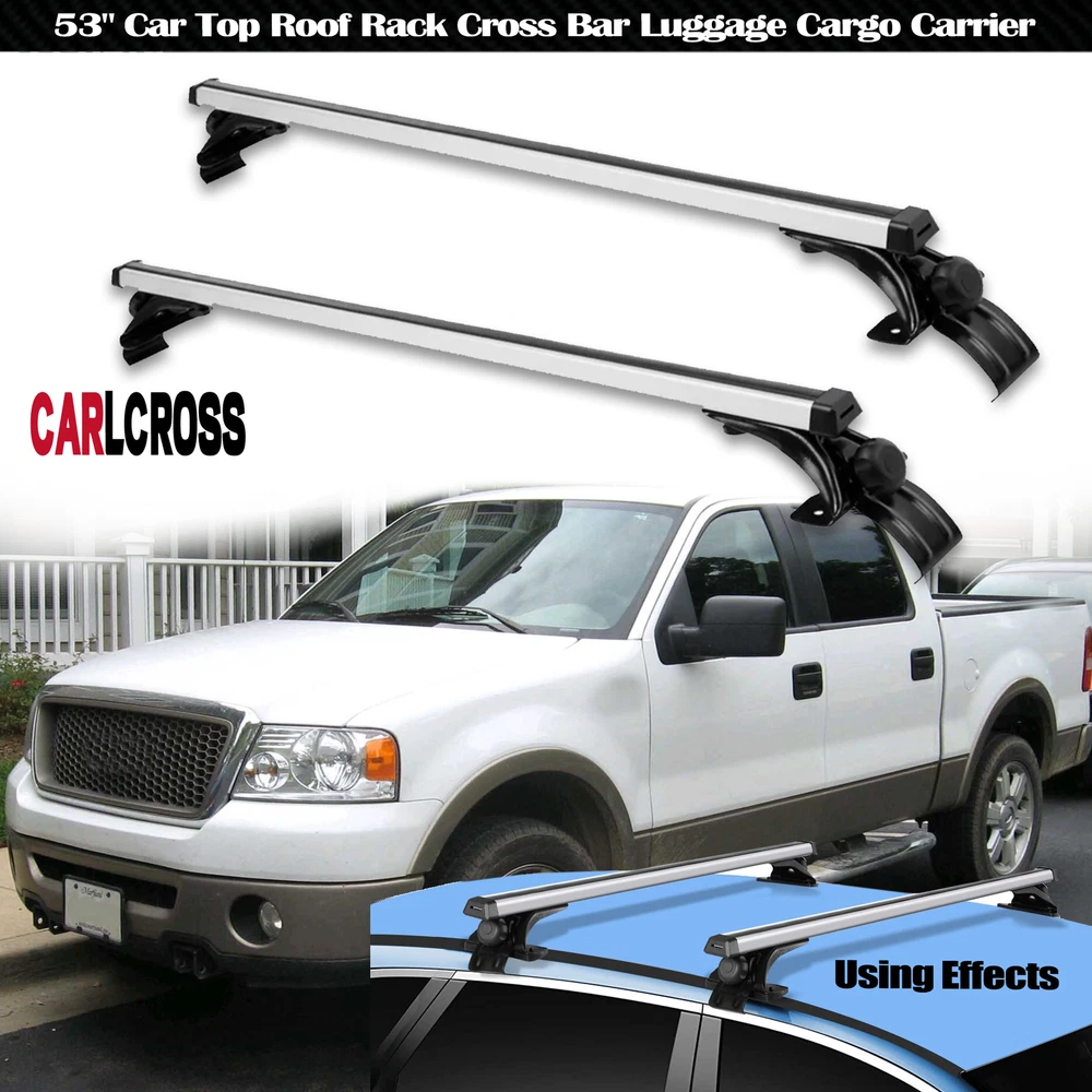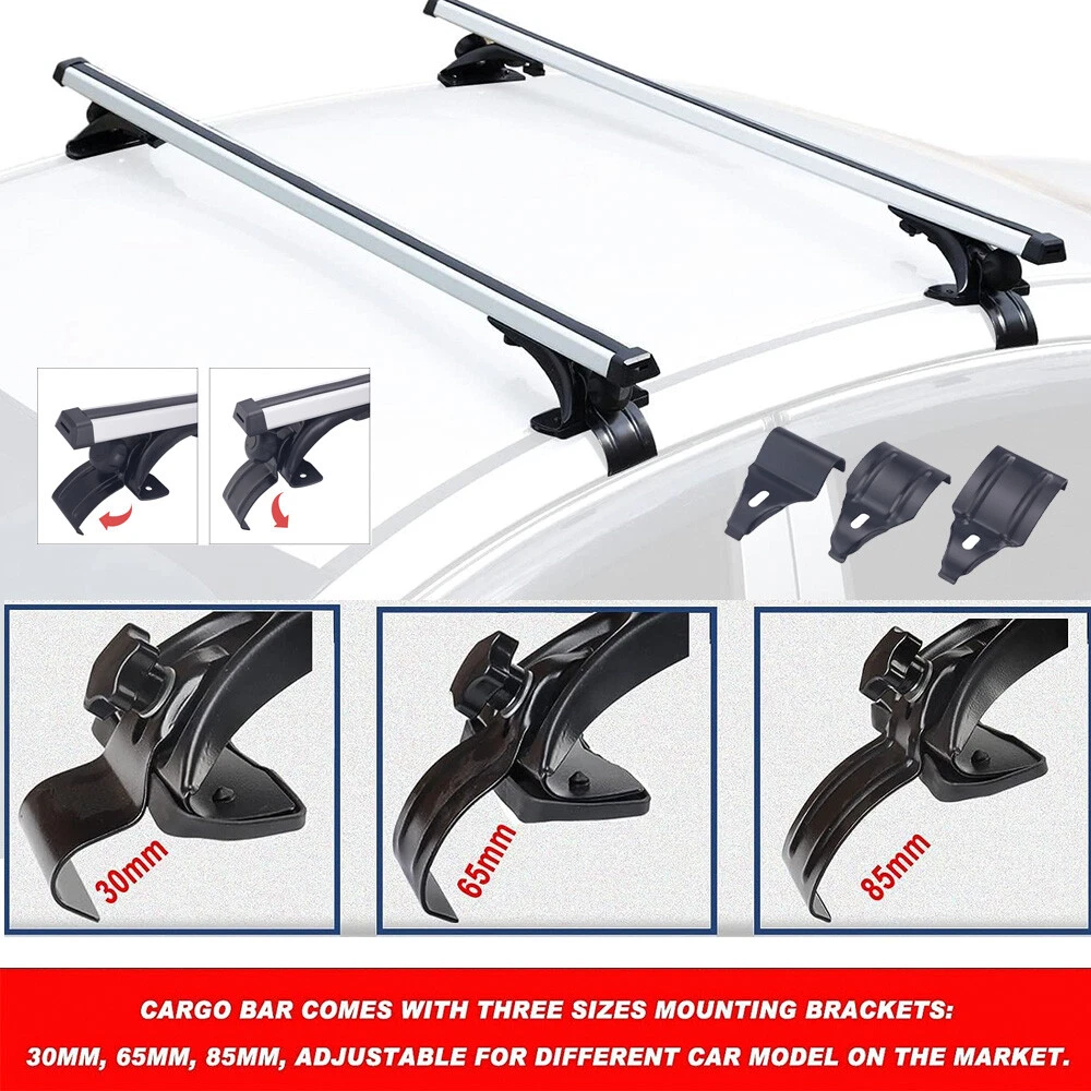 52" Universal Top Roof Rack Cross Bars For Car SUV w/Raised Rails Max.load 150LB 【FITMENT】-- Universal fit most vehicles without any type of side rails, apply to any vehicles with car roof width less than 1370mm(54") . The cross bars provide a perfect foundation for the installation of bike carriers, cargo boxes and other rooftop accessories. 【SAFETY】-- 3 Pair padded clips protect your vehicle from damage and scratches. Hook on car window frames,with skidproof rubber strap. 【HIGH QUALITY】-- Made of premium aluminum, light weight and durable. Load capacity 150lbs when load is evenly distributed. Provide plenty of space to your gear. 【EASY TO INSTALL】-- no drilling/cutting required, no side rails needed. Come with necessary installation tools, and easy to assemble and disassemble in a few minutes. Specific: Condition: New Color: Silver & Black Material: Aluminum Surface Finish: Smooth Aluminum Finish Rail: 53" In Length/ 135cm Weight Capacity: 150LB (68KG). Function: Perfect tool to hold the things when your are on holiday,Such as Cargo bags, Snowboards, Skis, Kayaks, Canoes, Bikes, luggages Package Included: a pair of cross bars, 4X mounting towers, 3 pair of mounting brackets Please check your car roof to make sure these cross bars fit your vehicle before you purchase. Warming Note: Apply to any Vehicles with Car Roof Length Less Than 137cm(54'') Professional installation is highly recommended if you don't know how to handle "Roof Top Rail Tower" is not required for this cross bars, please check above pictures for more details On Jan 16, 2025 at 05:43:26 PST, seller added the following information: