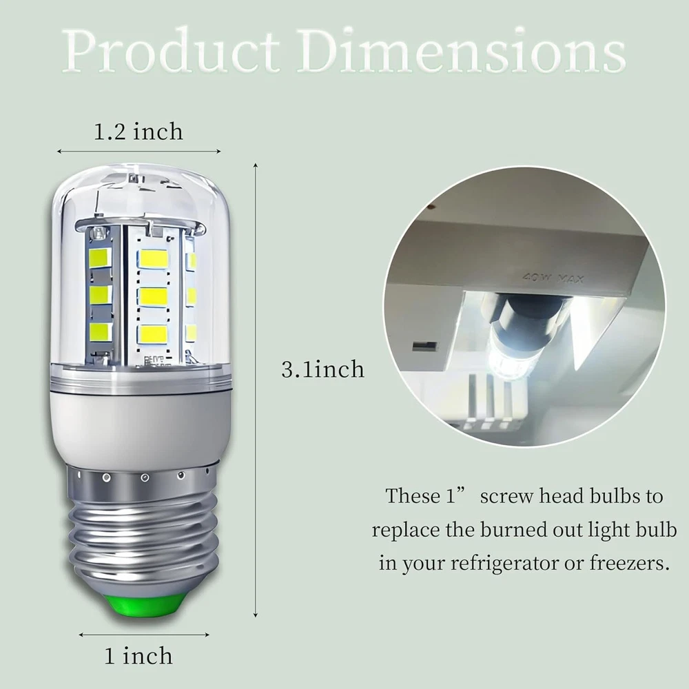 Product Details Brand: Fognor Light Type: LED Special Feature: 节能 Wattage: 3.5 watts Bulb Shape Size: T8 Replacement Iight Bulb Base type: E27 base.Mainly used for repairing refrigerator light bulb, frigidaire light bulb attaches inside the cabinet and illuminates the inside of the refrigerator or freezer. but also widely used in kitchens,cabinets,garages,basements, bedrooms and bathrooms Composed of high quality materials,ensure uniform light and effectively solve problems such as dim, flicker,not bright lights and short circuit.This part is compatible with models including: (not all) LFSS2612TF2, FFSS2315TS2, FFSS2615TE2, FFSS2615TS3, LFSS2612TF3, LFSS2612TF3, LFSS2612TP3, LFSS2612TP3, LFSS2612TE3, LFSS2612TE3, FFSS2615TP3, FFSS2615TP1, LFSS2612TE4, FFSS2625TS3, FFSS2615TE4, FFSS2615TE3, FFSS2315TP1, FFSS2315TP3, LFSS2612TF4, FFSS2615TP4, FFSS2615TS5, FFSS2615TD3, FFSS2615TD4, FFSS2315TE3, LFSS2312TF4, LFSS2312TP4, LFSS2312TP1, LFSS2312TD4, LFSS2312TE4, LFSS2312TE1, CRSE233TB0, CRSE233TS0, CRSE233TW0, CRSE263TB0, CRSE263TD0, CRSE263TS0, CRSE263TW0 etc