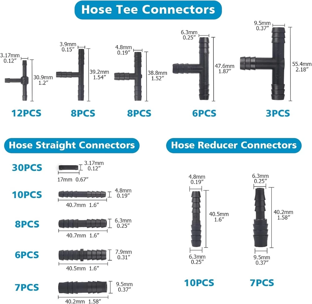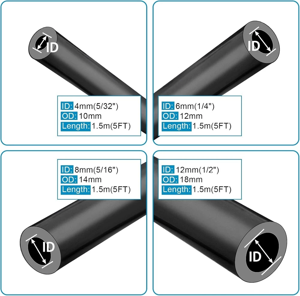 5/32 1/4 5/16 1/2 Automotive Silicone Vacuum Tubing Hose line Kit 5FT with 115PC Material: Nylon, Silicone, Rubber Color: Black Product Dimensions: 11"L x 6.7"W Nominal Wall Thickness 3 millimeters Item Length: 11 Inches MULTI SIZE: Automotive Silicone Vacuum Tubing Hose line Kit ID 5/32" 1/4" 5/16" 1/2". Vacuum connectors included 3 types and 12 sizes, 5 straight size, 5 tee size, 2 reducer size Come with 7 SIZE Caps: Rubber assortment kit including 63 PCS 7 sizes 3/16'' 5/16" 7/32" 1/4" 5/32'' 3/8'' 1/8“ WIDELY USEFUL: It applies to general purpose air or water transportation in the engine bay, Great for automotive, marine and industrial use, custom turbo or intercooler piping fabrication, DIY intake or radiator cooling system Silicone Vacuum Tube: The new upgraded vacuum hose has a wall thickiness of 3mm. As a great replacement for the original black vacuum hose Return Policy: We offer a 30 day return policy from the receiving date. Please contact us for a Free Return Label. Please use our return label so it will go back to our supplier and we can do a refund or replacement afterwards. Feedback: Your satisfaction is very important to us! If you have any problem with your order, please contact us and we will do our very best to make you satisfied. As long as you are happy with your purchase, please leave a positive feedback for us. We will always leave you a positive feedback in return. If you have any problem with your purchase, please do not leave a negative feedback. Please Contact us ... and your issue will be solved quickly and positively We are a small family-owned business trying to make a living, not a huge company that does not care ... We will ALWAYS do our best for you!