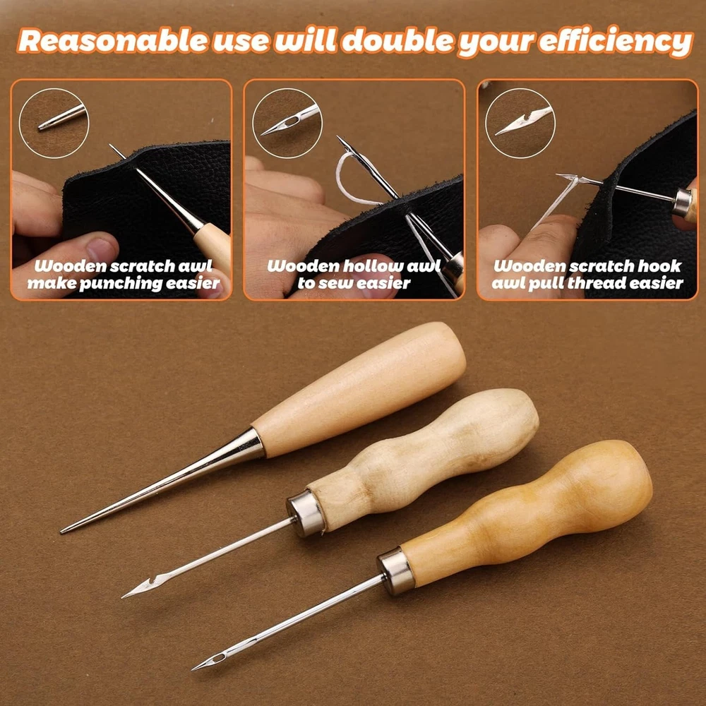 54 Pcs Leather Sewing Kit Heavy Duty Sewing Upholstery Repair Kit for Car Boots Product Description: Material upholstery repair kit Brand Branded Included Components needle threaders, thimble, seam rippers, tape measure, upholstery needles for hand sewing Upholstery Repair Kit Includes: The leather stitching kit contains 34pcs upholstery needles for hand sewing, needle threaders, seam rippers, tape measure, thimble, 8 pcs commonly used upholstery thread, leather stitching awl, scissors, fingercots, sewing kit storage bag and etc. Compact leather sewing tools come in a full range of sizes to meet your basic leather sewing needs. Leather Needles for Hand Sewing-- A wonderful upholstery leather sewing kit with the necessities you'll need for starting repairs of leather. High-quality leather needles for hand stitching, curved needles, thread, scissors, a thimble, etc. If you'd rather make repair yourself to replace items with minor damage, this is the heavy-duty sewing kit for you. Plus you will get a satisfying feeling of satisfaction when it's done! Heavy Duty Leather Sewing Kit- -Great leather sewing repair kit for DIY leather sewing projects. This is a great leather needle and thread kit for beginners or those with basic needs. It has a curved needle which is very helpful as well as metal thimbles which are essential when working with leather. If you use the sewing repair kit through super thick denim and fleece fabric and it will work great too! Upholstery Needle and Thread-- Used for repairing leather truck seats, the leather sofa, couches, canvas, shoes, leather gloves, and stitching up a backpack shoulder strap that was coming undone, worked perfectly to add more life to a very good gloves backpack! Leather Stitching Kit-- This little heavy-duty leather sewing kit is great and will meet your needs nicely. if you repair the leather recliner arm where the seam had come apart, many colors of thread in the kit are a perfect match. Suitable for car leather seat repair, leather sheaths and holsters, leather purses,s and leather handles of bags.Can also be used for leather jewelry making.