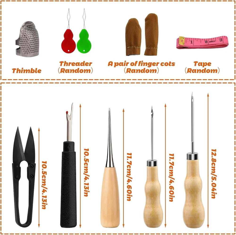 Tikjiua 54Pcs Upholstery Repair Sewing Kit, 8Pcs Waxed Thread, Leather Sewing Needles, Stitching Awl, Thimble, Heavy Duty Upholstery Repair Kit for Carseat Backpack Carpet Boots Shoes Canvas Sofa Product Description: Upholstery Repair Kit Includes: The leather stitching kit contains 34pcs upholstery needles for hand sewing, needle threaders, seam rippers, tape measure, thimble, 8 pcs commonly used upholstery thread, leather stitching awl, scissors, fingercots, sewing kit storage bag and etc. Compact leather sewing tools come in a full range of sizes to meet your basic leather sewing needs. Leather Needles for Hand Sewing--A wonderful upholstery leather sewing kit with the necessities you'll need for starting repairs of leather. High-quality leather needles for hand stitching, curved needles, thread, scissors, a thimble, etc. If you'd rather make repair yourself to replace items with minor damage, this is the heavy-duty sewing kit for you. Plus you will get a satisfying feeling of satisfaction when it's done! Heavy Duty Leather Sewing Kit--Great leather sewing repair kit for DIY leather sewing projects. This is a great leather needle and thread kit for beginners or those with basic needs. It has a curved needle which is very helpful as well as metal thimbles which are essential when working with leather. If you use the sewing repair kit through super thick denim and fleece fabric and it will work great too! Upholstery Needle and Thread--Used for repairing leather truck seats, the leather sofa, couches, canvas, shoes, leather gloves, and stitching up a backpack shoulder strap that was coming undone, worked perfectly to add more life to a very good gloves backpack! Leather Stitching Kit--This little heavy-duty leather sewing kit is great and will meet your needs nicely. if you repair the leather recliner arm where the seam had come apart, many colors of thread in the kit are a perfect match. Suitable for car leather seat repair, leather sheaths and holsters, leather purses,s and leather handles of bags.Can also be used for leather jewelry making. Tikjiua Heavy Duty Leather Sewing Kit A wonderful upholstery leather sewing kit with the necessities you'll need for starting repairs of leather. High-quality leather needles for hand stitching, curved needles, thread, scissors, a thimble, etc.This upholstery repair sewing kit comes in a full range of sizes to meet your basic leather making needs. About Tikjiua Our brand is committed to providing high-quality DIY crafting tools, such as needle felting tools, leather working tools, elastic threads, floral making tools, crochet yarn and hooks sets, etc. Tikjiua, DIY Crafts Tools Brand Shop Tikjiua - Upholstery Needle and Thread Durable and Easy to Use Compact leather needles and thread kit is used for repairing leather truck seats, the leather sofa, couches, canvas, shoes, leather gloves, and stitching up a backpack shoulder strap that was coming undone, worked perfectly to add more life to a very good gloves backpack! This is a great leather sewing kit for beginners or those with basic needs. It has a curved needle which is very helpful as well as metal thimbles which are essential when working with leather. Widely Used in Leather Sewing This heavy-duty leather sewing kit is great and will meet your needs nicely. if you repair the leather recliner arm where the seam had come apart, many colors of thread in the kit are a perfect match. Suitable for car leather seat repair, leather sheaths and holsters, leather purses,s and leather handles of bags.Can also be used for leather jewelry making. Great Leather Sewing Kit for Beginners This leather sewing kit is used for reparing leather truck seats, leather sofa, leather gloves and to stitch up a backpack shoulder strap that was coming undone,worked perfectly to add more life to a very good gloves backpack! It is ideal as a good kit for family and friends!