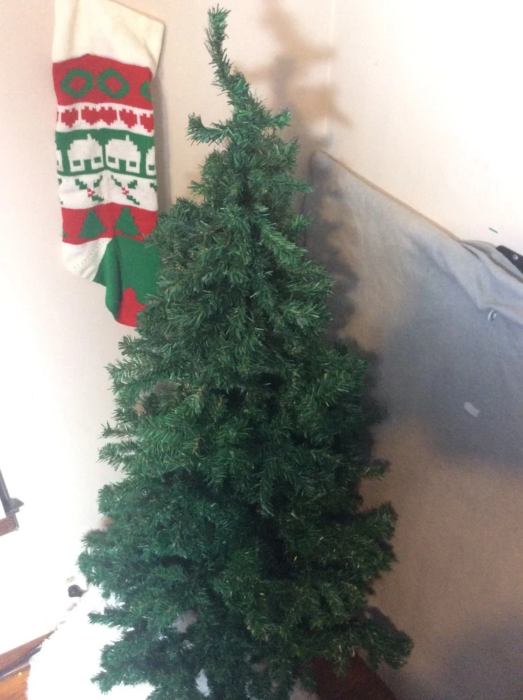 Up For Sale: 5.5' Traditional Artificial Green Pine Christmas Tree Metal Stand Xmas Size: 5 1/2-Foot-Tall Traditional Artificial Green This 5.5' Traditional Artificial Green Pine Christmas Tree is a festive decoration perfect for the holiday season. This artificial tree is 5.5 feet tall with a metal stand, making it sturdy and easy to display in any room. The Green color and pine material give it a realistic and traditional look, while the Christmas tree features add an extra touch of holiday cheer. Made in China, this Christmas tree is a beautiful addition to your home during the festive season. Excellent New Condition. See Pics For Details & Measurements. No Flaws!! I will ship this item out USPS Priority or USPS Ground Advantage with tracking number for confirmation. I ship items out daily so quick delivery can be expected. Please feel free to ask any questions or make an offer. Thanks!