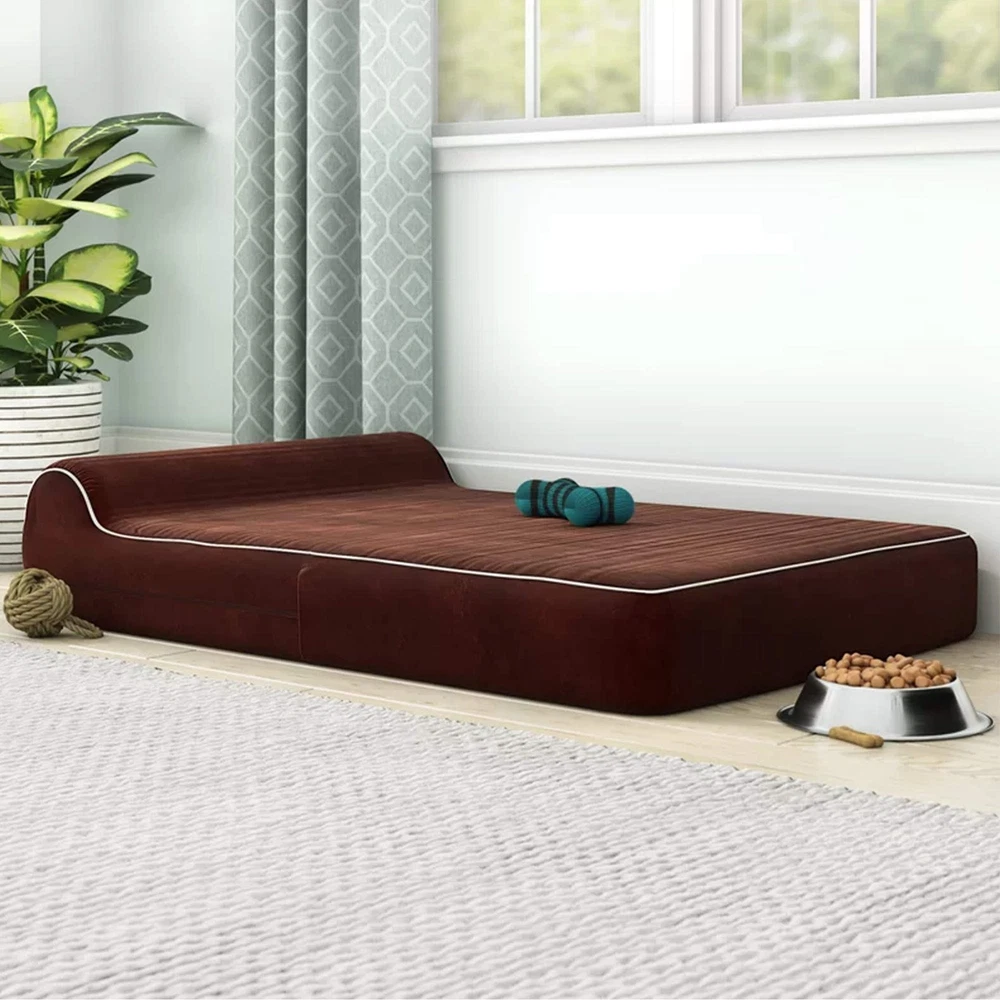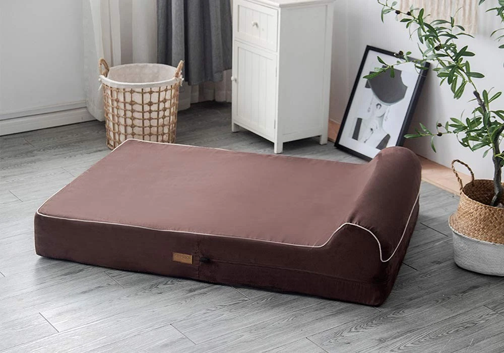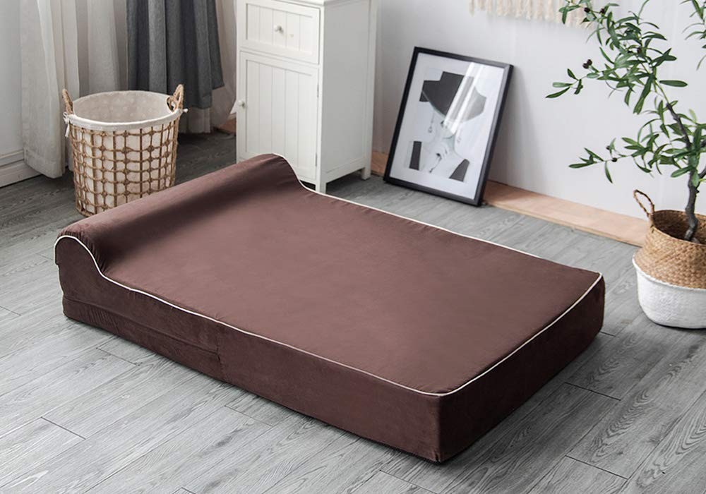 DIMENSIONS: 35-Inches x 28-Inches x 5.5-Inches thick Memory Foam and 2.5 Inch thick HeadRest. HYPO-ALLERGENIC PREMIUM MEMORY FOAM DOG COUCH BED - NOT EGG CRATE FOAM OR OTHER ORTHORPEDIC NON MEMORY FOAMS - Compare to Therapeutic Foam found in High End Mattress Stores SPECIAL LOVING: This Large Dog Bed is Great For Pets With Arthritis or Joint and Muscle Issues DOUBLE LAYER PROTECTION – INTERIOR COVER: WATERPROOF Fabric Zippered Cover / EXTERIOR COVER: Soft, Plush Suede with an Ant-Slip Bottom Zippered Cover, great washable dog bed YOUR SPOILED ONE SPENDS MORE THAN HALF ITS LIFE SLEEPING. A MEMORY FOAM BED WILL IMMEDIATELY BECOME THEIR FAVORITE SPOT AND PUPPY BED