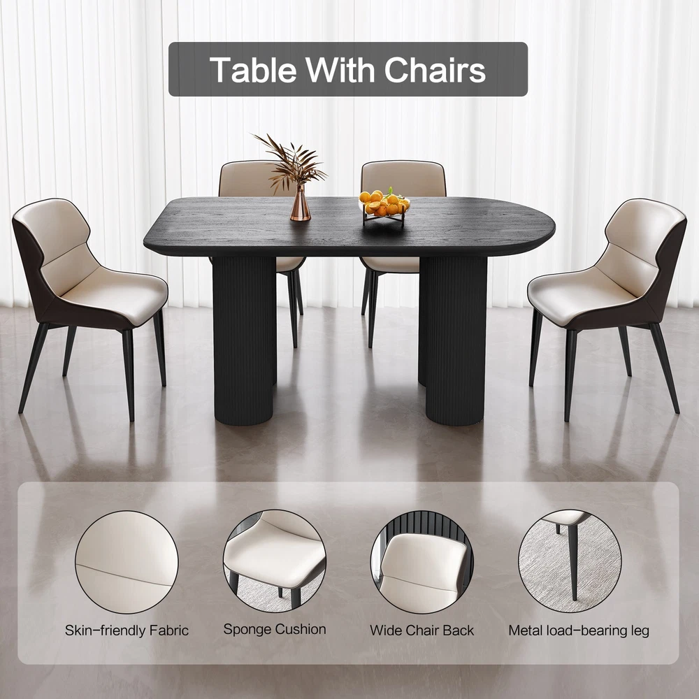 Features: Long Dinning Table : This kitchen table can seat 4-6 people comfortably to gather around and enjoy a relaxing and delicious mealtime. The spacious tabletop provides ample space for plating, serving, and enjoying delicious homemade dishes together, creating cherished memories around the table. Sturdy Construction : Built with thickened engineered MDF board and four legs, this rectangular dining table is constructed to withstand long service time, super durable, sturdy, stable, wear and scratch resistant. Easy to Clean and Assemble: The dining table has a smooth surface and simple design that can be easily wiped down with just a damp rag to keep it clean;The dining table are accompanied by user-friendly instructions.Easy to assemble in about 15 minutes. Package: 1 x dining table