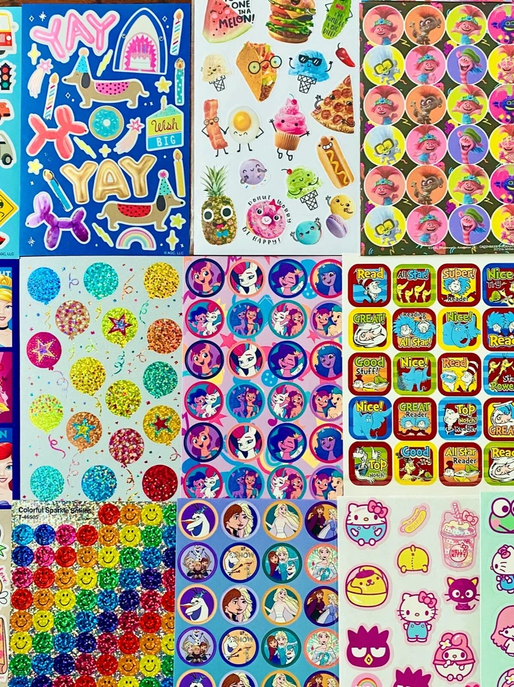 MEGA Mixed Sticker Lot | The Ultimate Sticker Collection | Qty. 555+ Stickers Fun Assortment of Glossy, Glitter, Puffy, Scrapbook, Cartoons, Bubble, 3D, Pop Up, Foil, Metallic Stickers For Everyone! I have included a large variety of pictures of the assortment available. The pictures give you an idea of what you will be receiving. Please Note: You will not receive everything pictured. Please contact me with any special requests. This HUGE Variety of fun designs stickers can be used in parties, classroom, school and home, good for reward for students, potty training, adding inside a birthday card, game activities, entertaining toddlers, etc. Perfect Gifts for Kids & all Occasions: Can be given as a gift for kids, girls, boys, toddlers, teens, students, friends, and classmates, they will love it! Each package of stickers is a different style & theme with some lovely embellishments like rhinestones, ribbons, buttons and other 3D details that make these quality stickers look so unique!