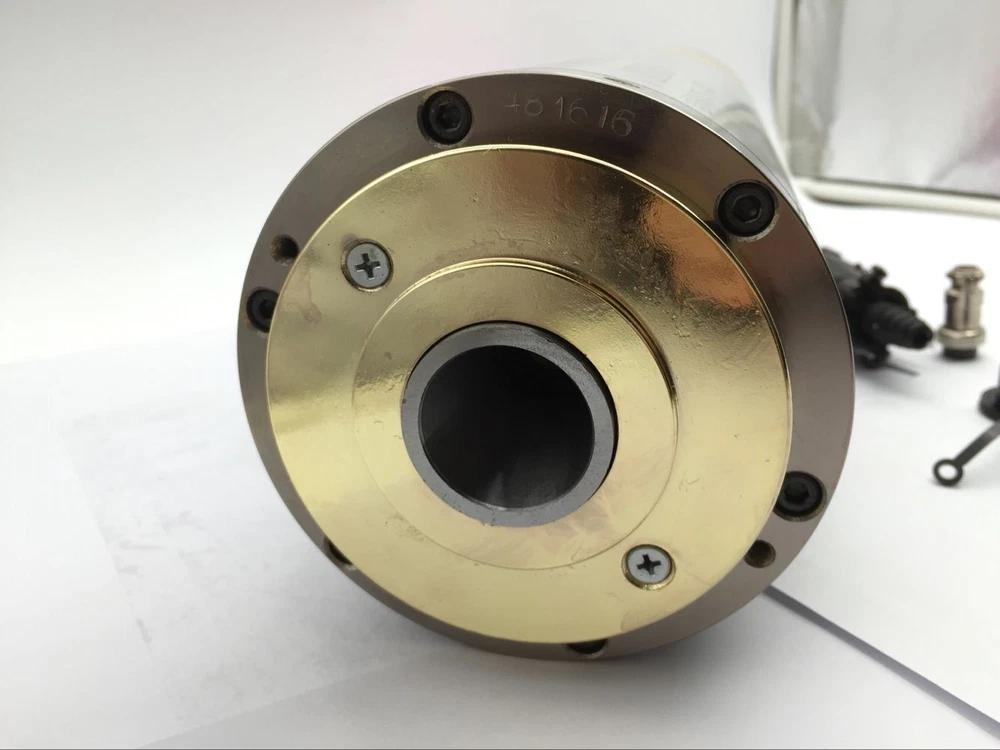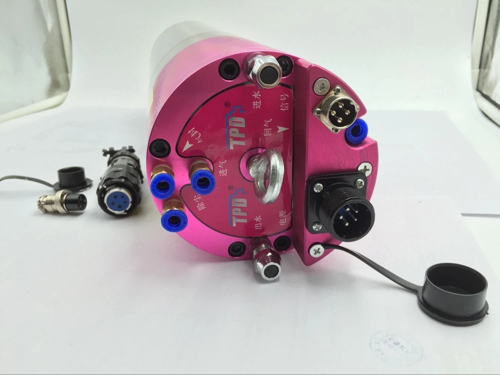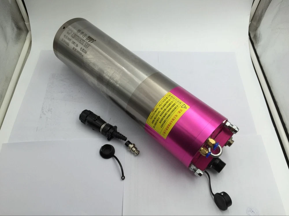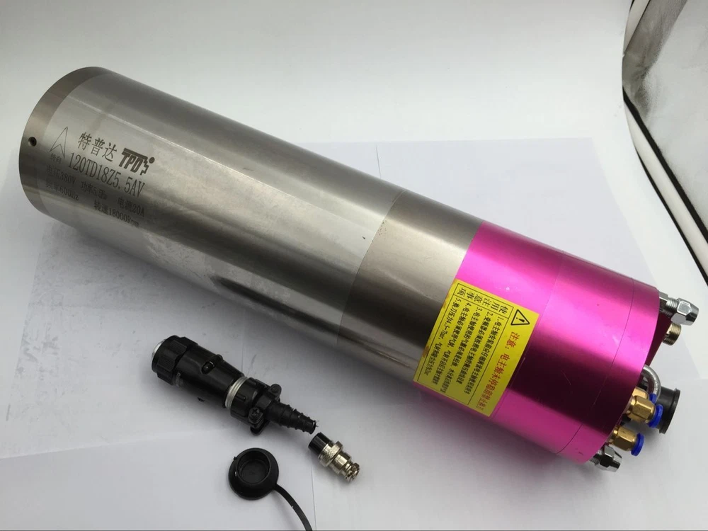 ITEMS DESCRIPTION 18000rpm 5.5KW 220V 20A 2.9Nm 600Hz BT30 Water-cooled ATC Spindle Motor for CNC Engraving New Specifications: Model No. 120TD18Z5.5A-220V Brand Changsheng(Made in China) Product type three-phase asynchronous Automatic Tool Change (ATC) Spindle motor Power 5.5KW Frequency 600Hz Voltage 220V Speed 18000r/min Current&N.M 18A 2.9N.M Certification ISO9001-2000 Pole number 4 Cooling Water-cooled Lubricate grease Joint of nose BT30(if needed, please let us know) Repair time bearing(half year),spindle(one year) Weight 26KG Kindly note: Motorized spindle motors are matched with inverters, choosing inverters should be according to the current, voltage, and frequency of motorized spindle motors. Setting the inverter must firstly set up the basal frequency, its basal frequency is based on the highest frequency of motorized spindle motor, if not setting the basal frequency (the factory setting is 50Hz),the motorized spindle motor would burn out once start running; The highest frequency, break frequency and the corresponding voltage also should be set according to the curve on the operating instruction; setting the current of the inverters is also based on the rated current of motorized spindle motor; The overcurrent is 120% of rated current; overload tripping is 100%, time is 5s; Carrier frequency is set by the power of spindle motor,8kHz for less than 10KW motorized spindle motor, 5kHz is for more than 10KW spindle motor; The acceleration time and deceleration time are 10s and 20s respectively, if starting current exceed the rated current and need protection, it should extend the acceleration time. I/O lack-phase protection also should be set above the function of protecting inverters and motorized spindle motors. Connecting the inverter and the three-phase power of spindle motor, solder the inverter three-phase power cord on the plug 1(U1),2(V1),3(W1), plug 4 is ground wire. Then the inverter is connected with the external power supply and start work, then to check whether the rotation direction of spindle motor is consistent with its indication direction, if inconsistent, immediately shut down and change two wire on the three-phase power supply of connecting inverter and motorized spindle motor. The motorized spindle motor is prohibited running in the wrong rotation direction. Power lines should be taken waterproof and shielding measures. The connection between motorized spindle motor and inverter should not exceed 25m.When the power cord of the water-cooled spindle motor connects the terminal block, it must be bent into U shape and fixed on the bottom of the terminal block and then connect, so that can protect the condensed water of the power cord into the terminal block. Another, use shielding power lines to prevent its interference to inverter.