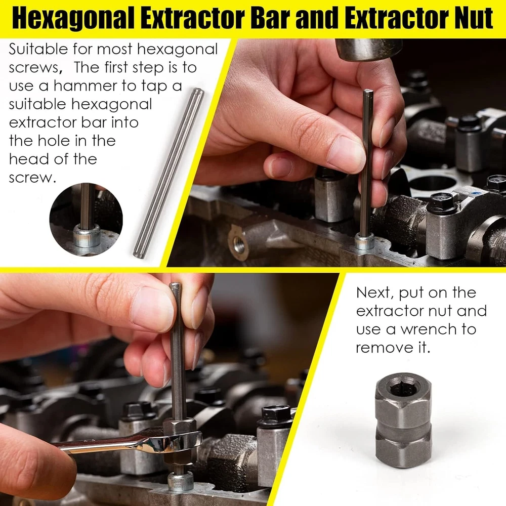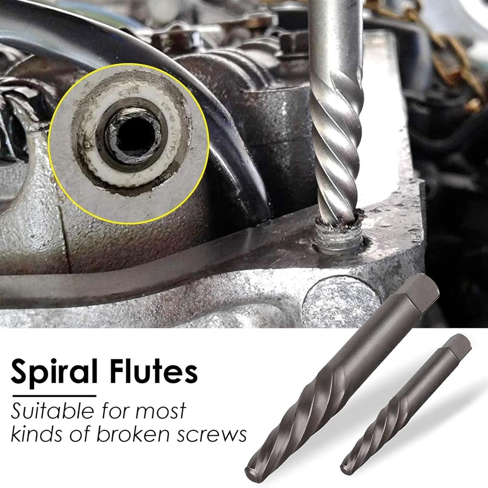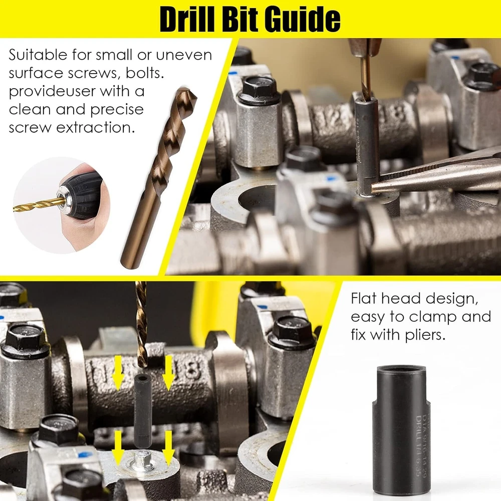 55-Piece Screw Extractor & Broken Bolt Extractors, Multi-spline Extractors, and Drill Bits for Removing Damaged, Frozen, Rusted, Rounded-Off Bolts & Screws 【PREMIUM INDUSTRIAL GRADE MATERIAL】 - Made of heat-treated high-quality CR-MO steel (chromium-molybdenum steel),is the ideal tool for removing broken screws, bolts, studs, fittings, threaded pipes and pins. 【55-PIECE MULTIFUNCTIONAL SCREW & BOLT EXTRACTOR SET】- It contains 16 high speed steel drill bits, 13 multi spline extractors, 10 drill bit guide bits, 6 spiral screw extractors , 5 extractor pins, 5 nut extractors. Multiple specifications and sizes to meet your various work needs. 【WIDE RANGE OF APPLICATIONS】Our screw and bolt extractor kit makes fastener extraction a breeze. the Drill Bit Guide complemented by the HSS drill bit provides the user with a clean and precise screw extraction. Damaged screws and bolts will be easily extracted. 【EXACT SIZE】:16 high speed steel drill bits Size:(5/64",7/64",1/8",5/32",3/16",7/32",1/4",19/64",9/32",5/16",11/32",3/8",13/32",7/16",15/32", 1/2"), 13 multi spline extractors Size:(1/8",5/32",3/16",7/32",1/4",9/32",5/16",11/32",3/8",13/32",7/16",15/32", 1/2"), 10 drill bit guide bits:(G1 to G10), 6 spiral screw extractors: ( to , 5 extractor pins:(#1 to #5), 5 nut extractors:(#1 to #5). 【PREMIUM SERVICE】 - If you have any problems with our products. Contact our professional after-sales service team through , the after-sales team will contact you and solve your problem in time. -Easy Out Tool Leader Welcome to Direct! Looking forward to being chosen by you!