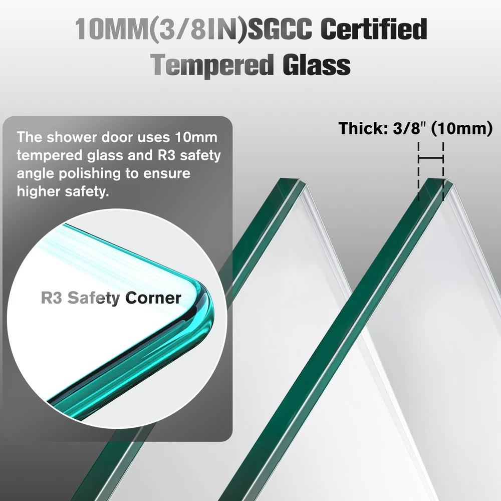 △Please be noted that this product comes in an extra large package,can only be transited and delivered by truck delivery,which requires accurate recipient phone number to well deliver. This large package takes longer to arrive. Product Information Item Code S00011 Product Type Combo Item Product Name 56-60 inches W *76 inches H Frameless Double Sliding Soft-Close Shower Door in Chrome, 3/8 inches (10mm) Thick SGCC Tempered Glass Door Place of Origin China Main Color Chrome Main Material Glass+Metal Product Dimensions Assembled Length (in.) 60.00 Assembled Width (in.) 76.00 Assembled Height (in.) 0.38 Weight (lbs) 187.00 Package Size Sub-item 1: P174988 Package Quantity: 1 63.58 * 9.45 * 3.54 in. 24.09lbs Sub-item 2: P143500 Package Quantity: 2 79.53 * 35.43 * 2.17 in. 93.28lbs Product Features · DOUBLE BYPASS SLIDING: This frameless shower door can be adjusted from 56 to 60 in width by cutting, maximize your bathroom layout of our double sliding door system, designed for easy access while using minimal space for smooth, unobstructed movement. The door body is light and flexible, with a long mechanical life, and provides smooth opening and closing. · SAFE & STYLISH BATHROOM PARTITION: This product is made of high quality 3/8"(10mm) SGCC certified tempered glass for impact resistance and high tensile strength. Tempered glass surfaces are smooth and easy to clean and maintain, keeping your bathroom clean and tidy at all times. · EXCELLENT WATERPROOF and DENOISE PERFORMANCE: This shower door is designed with a focus on water and denoise resistance. Its premium materials and advanced construction ensure a watertight seal and denoise function, preventing any water from escaping your shower and onto your bathroom floor, reducing sliding noise and providing you with a comfortable bath experience. · CLASSIC AND HIGH-QUALITY MATERIALS: The tub shower door's main structure is made of lightweight and durable aluminum alloy with stunning and sophisticated chrome finish, which offers excellent corrosion and oxidation resistance, ensuring the stability and durability of the shower door without deformation over time. · EASY INSTALLATION: The complete packaging of the tub door includes all necessary components, ensuring a smooth and unobstructed installation process. And the packaging comes with an easy to understand installation guide that covers component preparation and step-by-step installation. How to Measure Your Shower Space ? Measuring the size of your enclosure is the first step toward a perfectly fitted installation. The following guidelines can help you achieve a precise measurement: 1. Ensure that finished wall material is in place before measuring. 2. Take lengthwise measurements at the bottom, center, and top of your enclosure. 3. Check all surfaces and walls for level. If any surface is out of level by 3/8 inches or more, a tapered filler is recommended. 4. Measure your available height (from shower curb to ceiling) and requested height (from shower curb to the desired height of your door) ------------------------------------------------------- Do Read before You Buy : Refund& Return -Returns are accepted within 30 days.Any problems, please feel free to contact us by ebay message first, let's figure problems out together,your email will be replied within 1 business day. -We provide free Return service, but return shipping cost will be on you in below circumstances : 1. C hanged your mind or do not need /want the item or other personal reasons. 2.Items may slightly differ from photo s in terms of color and lighting differences & on different monitor’s display. 3. Manual measurement has been used, there may be some reasonable error range. 4. Choos ing the wrong size , type or color cause s unfit ting problem . Or didn't read specifications and descriptions, causes real item is different with own imagination or expectation. 5. Buyer did not know how to install or Use the item 6.Find a better price elsewhere . -Returns for free / free Replacement / free parts only happens in condition of product issue/ arriving broken /wrong item or missing parts. -For the quality issue , defective photo s must be attach ed in mails / when Return. Shippment Warning : if we shiped out the item and buyer wants to cancel the order or change address,buyer need to pay possible shipping cost . Please cancel the order or Change address before we ship out. After sals Service -we are responsible for accessories missed ( please contact us first ,and attach photo of what you've received ) -we are responsible for all losses caused by product quality issues ( Resend or Refund, please also attach defective photo s) Feedback We do appreciate hav ing such opportunity to solve the problem before leaving feedback s . Cause negative feedback solve s NO problem, but we DO ! Hope you have a good time shopping in our store! We are honored !