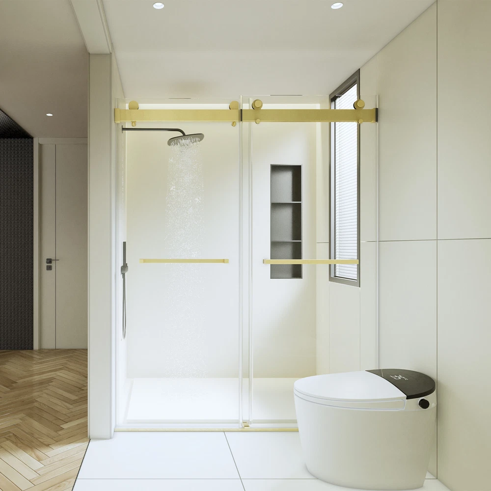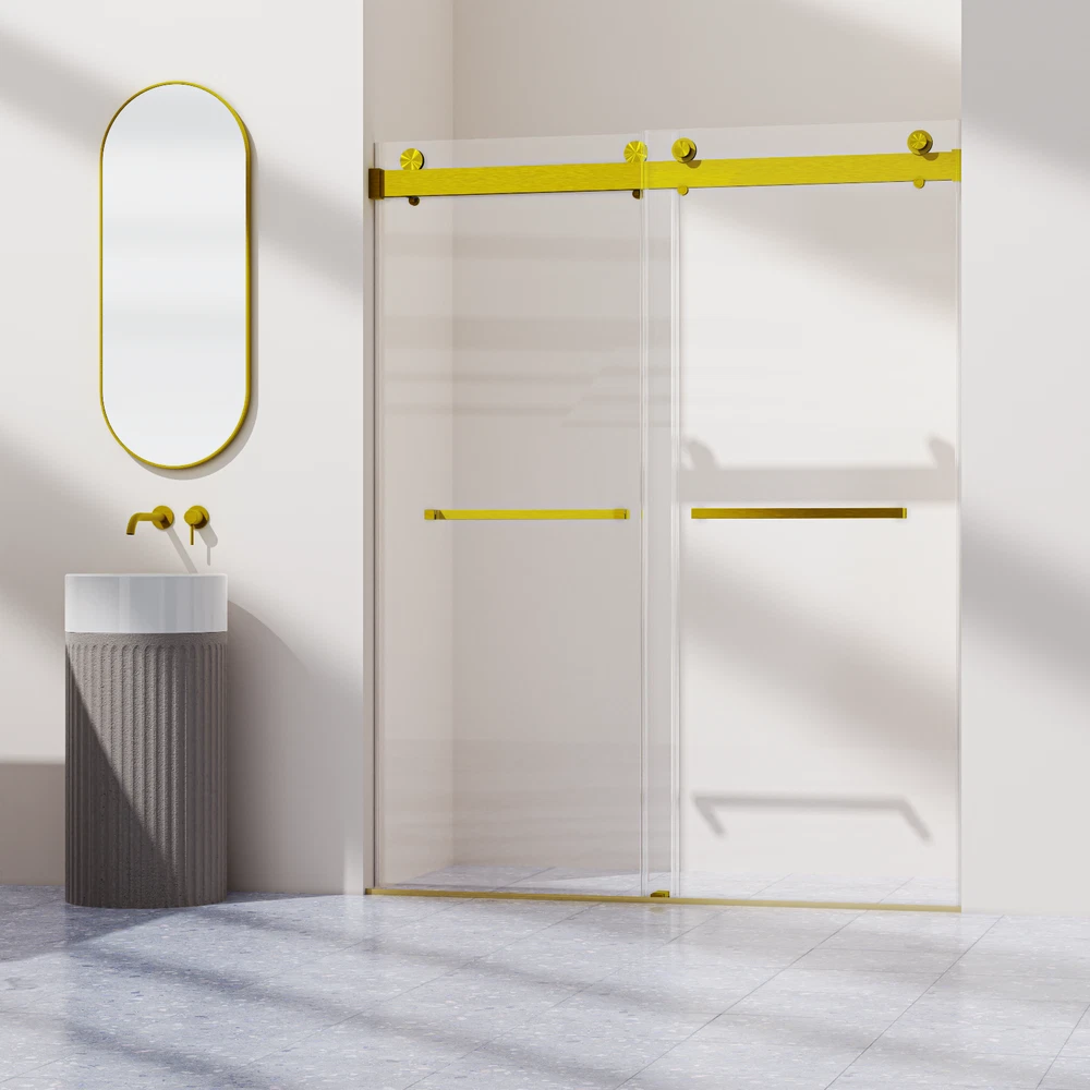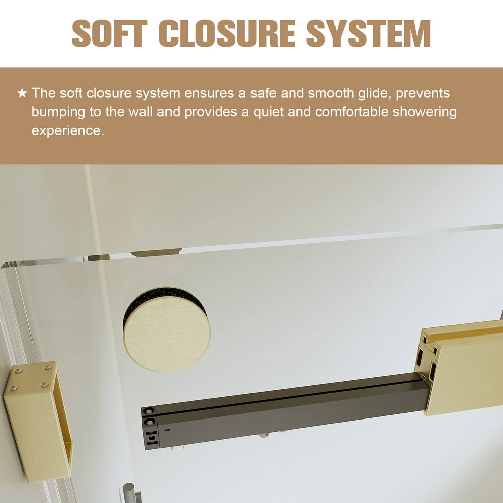 △Please be noted that this product comes in an extra large package,can only be transited and delivered by truck delivery,which requires accurate recipient phone number to well deliver. This large package takes longer to arrive. 56-60"W x 76"H Sliding Frameless Shower Door in Brushed Gold 3/8'' Clear Glass Product Information Product Name: 56-60 inches W *76 inches H Frameless Double Sliding Soft-Close Shower Door Main Color: Brushed Gold Main Material: Glass+Metal Item Code: W1552S00002 Product Type: Combo Item Package Size Sub-item 1: W1552P143507 Package Quantity : 163.58 * 9.45 * 3.54 in. 24.09 lbs. Sub-item 2: W1552P143500 Package Quantity : 279.53 * 35.43 * 2.17 in. 93.28 lbs. Product Dimensions Item Length: 60 in Net Weight: 187 lbs Item Height: 76 in Specifications: Glass: 3/8 inches (10mm) Thick SGCC Tempered Glass Handle Material: 304 Stainless Steel Side & Bottom Tracks Material: Aluminium Installation Size: Min 56'' to Max 60'' Width x 76'' Height Door Opening Size: 24-1/4 to 28-1/4 inch Features: √ SAFE & STYLISH BATHROOM PARTITION: This product is made of high quality 3/8"(10mm) SGCC certified tempered glass for impact resistance and high tensile strength. The surface is covered with explosion-proof film, increase the strength of the glass, avoid the splinters splashing hurt. Tempered glass surfaces are smooth and easy to clean and maintain, keeping your bathroom clean and tidy at all times. √ DOUBLE BYPASS SLIIDNG: This semi-frameless shower door can be adjusted to 56 and 60 in width by cutting, maximize your bathroom layout of our double sliding door system, designed for easy access while using minimal space for smooth, unobstructed movement. √ EXCELLENT WATERPROOF PERFORMANCE: This shower door is designed with a focus on water resistance. Its premium materials and advanced construction ensure a watertight seal, preventing any water from escaping your shower and onto your bathroom floor. √ EASY INSTALLATION: The complete packaging of the shower door includes all necessary components, ensuring a smooth and unobstructed installation process. And the packaging comes with an easy to understand installation guide that covers component preparation and step-by-step installation. √ CLASSIC AND HIGH-QUALITY MATERIALS: The shower door's main structure is made of lightweight and durable aluminum alloy with stunning and sophisticated brushed gold finish, which offers excellent corrosion and oxidation resistance, ensuring the stability and durability of the shower door without deformation over time. √ SOFT CLOSE DESIGN: Unlike traditional shower doors, this shower door utilizes a soft closure system. Tested over 100,000 times, the soft close system ensures a safe and smooth glide, prevents collision with the wall and provides a quiet and comfortable showering experience. Do Read before You Buy : Refund& Return -Returns are accepted within 30 days.Any problems, please feel free to contact us by ebay message first, let's figure problems out together,your email will be replied within 1 business day. -We provide free Return service, but return shipping cost will be on you in below circumstances : 1. Changed your mind or do not need/want the item or other personal reasons. 2.Items may slightly differ from photos in terms of color and lighting differences & on different monitor’s display. 3. Manual measurement has been used, there may be some reasonable error range. 4. Choosing the wrong size , type or color causes unfitting problem. Or didn't read specifications and descriptions, causes real item is different with own imagination or expectation. 5. Buyer did not know how to install or Use the item 6.Find a better price elsewhere. -Returns for free / free Replacement / free parts only happens in condition of product issue/ arriving broken/wrong item or missing parts. -For the quality issue ,defective photos must be attached in mails / when Return. Shippment Warning : if we shiped out the item and buyer wants to cancel the order or change address,buyer need to pay possible shipping cost. Please cancel the order or Change address before we ship out. After sals Service -we are responsible for accessories missed ( please contact us first,and attach photo of what you've received) -we are responsible for all losses caused by product quality issues ( Resend or Refund, please also attach defective photos) Feedback We do appreciate having such opportunity to solve the problem before leaving feedbacks. Cause negative feedback solves NO problem, but we DO ! Hope you have a good time shopping in our store! We are honored !