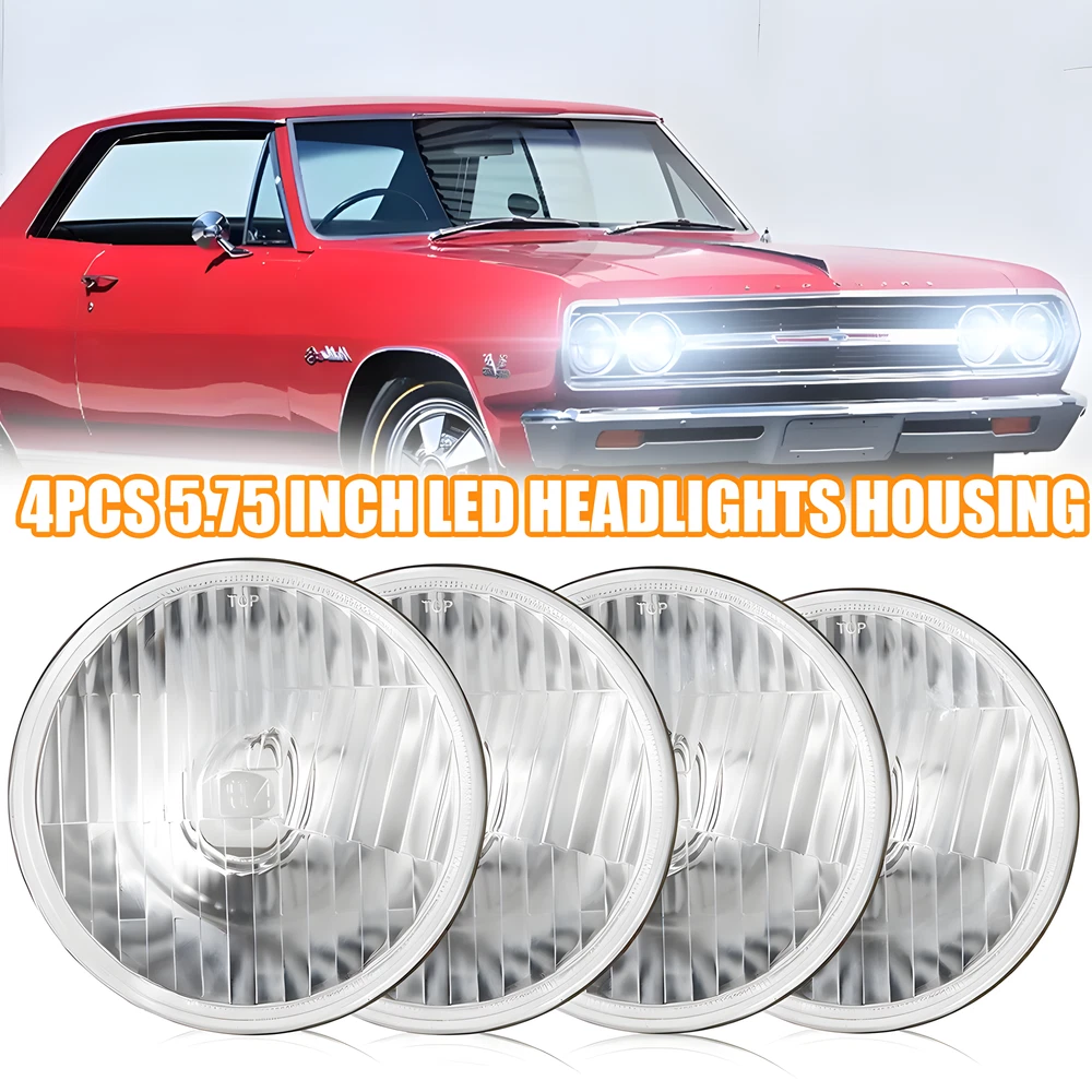 Bulbs Included: No Brand: Unbranded Universal Fitment: Yes UPC: Does not apply Wattage: 50 W Placement on Vehicle: Front, Left, Right Bulb Shape Code: H4 Set: 2 Pairs Superseded Part Number: lyy0176 gtin13: Does not apply OE/OEM Part Number: Round 5.75" Headlight Assembly Type: Semi Sealed Interchange Part Number: lyy0176 Country/Region of Manufacture: United States Lumens: 6000 lm Features: Semi Sealed housing Performance Part: Yes Manufacturer Part Number: lyy0176 Fitment Type: Direct Replacement Total: 4 Pieces Voltage: DC 9-32V Shape: Round Items Included: Headlight Housing Only. Manufacturer Warranty: 5 Years Lighting Technology: LED Size: 5-3/4" 5.75" inch Lens Color: Clear Vintage Part: Yes Housing Color: Chrome (Crystal) Color Temperature: 6000K Headlight Style: Glass