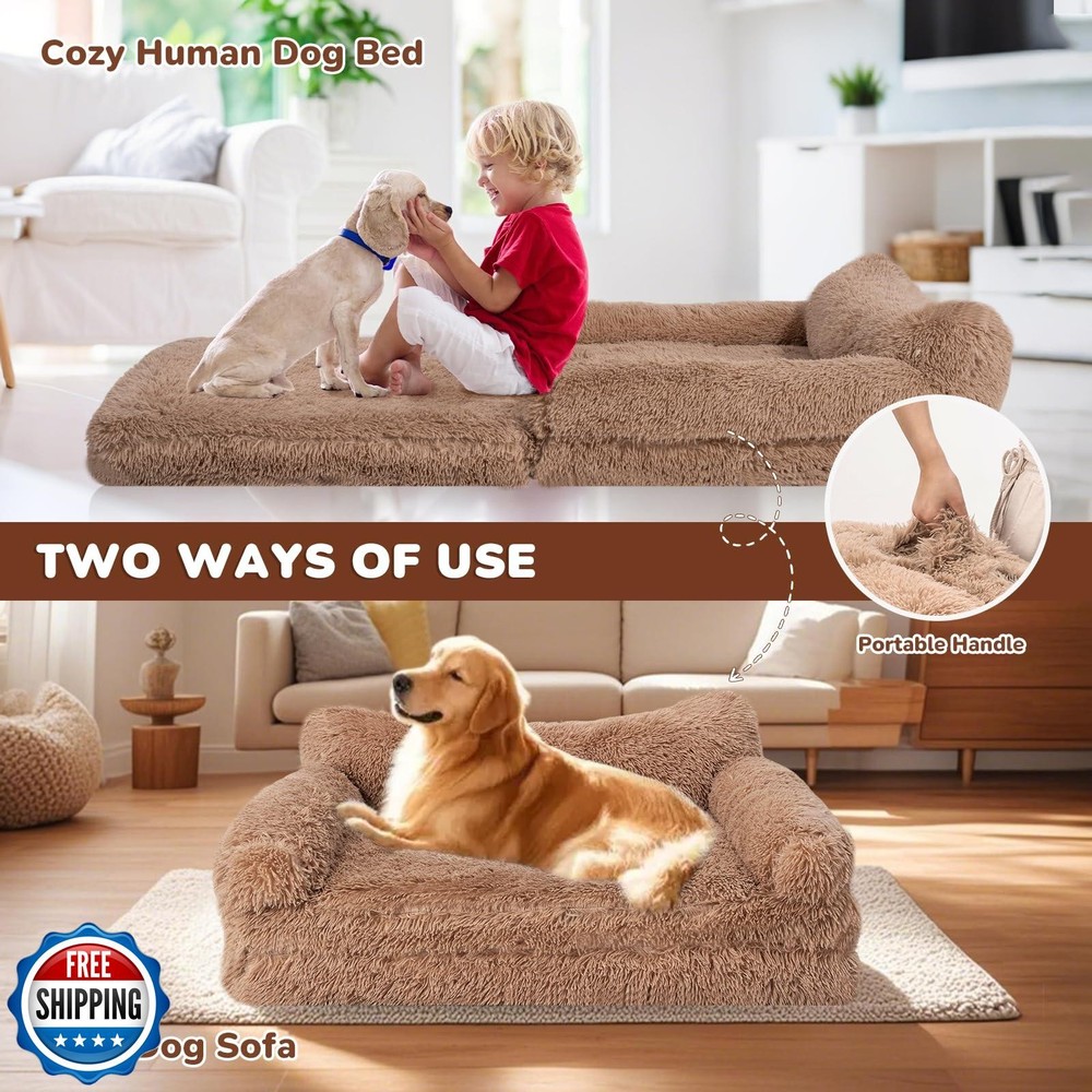 OtterOasis 57" Foldable Human Dog Bed for Kids, Fluffy Faux Fur, Orthopedic Washable Dog Bed with Memory Foam and Water Repellent Liner Thick for Pet Installation Free Features ๐๐ง๐ฌ๐ญ๐๐ฅ๐ฅ๐๐ญ๐ข๐จ๐ง ๐๐ซ๐๐: Our comfort human dog bed arrives in a vacuum packed state, ensuring zero fuss assembly. Simply unbox it and allow it to expand within 24 - 48 hours. Free from any installation headaches. Prepare to be embraced by a world of immediate, cloud - like comfort where you and your dog can snuggle to your heart's content. ๐๐ฅ๐ฅ๐๐ฏ๐ข๐๐ญ๐ ๐๐จ๐ฎ๐ซ ๐๐จ๐ '๐ฌ ๐๐จ๐ข๐ง๐ญ ๐๐ข๐ฌ๐๐จ๐ฆ๐๐จ๐ซ๐ญ: Our orthopedic dog bed's interior, featuring memory foam in a unique egg crate design, is a revolutionary solution. This innovative design gently conforms to your dog's body, evenly distributing their weight and significantly reducing joint pressure. It provides a haven of unrivaled comfort, allowing your furry friend to rest easy and enjoy a pain free, rejuvenating sleep. Give your beloved companion the rest they truly deserve and enhance their quality of life. ๐๐ญ๐ซ๐๐ฌ๐ฌ ๐ ๐ซ๐๐ ๐๐ฅ๐๐๐ง๐ฎ๐ฉ ๐๐ง๐ ๐๐๐ญ๐๐ซ ๐๐๐ฉ๐๐ฅ๐ฅ๐๐ง๐ญ: Pet messes are no match for our humman dog bed! The machine washable cover simplifies cleaning to an absolute breeze. The outer non woven fabric on the sponge doesn't merely repel water; it's a formidable shield against any spills and accidents. Rest easy knowing that the interior will always remain immaculate and dry, allowing you to focus solely on the comfort and joy your bed provides. ๐๐ฅ๐ฎ๐ฌ๐ก ๐๐๐๐ฏ๐๐ง ๐ฐ๐ข๐ญ๐ก ๐๐๐๐๐ ๐๐ซ๐๐๐ญ: Our fluffy human dog bed for adult is meticulously crafted from the finest, top tier plush, offering a sensation so thick and soft, it's as if you're floating on a cloud. And here's an extra touch of delight a doublesided plush blanket (excluding the kids' version). Curl up together on those chilly nights, creating memories that will be cherished for a lifetime, all while cocooned in unparalleled comfort. ๐๐๐๐๐ฅ ๐ ๐ข๐ญ ๐๐จ๐ซ ๐๐ฏ๐๐ซ๐ฒ ๐ ๐๐ฆ๐ข๐ฅ๐ฒ ๐๐๐ญ๐ฎ๐ฉ: Whether it's a child enjoying a magical sleepover with their loyal pup, a solo adult seeking peaceful slumber beside a large, affectionate dog, or a family gathering for a cozy cuddle with two furry friends, we've got the perfect size for you. The 57 inch kids' version dog bed, 72 inch adult version dog bed, and 79 inch family version dog bed guarantee an ideal fit. Plus, when not in use, it seamlessly transforms into a compact, stylish sofa, adapting to your ever changing lifestyle. Shipping Free & Fast Shipping: We offer free shipping to most of the USA with a normal delivery time of 3-7 days. However, due to the current situation, additional delivery time (up to 3 weeks) may be required for some items. Alternative Carriers: We may use alternative carriers (e.g., USPS, FedEx, UPS) to ensure your package arrives safely and on time. Due to the use of multiple carriers, we are unable to provide a tracking number automatically. Handling Time: Orders are processed and shipped within 1-2 business days of receiving cleared payment. Shipping Restrictions: Shipping to Alaska, Hawaii, Puerto Rico, Guam, and other US territories may incur shipping charges or delivery restrictions. Please contact us before ordering, or your order can be refunded/cancelled. State Restrictions: Certain items may not be shipped to California due to state regulations. Contact for Tracking Updates: If you require tracking updates or have any concerns about the delivery of your order, please feel free to contact us, and we will be happy to assist you. Return Policy 30-Day Hassle-Free Returns: If you are not completely satisfied with your purchase, you can return the item for free within 30 days of receiving it for a full refund or exchange. Easy Return Process: Contact us, and we will provide you with a prepaid return shipping label and detailed instructions. No Restocking Fee: There are no restocking fees for returns. However, the buyer is responsible for return shipping costs if the return is not due to a seller"s error. Refund Processing: Refunds will be processed within 1 business day of receiving the returned item in its original condition. Feedback Your feedback is extremely important to us. We strive to provide the best products and customer service possible. If you are satisfied with your purchase, please take a moment to leave us a positive review. If you have any concerns or issues with your order, please contact us before leaving negative feedback. We are committed to resolving any problems and ensuring your satisfaction. Contact Us If you have any questions or concerns, please feel free to reach out to our customer support team. You can contact us through the eBay messaging system. We are available Monday to Friday, 9:00 am to 5:00 pm EST, and we will do our best to respond to your inquiry within 24 hours. Thank you for supporting our small family business!