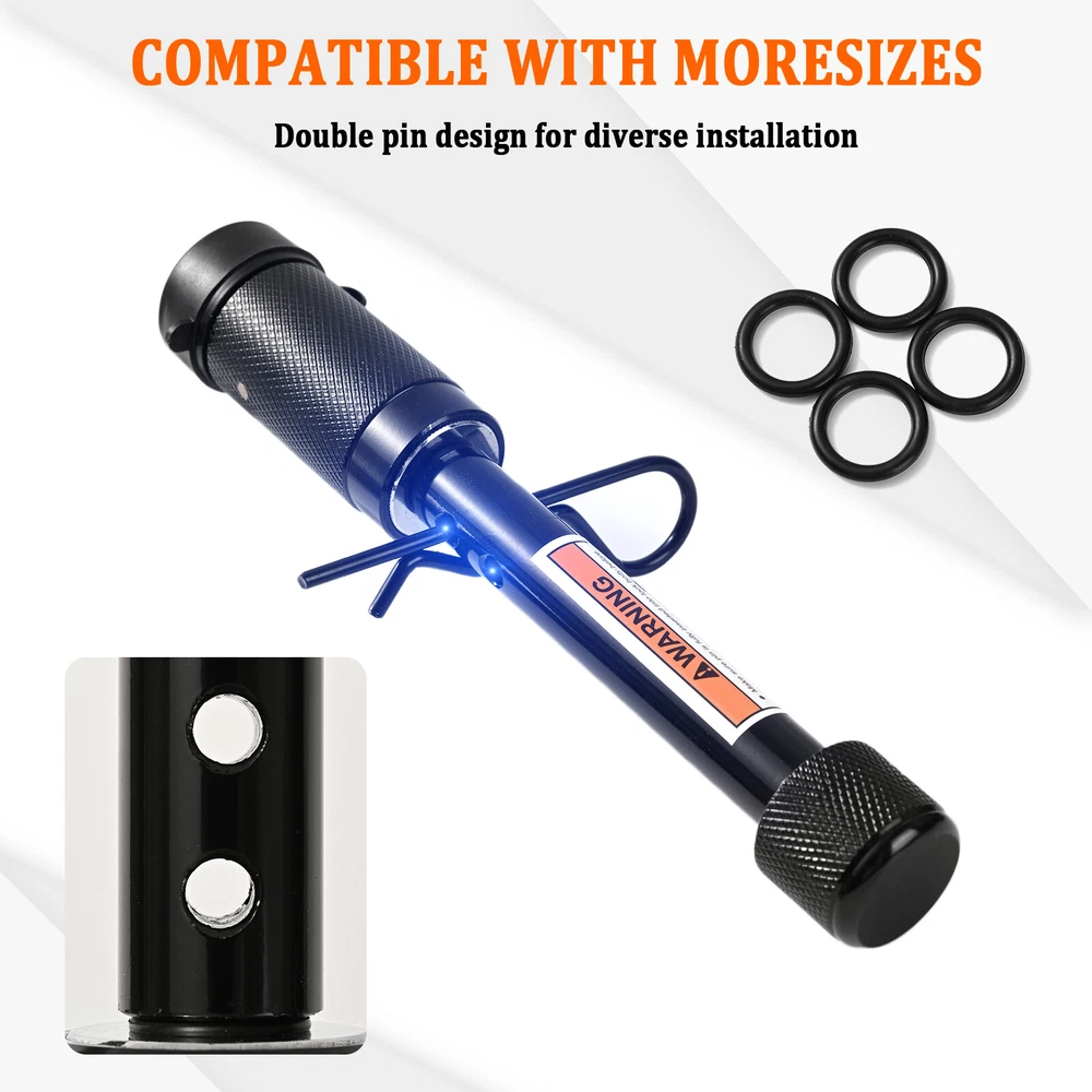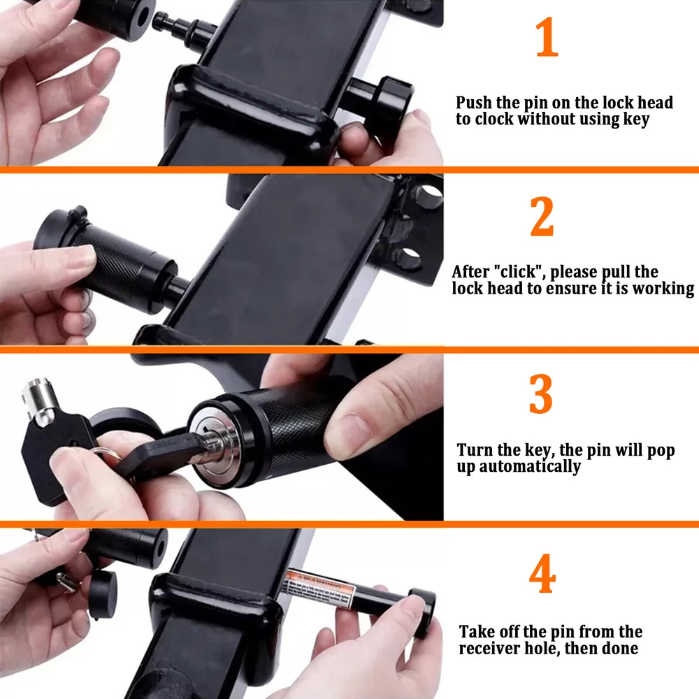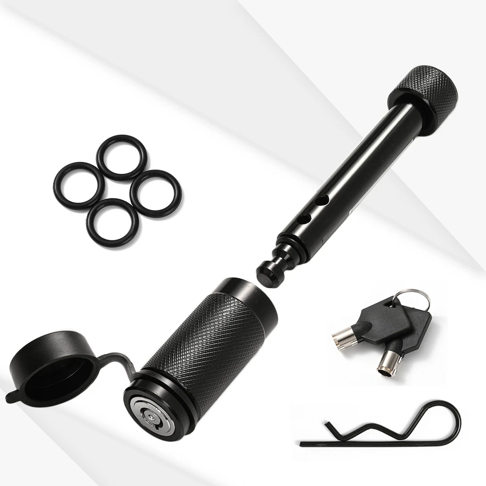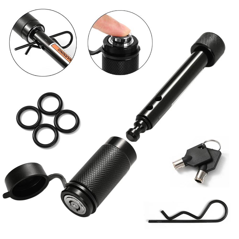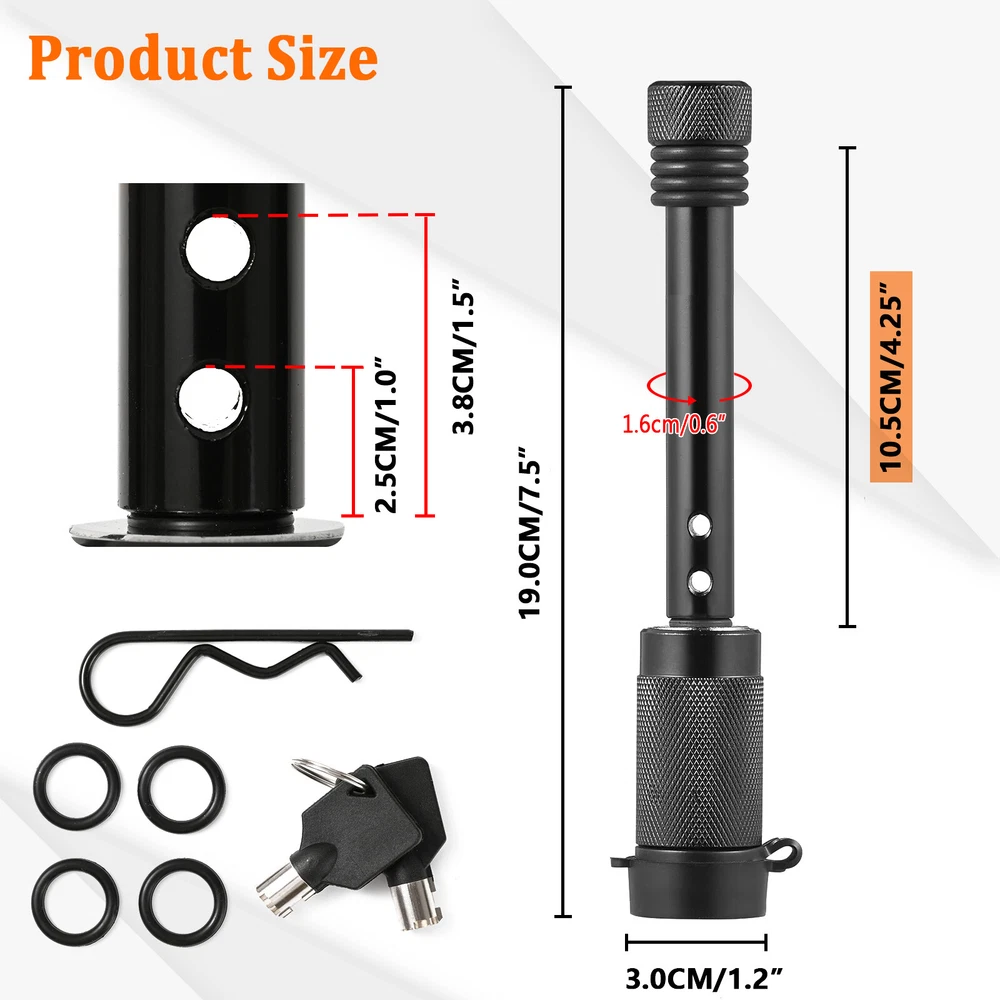 5/8" Heavy Duty Tow Towing 4" Long Hitch Lock Trailer Hitch Pin Locking Receiver Features - 5/8" diameter pin fits 2" x 2" receiver tubes - Protected by a durable black finish - Easy-to-operate, 1/4-turn lock activation - Watertight dust cap prevents internal corrosion - Includes two keys for added convenience - 4.2 inch space available. For inner tube size within 3.5 inch - Please make sure your trailer fits. Description Professional Design to Lock up Your Tow Vehicle and Trailer Like a hitch pin and clip, hitch lock is designed to insert into the fastener hole in the side of a receiver tube in order to hold a ball mount or hitch-mounted accessory in place. While hitch pin does offer sufficient strength for keeping your ball mount firmly attached, which goes one step further. It allow you to lock your ball mount into your trailer hitch, deterring theft and preventing anyone from detaching your trailer at the ball mount and towing away your property without your permission. This hitch lock features a barbell design and comes with a 5/8" pin diameter to fit a 2" receiver tube size. hitch locks are comprised of a pin with two end caps and a round locking mechanism. They are key-operated and activate with a simple 1/4-turn. They also come with a watertight dust cap to keep out the elements and prevent corrosion. For the ultimate in towing security, a hitch lock and coupler lock used together will provide security at both the vehicle-side and trailer-side of your towing setup. It also can be applied to your boat, ATV or camper, so as to keep your possesions more secure with hitch locks. You Deserved One! Package includes: 1 Set x Trailer Hitch Pin Lock