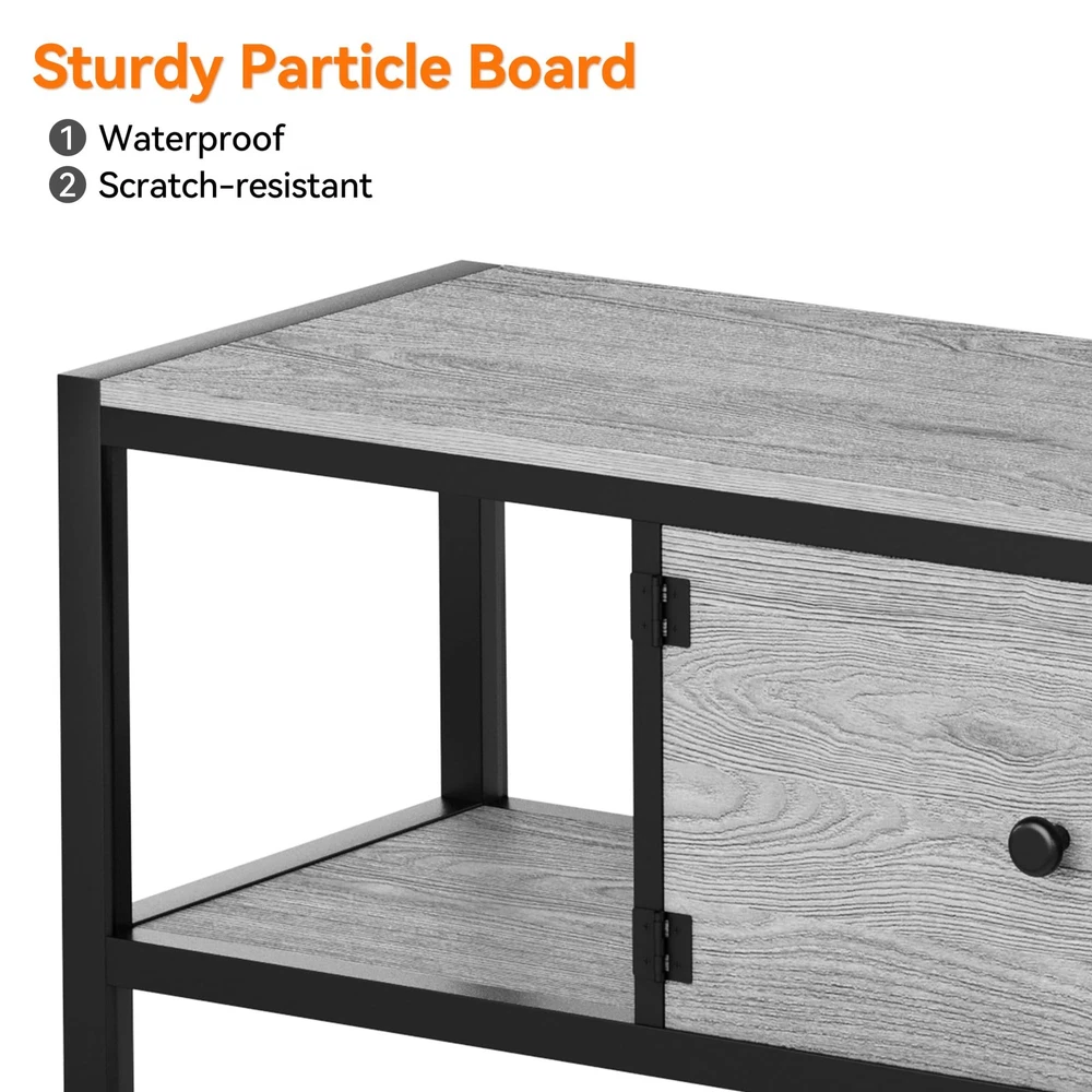 58 Inch TV Stand with Storage,TV Entertainment Center up to 65 Inch, Wooden TV Console with Two Closed Storage Spaces and Open Shelves for Living Room, Grey About this item 1、【Spacious TV Stand】: With dimensions of 58"×15.8"×18.5", this large tv stand with storage is suited to fit TVs up to 75 inches, providing a stylish and functional base for your entertainment setup 2、【Sturdy Construction】: Made from MDF, the TV console is waterproof and scratch-resistant, ensuring durability for everyday use; with a robust metal frame and sturdy feet, it provides reliable stability and can support a load weight of up to 300 lbs 3、【Ample Storage Space】: This bedroom tv stand features two closed storage cabinets and two open shelves, providing ample storage space for your media devices, books and decorative items while keeping your living area organized and stylish 4、【Adjustable Feet】: Featuring adjustable legs, this media console table can adapt to different ground heights, allowing you to create a stable and level surface on uneven flooring, ensuring optimal functionality and support 5、【Easy Assembly】: The tv stand for living room comes with clear, step-by-step assembly instructions and all needed installation accessories, allowing you to set it up quickly and easily without the need for professional help Free Shipping to Most US area! Please note that Certain automotive parts may be subject to regulatory restrictions in the state of California (CA), which can prevent us from shipping these items to addresses within CA. Destinations including Puerto Rico (PR), U.S. Virgin Islands (VI), Guam (GU), Northern Mariana Islands (MP), (AS) , (AK) ... are considered U.S. territories but may be subject to extended delivery timelines and additional shipping fees due to their remote locations. We encourage customers placing orders to these areas to contact us prior to completing your purchase, so we can confirm shipping availability and any potential surcharges. Thank you for your understanding. On Feb 5, 2026 at 08:20:22 PST, seller added the following information: