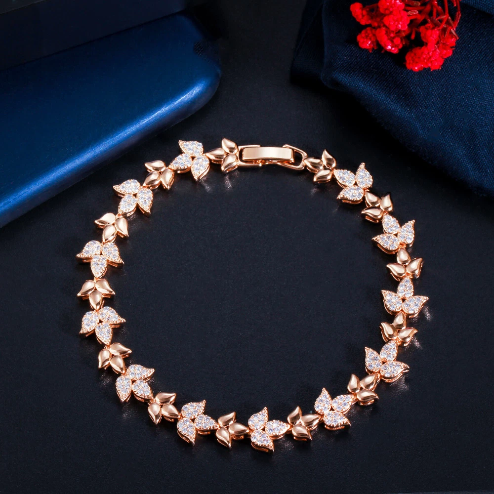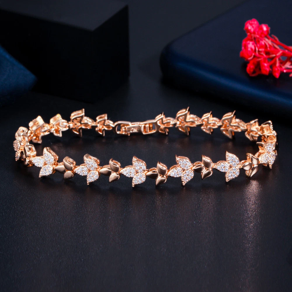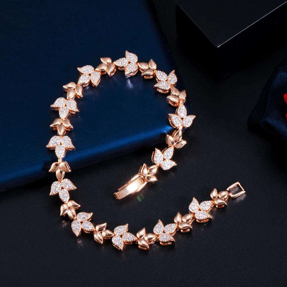 585 Rose Gold Plated Cubic Zirconia CZ Leaf Tennis Chain Link Bracelet Jewelry Specifications: 1. Condition: New 2. Material : Cubic Zirconia 3. Bracelet Size : 18.6 cm Features: 1. Cubic Zirconia High Quality Material - Diamond-like Brilliance , Prong Setting and CZ Stone are stable. 2. A Perfect Jewelry Gift for Women , Girls , Mother , Wife , Lover , Fiancee , Friends . 3. Suitable for Various Occasions: Ideal for Wedding, Prom, Pageant, Parties, Homecoming, Black Tie Formal Affairs, Holidays , Birthday , Christmas , Valentine's Day , Anniversary and Special Occasions. Package Includes: 1Pc Bracelet Payment Delivery details Terms of sales & Feedbacks About us & Contact us Our commitment Payment 1. We only ship item to your Ebay verified address . Please Make sure all address are the same 2.Please leave note in ebay when making the payment if you have any special request (colors/size). Delivery details We only send items to the registered eBay address.Items will be shipped within 2 business days from the date payment is received (not include public holiday and weekend) . As per eBay regulations, import duties, taxes, and customs charges are the buyer's responsibility. Please check with your country's customs office to determine what these additional costs may be prior to bidding or buying. Terms of sales & Feedbacks After-Sale Please contact us to request a return/replace/refund authorization .It will be best if you use ebay message to contact me. 1, Return and replacement request is available only the requests within 30 days after parcel received. 2, Returning the item as the same condition as received. Situation and solution Defectives ---Please contact us and provide a photo of the defective part. After situation confirmed,we will offer you refund/return/replacement according to the situation Not as Described ---Please contact us and provide a photo of the wrong part. After situation confirmed,we will offer you refund/return/replacement according to the situation Not Received ---Please undersatnding shipping on the way was out of our control ,because of the busy shipping season,holidays,bad weather or force majeure etc. It may be delay for days. But if it took too much time and not deliveried, Please message me, I will offer you solution for it. Feedbacks 1. If you are satisfied with our service, please leave us a + Good feedback and rate the details of the transaction (DSR) with a. . When you rate the shipping time part please take international transit into consideration.] Your recognition will make us more confident to develop business and serve you better. 2. Please contact us first if you have any problem with the items,we will solve it in time ! 3. Please do not leave Neutral or Negative Feedback before you contact us, Thanks For Your Business ! About us & Contact us Working time: Chinese time(Eastern eight zones):Monday to Friday ,9:00 am to 6:00 pm. We do not work on chinese legal holiday. Message reply: We will reply all messages within 24 hours of business time. Please contact us via ebay message, it was the best way for both you and us to solve problems. Any questions or anything you need, please feel free to contact us. Our commitment 1.Wholesale price will be offered to you if you need in bulk ! 2.About Size