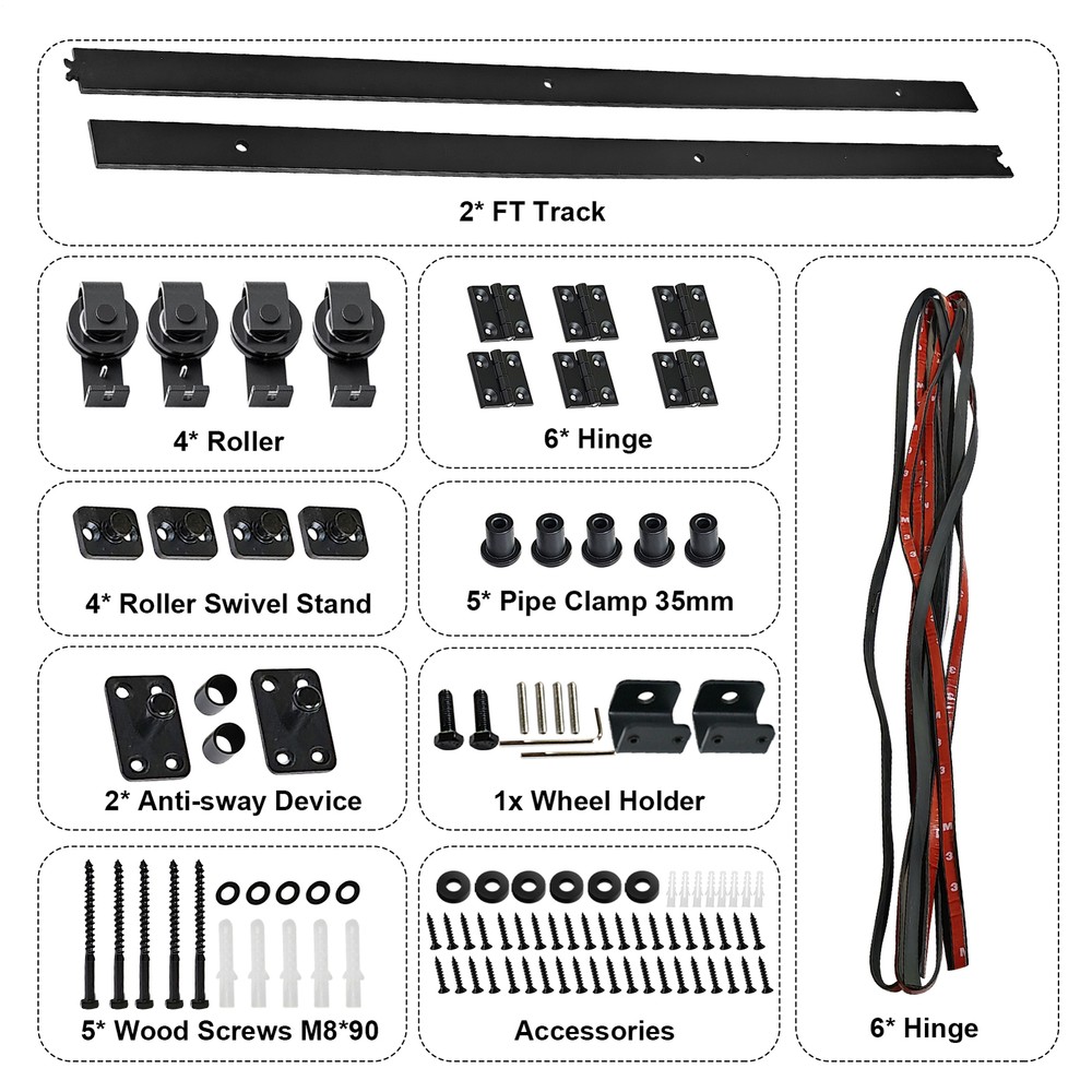 5.8FT Sliding Barn Door Hardware Closet Track Kit for Double Door Black Bullet Points: Enhanced Durability: Manufactured from excellent carbon steel, providing a resilient structure for long service life with high-strength and wear-resistant features Optimized Load-Bearing: Boasting 6mm thick tracks and excellent bearings, this sliding door track kit provides excellent strength to effortlessly support heavy loads Modernized Installation: Clear and concise installation instructions enable users to effortlessly set up and operate the sliding door track kit independently, ideally saving valuable installation time Easy and Quiet Sliding: Expertly crafted for seamless function, this kit ensures smooth and quiet door movement, enhancing user comfort with each use Enhanced Functionality Achieved: The innovative design of the folding door kit effectively saves space, enhancing utilization efficiency effortlessly Enhance your sliding door experience with high-quality sliding door track kit. Enjoy a long service life, improved load-bearing capacity, and easy self-installation. Tested for durability with a space-saving design. Specification: Name: Barn Door Hardware Color: Black Material: Carbon steel Track Size: about 70 inches/178cm Track Splicing Method: 2 pieces Scope of Application: Door panel thickness 0.5-50mm/0.01-1.96in Packing List: 2* FT Track 4* Roller 4* Roller Swivel Stand 2* Roller Holder 6* Hinge 2* Ground Guide Fixings 2* Sealing Strip 1* Screw Pack 1* Instruction Manual 5* Pipe Clamp 35mm 5* Wood Screws M8*90 We accept PayPal payment,PayPal Credit,Credit card or debit card and so on. Payment should be completed within 4 (Four) days of auction closing. Or unpaid dispute will be filed for closing auction. We will leave a positive feedback immediately after payment is received. We appreciate a positive feedback as much as you do. If for some reason there is any issue with the purchase, please contact us prior to leaving feedback, we will be glad to work together and provide a satisfying solution. 1. We ship to your eBay address. Each package will be shipped via FedEx or UPS 2-8 business days with tracking number 2. Please check your shipping address carefully before checkout, it can't be changed if order completed. 3. Shipping within 1 business days once payment completed. Orders placed on weekend will be delay 1-2 days. 4. Please allow 6 business days for delivery to any destinations. 5. As a buyer, it is your duty to pay the tax when you make an order from abroad. Our price does not include taxes, VAT, or other hidden charges. 1. We maintain high standards of excellence FIVE STAR and strive for 100% customer satisfaction! 2. Positive Feedback is very important to us. We hope that you contact us immediately BEFORE you give us neutral or negative feedback, so that we can satisfactorily address your concerns. 3. We promise to offer the best price and high quality products. 1. If you have any questions, please send a ebay message. 2. We will reply within 48 hours of your email. Weekend will be delayed a bit.