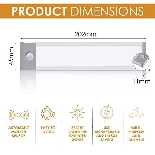 Return Policy Fast Delivery Trusted seller 58-LED Motion Sensor Light Indoor, Motion Activated Closet Light, USB Rechargeable Wireless LED Light for Kitchen, Wardrobe and Cabinet, 1500mah, Warm and Natural White, 2 Pack Product Description AUTOMATIC MOTION SENSOR: Our under cabinet light with passive infrared technology (PIR) detects human motion to automatically turn on in the dark. These motion sensor closet lights automatically turn off after 20 seconds with no motion or if other light sources are detected. This battery-powered light works in the dark only – the light sensor detects other lights and won’t switch on in the light. EASY TO INSTALL: These led bar motion sensor lights include a magnetic strip with an adhesive backing for easy peel-and-stick installation. The LED cabinet lights attach to the magnetic strip for easily detaching and battery replacement. No tools, screws, or nuts are required. Mount the locker lights on any dry, clean, and flat surface. BRIGHT UNDER THE COUNTER LIGHTS: These indoor motion sensor lights for the kitchen are brighter than other similar lights. With 58 LEDs in each light, our magnetic locker lights provide enough light to make sure you never stumble in the dark. This stick-on light has the function of adjustable color modes. USB RECHARGEABLE AND ENERGY SAVING: Our under-counter lights are completely wireless for an easy and neat installation. Each wireless LED light bar is powered by a1500mAh high-capacity rechargeable battery, easily charged via the USB cable (included). Simply detach the lights from the magnetic strip for quick battery replacement. Built-in daylight sensor ensures a long battery life by not turning on when other light sources are detected. MULTI-PURPOSE AND DURABLE: This battery LED light can be used in the kitchen, closet, pantry, hallway, bathroom, safe, drawers, attics, basements, kid's room, cupboard, emergency supplies storage room, garage, medicine cabinet, storm cellar, storage unit, vanity mirror, workstation, and anyw you need hands free lights. Shipping Returns Payment Shipping Shipping is FREE to all addresses other than APO/PO boxes in the lower 48 states. All our stock ships from US-based warehouses. Shipped via USPS or UPS (depending on location and package weight) Unless stated otherwise, all orders will ship within 24-72 hours of your payment being processed. Check our feedback to see the great reviews of FAST shipping we offer. Returns Seller does not accept returns Payment We currently accept payment via eBay managed payments only. Once payment is cleared, we will dispatch your shipment within 1-3 business days. Please refer to the "Shipping" tab for more information regarding shipping speed to your destination.