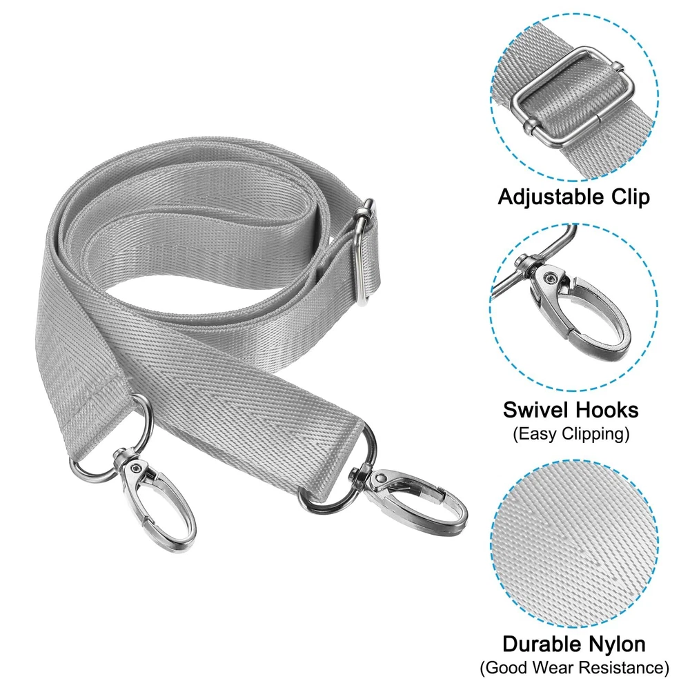 This shoulder strap is mainly used to connect to the camera or bag like briefcase laptop case, computer bags, travel bags, sport bags, which is convenient for you to carry your bag outside like sporting, business, travel and more. Specification Color: Grey Material: Nylon, Metal Adjustable Maximum Length: 150cm / 59"" Strap Width: 2.5cm / 0.98" Package List: 1 x Shoulder Strap Advantage Made of durable nylon material with metal swivel hooks , it has good wear resistance ,not easy to deform, has long service life. Adjustable and Wide Strap: Its length can be adjusted maximum to 59inch, freely according to your body shape and height. The width of the shoulder strap reaches 2.5cm, which can reduce the pressure caused by the weight of the bags. All can bring you a good outside experience. Instruction 1. Fasten the clips at straps to the hanging ears on both sides of the bags. 2. Slide the adjustable buckle, adjust the length of the straps to suit your height. NOTE Please confirm your bags has hanging ears before purchasing. When not in use, please store it in a dry and ventilated place to avoid moisture. Specification: Color: Grey; Material: Nylon, Metal; Adjustable Maximum Length: 150cm / 59""; Strap Width: 2.5cm / 0.98"; Package List: 1 x Shoulder Strap Advantage: Made of durable nylon material with metal swivel hooks , it has good wear resistance ,not easy to deform, has long service life. Adjustable and Wide Strap: Its length can be adjusted maximum to 59inch, freely according to your body shape and height. The width of the shoulder strap reaches 2.5cm, which can reduce the pressure caused by the weight of the bags. All can bring you a good outside experience. This shoulder strap is mainly used to connect to the camera or bag like briefcase laptop case, computer bags, travel bags, sport bags, which is convenient for you to carry your bag outside like sporting, business, travel and more. Instruction: 1. Fasten the clips at straps to the hanging ears on both sides of the bags. 2. Slide the adjustable buckle, adjust the length of the straps to suit your height. NOTE: Please confirm your bags has hanging ears before purchasing.