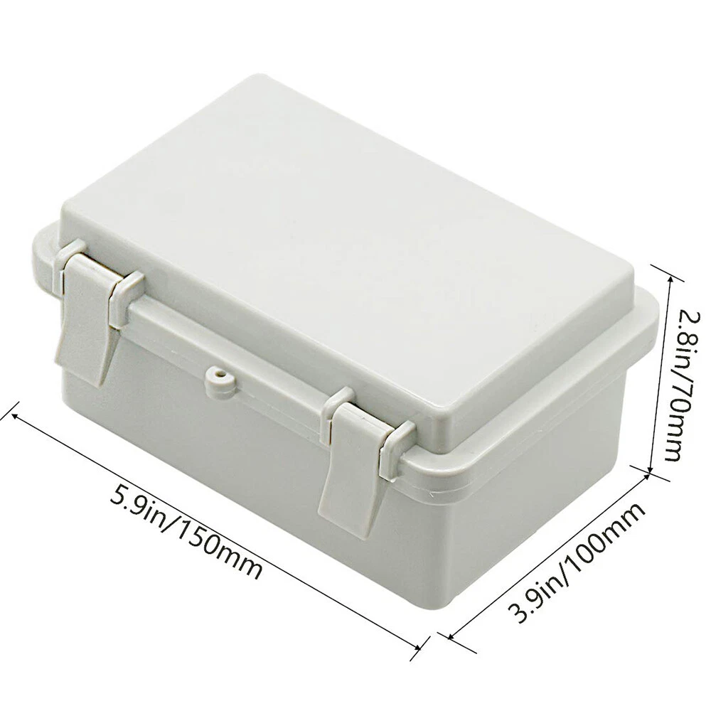 Application: Automotive, Branch Circuit, Charging/Power, Commercial, Control Equipment Panels, Conveyance Lines, Cooker, Data Centers, Electrical Wiring, Electronics, Fan Control, Home/Garden, Home Appliance, Industrial, Instruments, Large Appliances, Light Control, Multi-Outlet/Power Splitter, Outlet, Portable Generator, Power Transformers, Small Appliances, Telecommunications, Transportation, Voltage Conversion MPN: Does Not Apply Suitable For: Ceiling, Exterior, Interior, Wall Material: ABS/Plastic IP Rating: IP65 Brand: Unbranded UPC: Does Not Apply Color: Gray gtin13: Does Not Apply Type: Small Junction Box Mounting Style: Ceiling, Fixed, Modular, Panel, Surface, Suspended, Unit, Wall Features: Waterproof Resistance Properties: Child Resistant, Corrosion Resistant, Dustproof, Dust Resistant, Impact Resistant, Moisture Resistant, Rustproof, Rust Resistant, Scratch Resistant, Shockproof, Sunlight/UV Resistant, Tear Resistant, Waterproof, Water Resistant, Weatherproof, Weather Resistant Room: Any Room Protection Properties: Wire Protection Size: 5.9" x 3.9" x 2.8" Box Shape: Rectangular