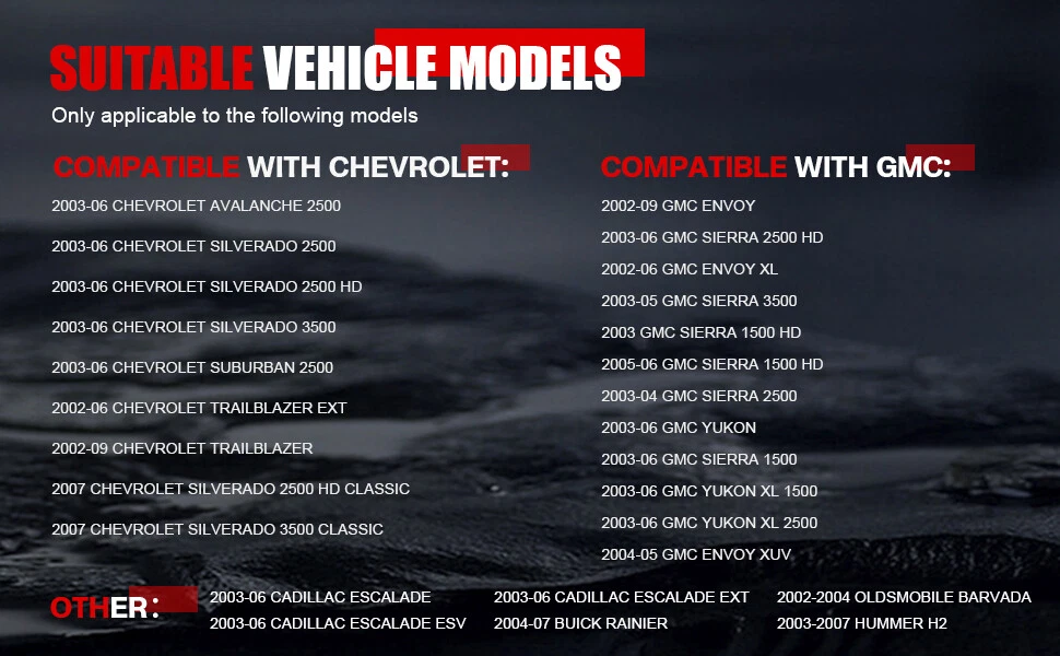 Store Categories Store Categories Power Tailgate Struts Buckup Camera A/C Heater Climate Control Oxygen Sensors Tire Press Monitoring System High Pressure Fuel Pump Other Cowtotal Autoparts,Your Best Aftermarket DIY & DIFM Partner. Product Description Pa cka g e includes: 1 x HVAC Control Module Fitme nt : (For Reference Only): Not Fit 599-009 599009 For 2003 Hummer H2 For 2006-2007 Hummer H2 For 2004 2005 2006 2007 Buick Rainier For 2002 2003 2004 0ldsmobile Bravada For 2005-2006 Cadillac Escalade EsV For 2005-2006 Cadillac Escalade EXT For 2003 2004 2005 2006 Chevrolet Tahoe For 2002 Chevrolet Trailblazer For 2004 2005 2006 2007 2008 2009 Chevrolet Trailblazer For 2004 2005 2006 Chevrolet Trailblazer EXT For 2003 2 0 04 2005 2006 Chevrolet Avalanche 1500 For 2003 2 0 04 2005 2006 Chevrolet Avalanche 2500 For 2003 2 0 04 2005 2006 Chevrolet Silverado 1500 For 2003 Chevrolet Silverado 1500 HD For 2004 2 0 05 2006 Chevrolet Silverado 1500 HD For 2003 2 0 04 2005 2006 Chevrolet silverado 2500 For 2003 2 0 04 2005 2006 Chevrolet silverado 2500 HD For 2003 2 0 04 2005 2006 Chevrolet silverado 3500 For 2003 2 0 04 2005 2006 Chevrolet suburban 1500 For 2007 Chevrolet Silverado 1500 Classic For 2007 Chevrolet Silverado 2500 HD Classi For 2007 Chevrolet Silverado 3500 Classic For 2002 2003 2004 2005 2006 2007 2008 2009 GMC Envoy For 2002 2003 2004 2005 2006 GMC Envoy XL For 2003 2004 2005 2006 GMC Sierra 1500 For 2003 GMC Sierra 1500 HD For 2005-2006 GMC Sierra 1500 HD For 2003-2004 GMC Sierra 2500 For 2003 2004 2005 2006 GMc Sierra 2500 HD For 2003-2005 GMC Sierra 3500 For 2003-2004 GMC Yukon For 2003-2004 GMC Yukon XL1500 For 2003-2004 GMC Yukon XL2500 For 2004-2005 GMC Envoy XUV For 2007 GMC Sierra 1500 Classic For 2007 GMC Sierra 1500 HD Classic For 2007 GMC Sierra 2500 HD Classic For 2007 GMC Sierra 3500 Classic Features: 100% Brand New. According to o riginal factory specifications, perfect match to original car . Made of high quality material. Parts are from certified professional factory. Specifications: Interchange Part Number:599-211XD, 599211XD, 599-211, 599211 OE/OEMPartNumber:10367041, 10367042, 10399657, 15077479, 15079112, 15085358, 15105215, 15105969, 15107730, 15132070, 15133519, 15136332, 15137655, 15165918, 15175897, 15185639, 15192450, 15195331, 15195380, 15195564, 15201969, 15202099, 15203179, 15214766, 15220310, 15220319, 15222482, 15763065, 15814152, 15832311, 15832314, 15832316, 15832318, 15845093, 15855848, 15855849, 21997426, 21997427, 21998695, 21999159, 21999163 Manufacturer Part Number:599-211xd Connector Quantity: 2 Housing Color: Black Mounting Hardware Included: No Mounting Type:Bolt On Note: Pleas e Check Carefully To Make Sure the OE Number And Picture are Exactly Listed Are The Same As Your Orignal One. If You are Not Sure Whether It Fits, Please send VIN number to us. No Instruction Included, professional installation is highly recommended . Payment Policy Shipping Policy Returns Policy Warranty Payment Policy 1. We accept Paypal, Credit Card, Veno,Goggle Pay,American Express,Discover, Direct Debit, VISA, eCheck, or othe r methods, please kindly check Paypal for more information. 2. For multiple purchases, please add items to your Ebay shopping cart and pay once for entire order. Shipping Policy 1. All items will be shipped to buyer's ebay address. 2. All items will be shipped within 24 working hours upon receipt of payment, and multiple items might be combined shipping. 3. In most cases, delivery takes around 3-7 business days, it's highly depended on the efficiency of the shpping carrier. If your item doesn't arrive on time, please contact us immediately for further assistance. Please note there is no local pickup service available. 4. We do appreciate your purchase here. If you are astisfied with the item as well as our service, please kindly leave us a Positive Feedback to help develop our bu siness. Th ank you in advance. Returns Policy We have a friendly and dedicated customer support teams to handle any problems you come up with our products. Please contact us first via email or message for replacement, refund or technical problem caused by any reason. Warranty 30 Days Free Return and Money Back Guarantee. If you are not satisfied with your purchase, you can return the item with original packaging back to us for full refund, not any re-stock fee. The return cost should be paid by buyer. 5 Year Unl imited Mileage Quality Guarantee If you receive any w rong items, or damage during the transportation or defect items, we will accept the return and pay the return freight. Please noted that the return cost should be prepaid by buyer, we will issue the refund of return cost to buyer after inspecting the faulty item. The full refund or replacement will be available for all faulty items, including the original shipping cost. Please kindly contact us b efore return, our representatives will send you the detailed return instruction. The guarantee will be only for the cost of the item, we will not responsible for installation or other fees like labor expenses, towing expenses, additional repair expenses or other related expenses. Copyright © 2023 Dianxiaomi