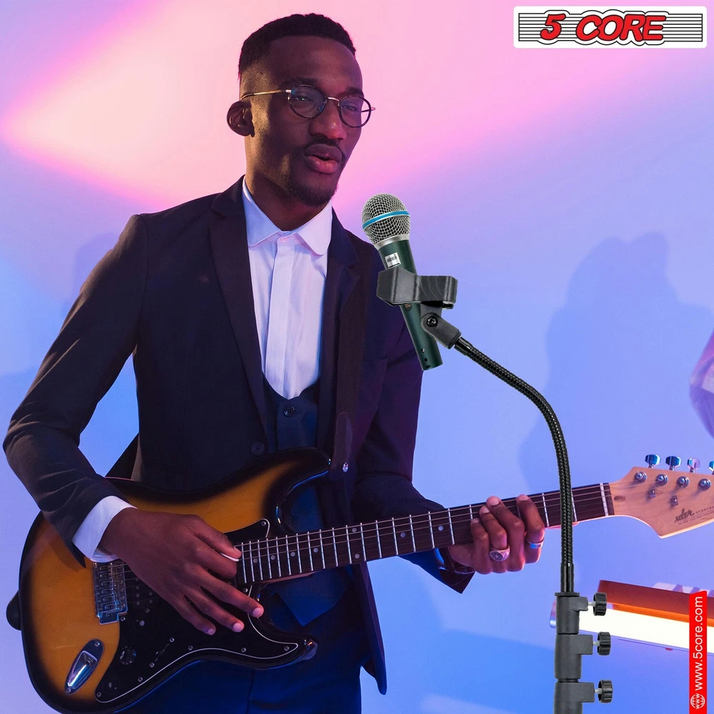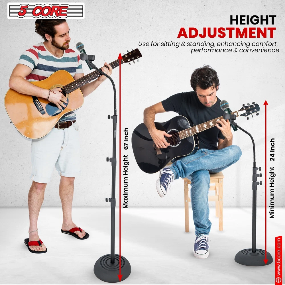 Created with Eselt - Templates and Image Hosting for eBay Sellers The Premium Brand, Trusted by Millions Give us a call Send us a message Created with Eselt - Templates and Image Hosting for eBay Sellers Our Store Seller Profile Feedback About us Contact Created with Eselt - Templates and Image Hosting for eBay Sellers 5Core Mic Stand Floor Adjustable Round Base Universal Metal Microphone Stands Highlighted Features HEIGHT ADJUSTABLE MIC STAND - 59.06 to 78.74 inches, using the clutch to suit different performers and applications. FLEXIBLE GOOSENECK - 360° fully adjustable; it lets you position your microphone at your preference. HEAVY DUTY BUILD - Full Metal Boom and round base. With anti-corrosion paint and reinforced joints, it's built to last. SUPERIOR STABILITY - Big 9.8 inch round heavy base with non slip padding ensures the stand remains stable and doesn't tip over easily. WIDE APPLICATIONS - 5 Core tall mic stand comes with small and large mic clips, compatible with most microphones on the market. Product Description Give your best performance with our height-adjustable mic stand, extending from 59.06" to 78.74" to suit any performer. Its heavy duty build features a full metal boom and round base, enhanced anti-corrosion paint, and reinforced joints for lasting durability. Enjoy superior stability with a 9.8-inch non-slip padded base. The portable mic stand design allows for easy disassembly and storage. This versatile stand includes 2 adjustable mic clips for precise positioning and a metal screw adapter compatible with most mikes. Benefit from hassle-free height adjustments, efficient wire management, and a robust build that is perfect for any setting. Features ANGLE ADJUSTABLE The mic clips' angle can be adjusted to personalize the microphone position according to your liking. METAL SCREW ADAPTER Precise 3/8 to 5/8 inch screw adapter, standard and precise thread compatible with most mic holders and accessories. PORTABLE DESIGN The floor mic stand can be disassembled in two parts. Adjust the height to the shortest 24" for easier storage and carry. WIRE MANAGEMENT Cable management clips help keep wires organized and out of the way, reducing the risk of tripping or accidental disconnection. Mic Stand Specification: Color : Black Gooseneck : Yes Base Type : Round Base Diameter : 9.8 Inch Base Weight : 4.8 Lb Mic Clip Angle Adjustment : 180 Degree Body Material : Metal Back Material : Iron + Plastic Tube Diameter : 0.9/0.8/0.7/0.6 Inch Highest : 67 Inches Non Slip Pad : Yes Minimum Height : 59.06 Inch Maximum Height : 78.74 Inch Package Include: 1x Microphone Stand 1x Gooseneck 2x Mic Holder 2x Wire Management Clip About Brand 5 Core, ISO Certified headquartered in California, warehouse in Ohio, USA. Offering 600+ products since 1984. Tested and Certified Products, ensuring highest quality and reliability. Created with Eselt - Templates and Image Hosting for eBay Sellers Payment Created with Eselt - Templates and Image Hosting for eBay Sellers Links Our Store Seller Profile Feedback About us Contact More items Are you looking for something similar? See our other items! Show more items Contact Give us a call Send us a message