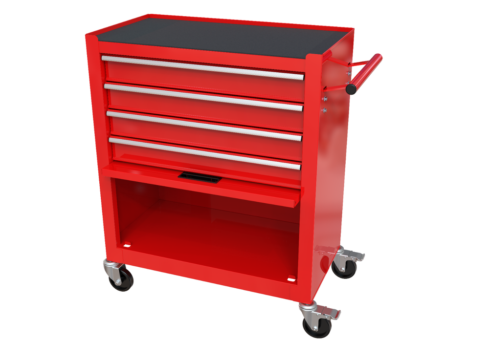 Features and Details: The metal storage cabinet comes with four wheels, two of which have parking brakes, so you can move the cabinet around freely or park in one place. The opening and closing of the drawers of the tool cabinet is very gentle thanks to the ball-bearing drawers. The storage surface provides additional space for storing and arranging tools you often need. The robust and powder-coated steel construction is used for high wear resistance. Specification: Material:Cold Rolled Steel Surface Finish:Powder Coating Casters:4" Casters (2PCS with brake and 2PCS without brake) Size :24.25*13*29.33 Package Size:28.86*27*15.18 Color:Red Weight (lbs.): 58.20