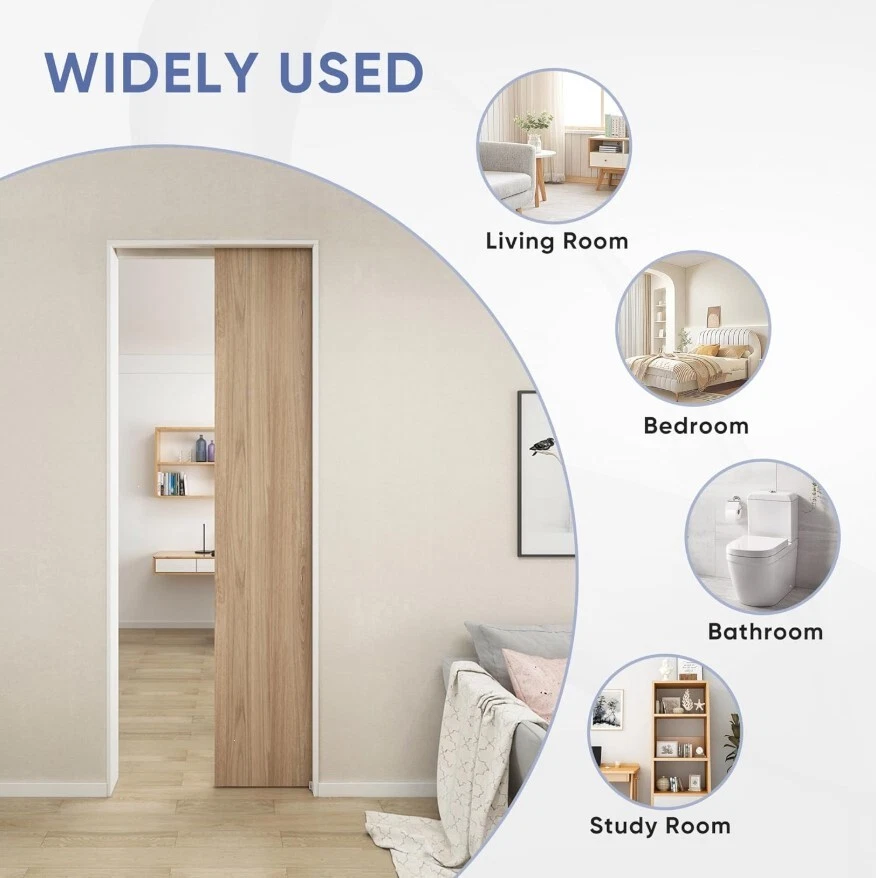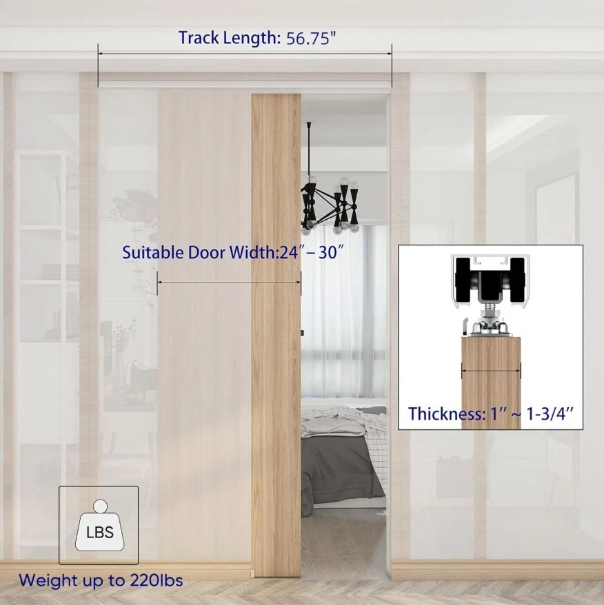 Free eBay listing template designed by dewiso.com Welcome to My Stores, Happy Shopping! ------------------ 5FT Commercial Grade Pocket Door Hardware and Track Set, Sliding Door Hardware About this item Excellent Structure: Commercial grade precision extruded aluminum box track ensures door will not jump from track, convex rails on track allow flexible and free rolling. Pocket door track is made of high-quality aluminum, which is corrosion-resistant, rust-proof. Smoothly and Steady: Three-wheel hangers guarantee the weight of the door to be evenly distributed on each wheel, with heavy-duty ball-bearing offer minimum friction and quiet rolling. This allows the three-wheel hangers to operate more smoothly and steady. Dimension: Suitable for door panel thickness 1" to 1-3/4"; door panel width 24"-30". Max Door Weight up to 220lbs (100kg) per panel. Easy to Install and Widely Applicable: The box rail structure is not complex. Quick release locking tab allows easy door installation/removal without dropping track. We also provide detailed professional installations. This track set is suitable for various scenes, such as bedroom, study, storage room, balcony, gym, office, etc. The pocket door track can meet most of your needs. Package Includes: 1x Aluminum track, 2x Hangers with mounting plate, 2x Floor guide, 1x Door bumper, and wrench & instructions & mounting screws. Product Description Color Silver Material Aluminum Style Modern Assembly Required Yes Item Weight 3.83 pounds Product Dimensions 1.77 x 56.7 x 1.22 inches Size 5 Feet Included Components wrench & instructions & mounting screws, 2x Floor guide, 1x 5FT aluminum track, 2x Hangers with mounting plate, 1x Door bumper Shipping Tracking number: Available We use a selection of shipping services such as UPS, FedEx, USPS etc. We only ship to the lower 48 states, no APO/FPO addresses or PO Boxes allowed. Local pickups and combined shipping options are not provided at this time. Contact us We can be contacted at any time through eBay messages if you have any questions, comments or product requests. We will respond to you within 24 hours and do our best to help you out! We encourage our customers to contact us with any questions or concerns! We'd like to be sure you are completely satisfied with your purchase