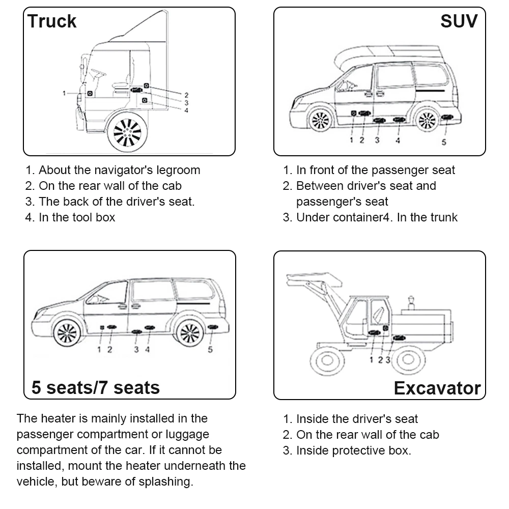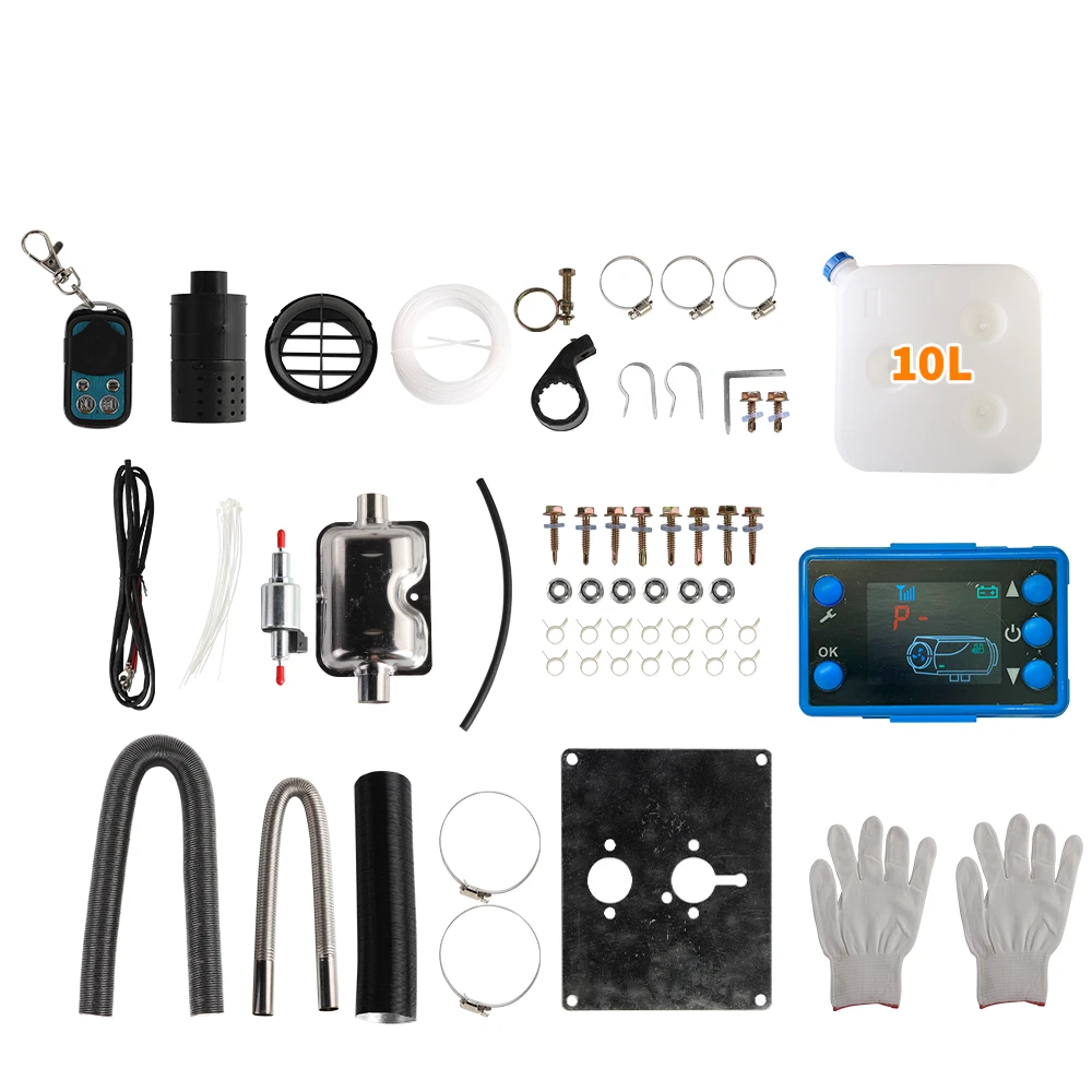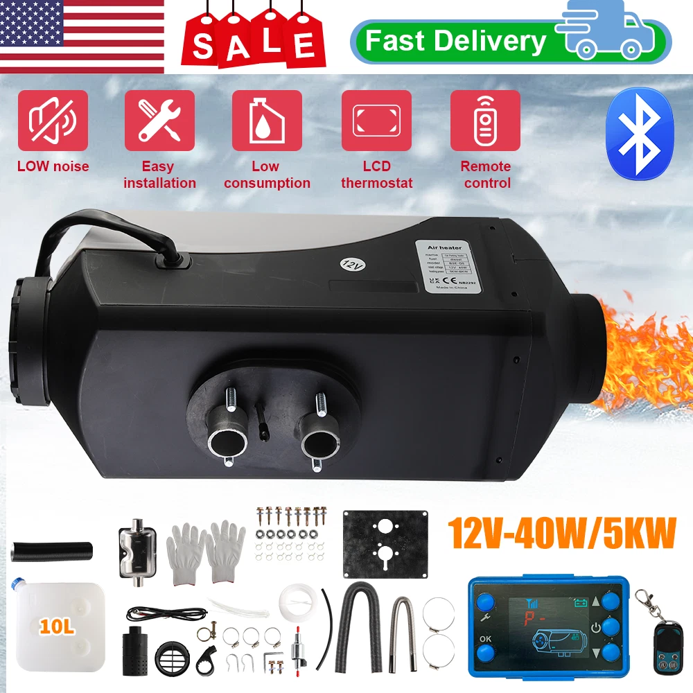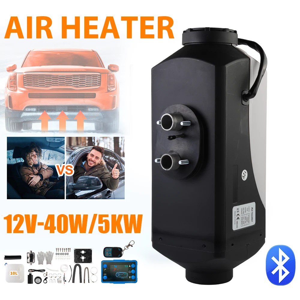 Specifications: Condition: New Car Air Conditioning Type: Heating Fuel Type: Diesel Switch Type: LCD Control Panel Heating Power: 5KW Rated Voltage: 12V Item Size: 13.38x4.53x4.53 inch Fuel Tank: 10L / 45*45*7.7cm Color: Gray& Black Features: Efficient Heating:Heater Power: 5 KW; Rated Voltage: 12V.. Our diesel air heater adopts a aluminum heat exchanger for rapid heat production and transfer, ensuring a comfortable temperature inside your vehicle, boat, or cabin. Remote control:The temperature can be adjusted via the remote control, which means it can be activated before entering the car in the cold morning. Control range within 30 meters. Equipped with muffler, air filter, and protective gloves. Our upgraded diesel heater now has Bluetooth control for greater convenience. Download the app to preheat your heater from up to 98 ft/30 m away, or use the included 32 ft/10 m remote control and LCD With a 10 L/2.6gal large capacity fuel tank, the diesel air heater can provide continuous heat for up to 19 hours, maximizing fuel efficiency and minimizing energy waste. Automatic Altitude Compensation: Our diesel air heater is equipped with automatic altitude compensation, making it suitable for altitudes up to 18,045 feet/5,500 meters. It adjusts its operation based on the altitude, so you don't have to manually control it. Enjoy seamless heating performance even in high-altitude environments. Package Included: 1 x Air Heater 1 x Muffler 1 x LCD Thermostat 1 x Remote Control 1 x Fuel Tank (10L) The rest is shown in the picture. Brand JOYHUT Applications: Trucks, Van, RV Trailers, Cars, Motorhomes, etc Bundle Description Just like the picture Car Air Conditioning Type Heating Color Black & Silver Fuel Gasoline Diesel Fuel Tank 10L Heater Power 5KW Item Size 46.50cm*45.00cm*28.00cm Material Metal & Plastic Part Type Air Diesel Heater Rated Voltage 12V