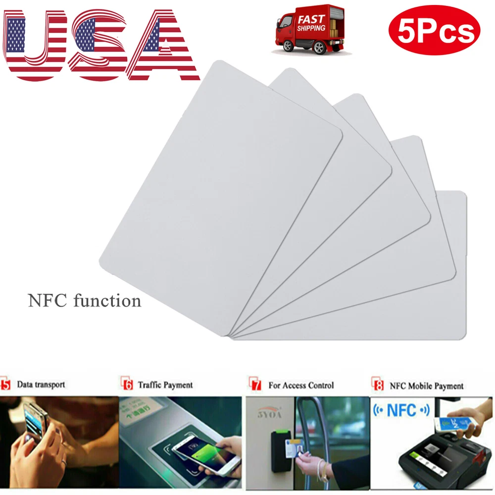 5PCS NFC Chip PVC Cards Tags Clone NTAG215 Card Blank Printable TagMo Waterproof 1. Adapt to most NFC devices: compatible with TagMo , suitable for all Android phones and devices that support NFC, bringing more convenience to life; with this NFC card, you can personalize your NFC according to your needs equipment 2. High-quality memory capacity: NFC blank white label uses 215 chips and 504 bytes of available memory; the chip has read-write lock function, which can be repeatedly edited or read-only; it cannot be edited or reset after being set as a read-only label; as for, only Can be edited once; durable and suitable for long-term use 3. Simple to use: These NFC 215 tags are usually suitable for contact information, such as providing your contact information or business information, as well as for security, product and equipment authentication 4. Stable materials: PVC cards are designed for NFC devices or NFC-compatible proximity coupling devices, including other NFC-enabled mobile phones and tablets; they are made of durable waterproof PVC material, which can be placed outdoors or near water. No loss of function; no adhesive, not suitable for metal surfaces 5. Compatibility: Support 13.56mhz RFID and NFC IC readers, such as Acr122u readers, support smart phones with NFC function. Applications: Sign-in, mobile payment, product information query, mobile identification, mobile marketing, social networking, business card sharing, access control, member management, posters, book lending, etc. Model: NFC 215 Available capacity: 504bytes Frequency: 13.56 MHz Installation type: read-write R/W Reading distance: 1 to 5 cm Read and write time: 1~2ms Working temperature: -20 to 55 degrees, humidity 90% Colour:White Material:PVC Size:54 x 85.5mm Package Contents: 5 x NFC NTAG215 Cards Only the above package content, other products are not included. Note: Light reflection and different displays may cause the color of the item in the picture a little different from the real thing. The measurement allowed error is +/- 1-3cm. Payment Shipping & Handling Returns Policy Contact US Feedback Payment Shipping will be arranged only your payment is cleared. We accept payment by PayPal only . Shipping & Handling We ship the same business day if paid by 4pm EST(1pm PDT). We don't ship to APO/FPO and Post Office box addresses, Alaska, Hawaii and Puerto Rico. No shipping on Weekend or Public Holidays & No responsibility for any customs duty. Returns Policy We offer a 60 day money back guarantee or exchange. Buyer pays return shipping and we pay replacement shipping. If you want to initiate a return , please contact us to get a returning address before sending the item back. Contact US We hope that every transaction can have a happy ending. And if you have any more problems, please feel freeeee to contact us. we'll do what we can to help. Feedback We believe communication can result in a happier ending before you leave a red or gray feedback. And this account is my baby. I do care about it and will do what I can to protect it.