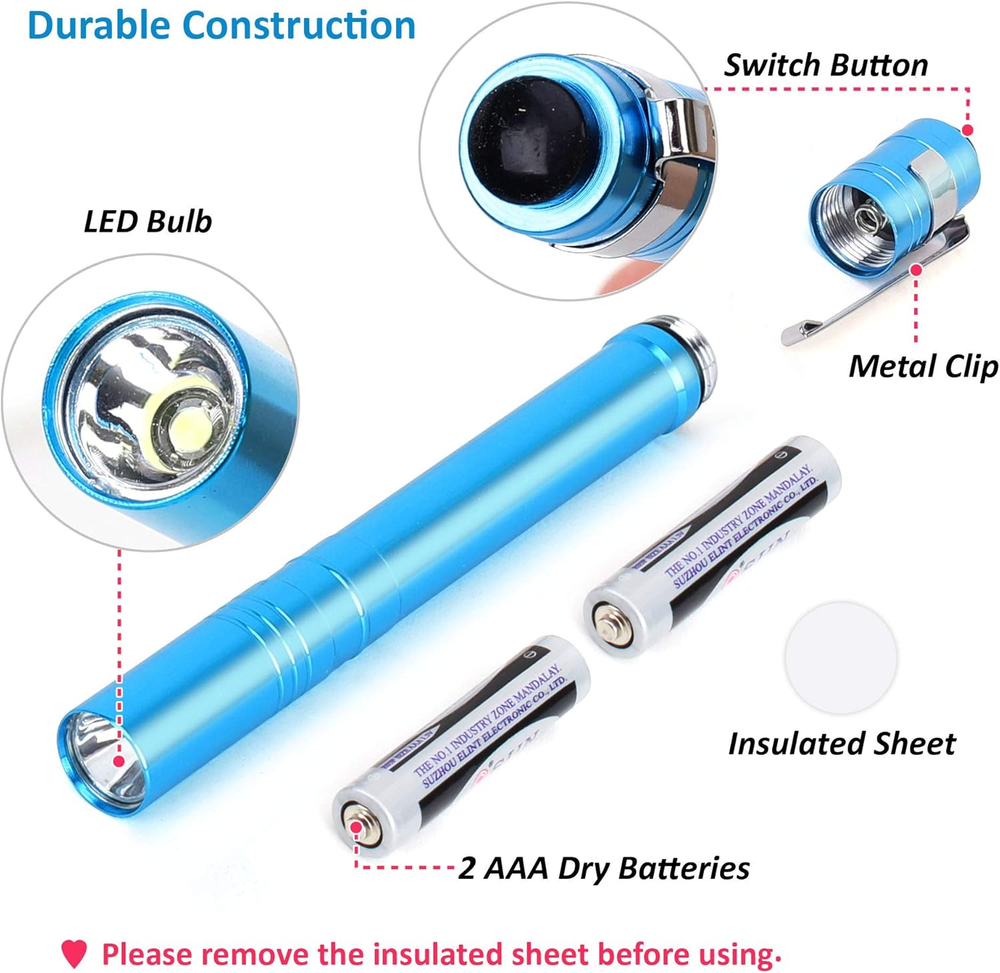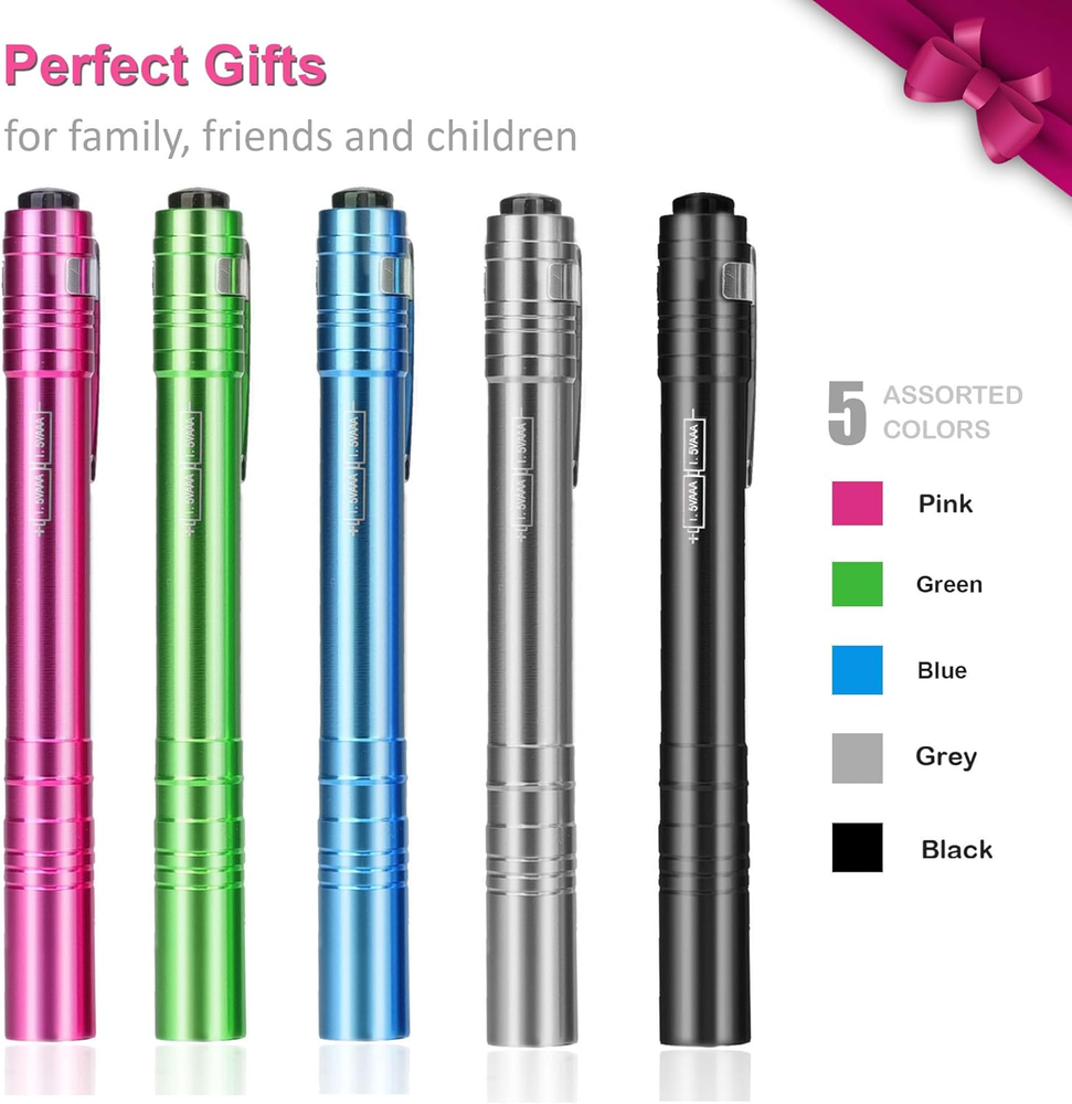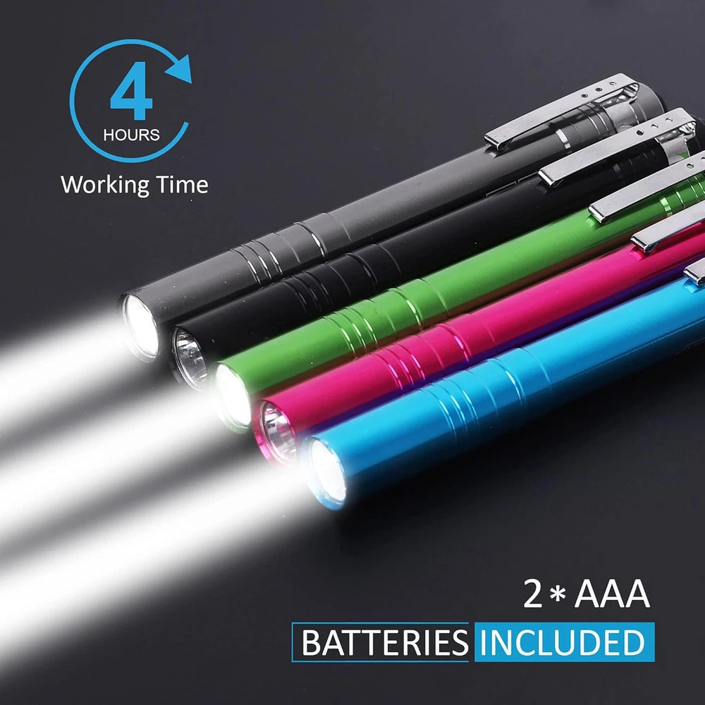 Store New Arrivals Add to Favorite View Feedback Contact 5-Pack LED Penlight Set with 10-Piece Pre-Installed Batteries, Aluminum Handheld Flashlights with Clip for Night Walks, Inspection, Emergency Description Light Source Type LED Item model number S00541 Style 5-PACK Power Source Battery Powered Battery Cell Composition Zinc Carbon Country of Origin China Batteries Included? Yes Special Features Lightweight,Portable Batteries Required? Yes Finish Aluminum Product Dimensions 5.13"D x 0.5"W x 0.5"H Material Aluminum Description Pile AAA Finish Type Aluminum Part Number S00541 Item Weight 7.8 ounces Battery Description AAA Special Feature Lightweight,Portable Number of Batteries 10 AAA batteries required. (included) Bulb Base Wedge Color Red, Green Brightness 30.00 Batteries 10 AAA batteries required. (included) Voltage 3 Volts Recommended Uses For Product night walking, reading in the bedroom, camping, hiking, fishing, BBQ gatherings, inspection, emergency Included Components Batteries Number Of Pieces 5 DURABLE CONSTRUCTION: These penlights are made from anodized machined aircraft aluminum, which makes them won't wear out overtime and withstand drops and bumps. QUICK-ACTIVATION BUTTON AND BEND CLIP: The single-mode button on the tail end of the flashlight enables swift on/off functionality,edroom reading, camping, hiking, fishing, nursing, BBQ. BATTERIES INCLUDED: Each flashlight comes with 2 preloaded AAA batteries,which is suitable for emergency. Please remove the red insulated sheet before use. SUPER BRIGHT ILLUMINATION: These flashlights are equipped with a powerful Super Bright LED, delivering an impressive light output of 30 lumens. This makes them perfect for a wide range of activities such as night walking, reading in the bedroom, camping, hiking, fishing, and even BBQ gatherings. LONG-LASTING LED: Never need to replace the LED bulb since it is made to support a super long-lasting life of 100,000 hours. Product Description ATTENTION Batteries are already installed inside the flashlights. Please turn off the rear cap, remove the insulated label before the first use. Avoid eye damage, please do not stare directly at the bulb when the light is on. If your flashlights are not used or used infrequently, it is suggested to remove batteries from flashlights and store them separately. This will help reduce power loss and prolong batteries life. Perfect for A Wide Range of Activities SEAMAGIC 5-pack LED Pocket Penlight Lumens: 30 LM Working Time: 4-hour Size: 5-1/8 IN * 1/2 IN Beam Distance: 15M Battery: 10-piece AAA dry battery Durable Construction The aluminum housing helps make the light extremely durable and abrasion resistant. Quick-Activation Button You can quickly turn on or off the flashlight, eliminating multiple operations, saving time and effort. Premium Beam This portable pen light illuminates concentrated areas with a bright and steady beam, making it ideal for close work. Pocket Clip The clip allows it to easily slip into pocket, which can hold the light firmly in place for easy carrying. 1 For examination 2 For detection 3 For repairing 4 For walking ABOUT US We offer the best prices around on high quality products. Our E-store includes media such as books, movies, music and games while offering electronics, toys, sporting apparel, clothing, tools, general home, garden items and more. SHIPPING We are always working hard to ensure your package arrives as soon as possible. Please understand that some factors like weather, high postal traffic, and the performance of shipping companies are outside of our control. We offer free shipping to the lower 48 states and ship within 2 business days of payment, usually sooner. We do not accept P.O. Boxes. Please provide a physical address. RETURNS We offer a 30-Day Return Policy on items which you are not completely satisfied with. You have the option for a full-refund or an exchange of the item. No returns are available on items shipped outside of the USA. PAYMENT We accept PayPal. CONTACT US This page content is yet to come Please ad us to your favorite seller and visit again later Thank You CUSTOMER SATISFACTION We try our very best to make sure every customer is completely satisfied. If there's a problem, message us! We're happy to help