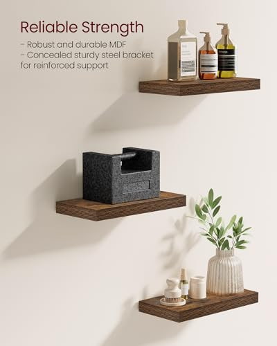 Menu 1. We require immediate payment. 2. We currently accept payment via eBay managed payments only. 3. Once payment is cleared, we will dispatch your shipment within 1-3 business days. Please refer to the "Shipping" tab for more information regarding shipping speed to your destination. Wall Shelves Set of 5, Floating Shelves, Wall Mounted, 8 x 15.7 x 1.5 Inches, Display Shelves for Picture Frames, Wall Decor, Hanging Shelf for Living Room, Kitchen, Rustic Brown ULWS071B02 Product description Mdf (Medium Density Fiberboard), Steel [Fits Perfectly with Any Aesthetic] With its rustic brown surface and wood grain, this wall shelf exudes a touch of sophistication. Wver it is placed—whether it's the living room, study, bedroom, hallway, or kitchen—it becomes a real eye-catcher [Convenient to Clean] This wall shelf is designed with a high-gloss painted surface, making it highly resistant to water and moisture. Simply wipe it clean with a damp cloth [Robust and Durable] High-quality MDF, a sturdy steel bracket, and meticulous workmanship make the floating shelf sturdy and strong. It doesn't easily deform, ensuring it will last for years to come [Easy-Peasy Installation] Simply drill holes in the wall, install the shelf with the provided screws, and it's done. Also, clear instructions are included to help you [What You Get] A set of 5 stylish wall shelves that enhance any room it's in, providing you a way to add some flair to any blank wall PLEASE MESSAGE US IF YOU HAVE ANY OTHER QUESTIONS, AND MANY THANKS FOR READING ALL OF THIS. Copyright ©#. All Rights Reserved.