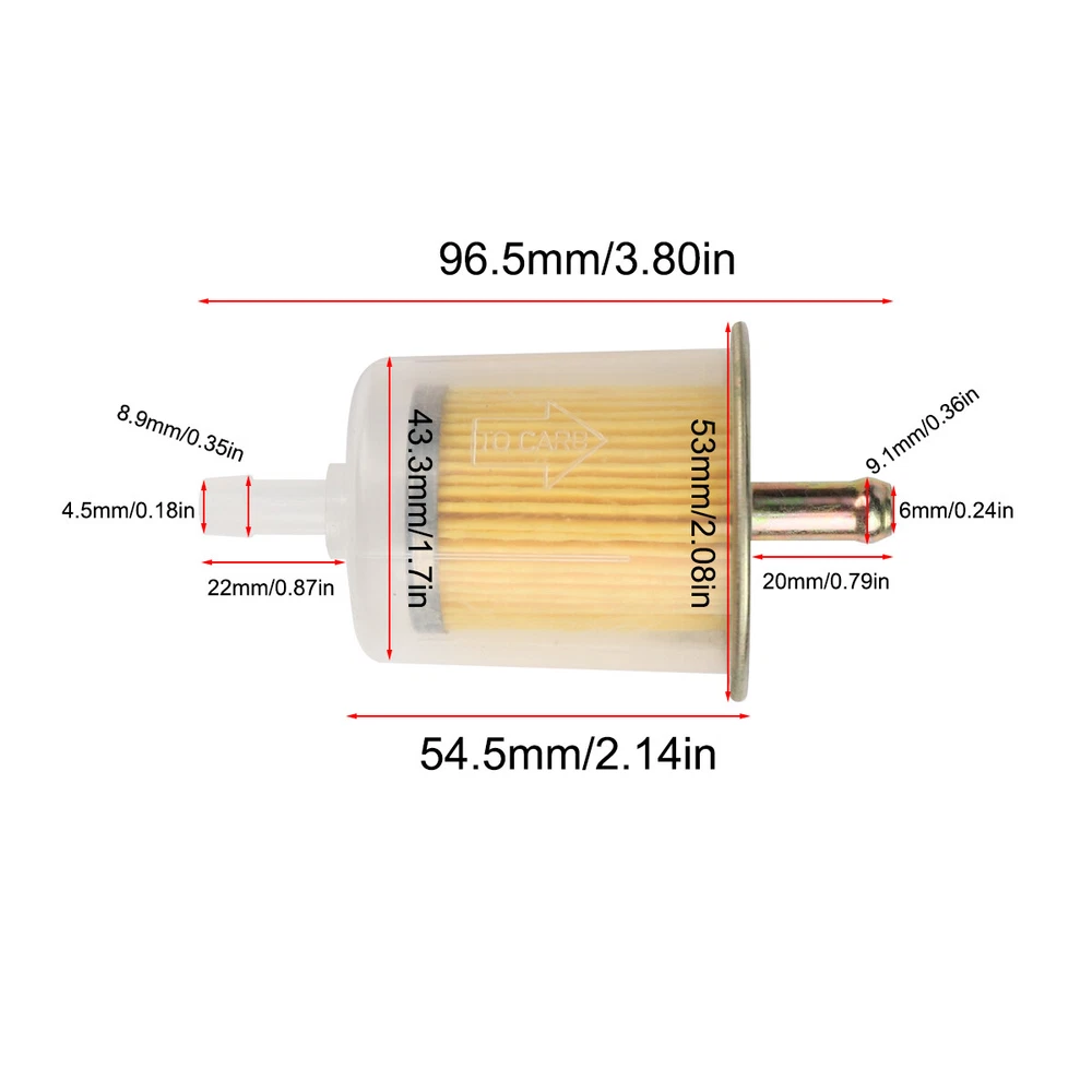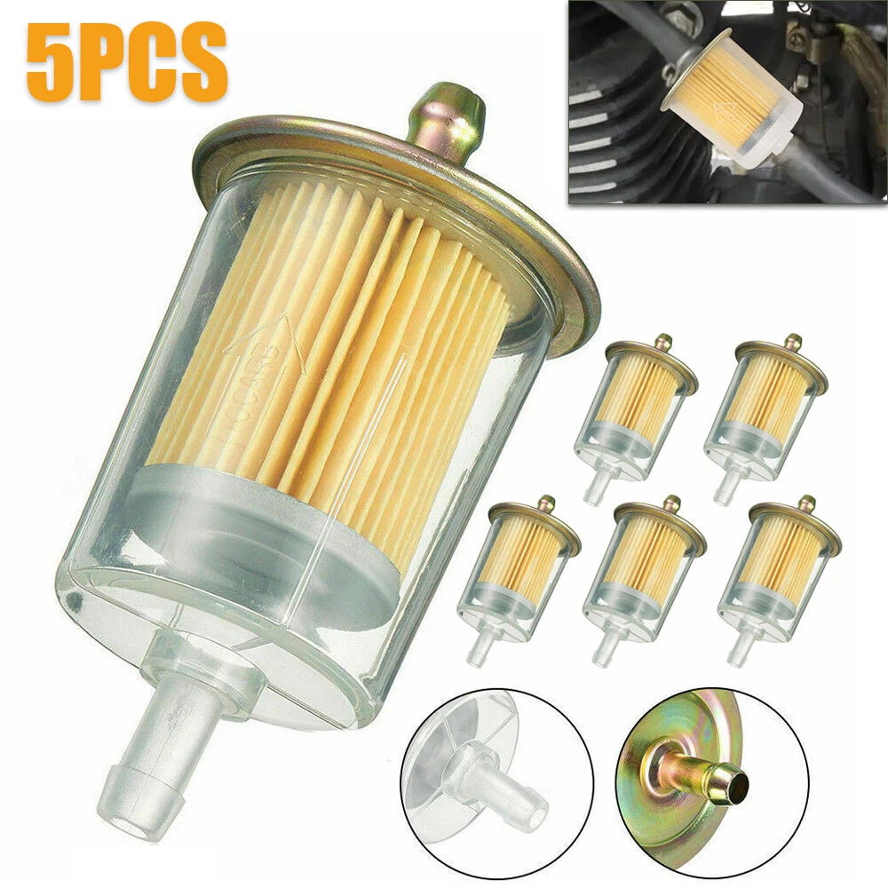 5pcs 5/16" Fuel Filters Industrial Universal Motorcycle RVs Inline Gas Fuel Line Item Description 5pcs 5/16"Fuel Filter Features : - Brand new and high quality. - Innovative design universal style. - A perfect replacement for your old or broken one. - Application:5/16" Fuel Line - 5/16" Fitting Or Connector At Each End. - Clear plastic shell with orange interior filter with metal brass end cap. Fitment: Universal fuel filter can be used for tractors,cars, trucks, motorcycles, RV's and any gas powered engine Specification: Product Name : Motorcycle Filter Material: Shell - Clear Plastic End Caps - Metal Brass Size: 99mm x 52mm Package included: 5pcs 5/16"Fuel Filter Note: 1.We provide clear pictures, measurements where possible. Please check as much as possible to make sure the item is the one that you need. 2. Please allow 0.5-1 inch difference due to manual measurement.(1 inch=2.54cm) 3. Instruction is not included. Professional Installation Is Highly Recommended. Detail Images Shipment 1.We ship to your eBay or Paypal address. Please make sure your eBay and Paypal address is correct before you pay. 2.Items will be shipped within 1-3 business day when we received payment. 3.Delivery time depends on destination and other factors; 4.International buyers please note: a.Import duties, taxes and charges are not included in the item price or shipping charges. These charges are buyer's responsibility. We will try our best to reduce the risk of the custom duties. b.Please check with your country's customs office to determine what these additional costs will be prior to buying. Payment 1.We accept PayPal only. 2.All major credit cards are accepted through secure payment processor PayPal. 3.Payment must be received within 7 business days of auction closing. 4.We ship to your eBay address. Please make sure your eBay address is correct before you pay. Return & Refund Customer satisfaction is our first priority. We accept return within 30 days after delivery. Buyer is responsible for return shipping and insurance cost. Please email first before returning. We will return the money to you after got the return item(s). We can not refund to you if any broken or damaged of your return item. Please ensure its safety. Feedback Your feedback is very important to us. If you can't leave us a "5-Star" rating and a positive feedback, please contact us first prior before leaving feedback. We are eager to work with our customers. We believe in communication. Give us a call or send us an email, we will make things right for our buyers. Positive feedback for our buyers will be left automatically by eBay Seller Manager Pro.