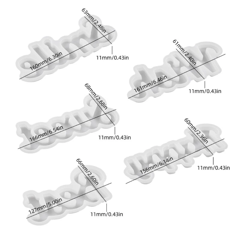 Features: Package contains: 5Pcs Blessing Words Resin Silicone Mould, including Sweet Resin Silicone Mould, Happy Resin Silicone Mould, Best Resin Silicone Mould and more. These greeting words resin silicone molds are widely used for crafting soap, chocolate, candy, desserts, fondant decoration, Christmas pendant, letter sign decoration, decoration, or for epoxy resin. Crafted from silicone. Soft and flexible, good durability, easy to use. Dishwashers, oven and fridges safe, not easy deformed. Work great as epoxy resin silicone mould, silicone mould, chocolate fondant silicone molds. For epoxy resin project, you can add various embellishments, such as essential oil, dry flower, sequins, rope, resin color and other crafting supply you like. Could be used with concrete, cement, gypsum, clay, epoxy resin. Great for crafting Christmas party decoration, Christmas hanging decoration, indoor and outdoor decorations, table decoration, birthday present, Wedding present. Specifications: Color: White Component: Silicone Sweet Mould Size: Approximately. 68x166x11mm/2.68x6.54x0.43in Happy Mould Size: Approximately. 60x156x11mm/2.36x6.14x0.43in Best Mould Size: Approximately. 66x127x11mm/2.6x5x0.43in Weight: Approximately. 129grams Package Includes: 5Pieces Blessing Words Shaped Silicone Mould note: 1.Please allow 0-1cm error due to manual measurement. Make sure you donot mind before bid. 2.Due to difference between different monitors, the picture may not reflect the actual color
