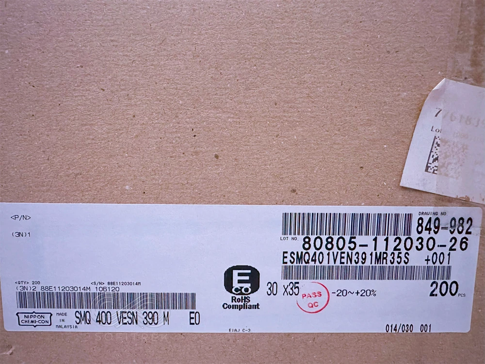Store Seller Profile Feedbacks Contact Capacitors Aluminum Electrolytic Capacitors Aluminum Electrolytic Capacitors - Snap In close 5X ESMQ401VSN391MR35S Chemi-Con Nippon SMQ 390uF 400V 30x35 Aluminum Electrolytic Capacitor Snap-In 2000h 85C Ready to Ship Ask a Question 30-Day Return Description Specifications Shipping & Return Policy Disclaimer 5 Units of ESMQ401VSN391MR35S Chemi-Con Nippon SMQ 390uF 400V 30x35 Aluminum Electrolytic Capacitor Snap-In 2000h 85C Specification Manufacturer NIPPON CHEMI-CON CORP Capacitance 390 µF Capacitor Type ALUMINUM ELECTROLYTIC CAPACITOR Diameter 30 mm Dielectric Material ALUMINUM (WET) Leakage Current 1.1849 mA Length 35 mm Mounting Feature THROUGH HOLE MOUNT Negative Tolerance 20% Number of Pins 3 Operating Temperature-Max 85 °C Package Shape CYLINDRICAL PACKAGE Package Style Snap-in Polarity POLARIZED Positive Tolerance 20% Rated (DC) Voltage (URdc) 400 V Ripple Current 2130 mA Tan Delta 0.15 Terminal Finish Matte Tin (Sn) Terminal Pitch 10 mm Terminal Shape SNAP-IN Shipping Policy Our go-to options for small to medium items are USPS Ground Advantage and USPS Priority Mail, known for their reliable tracking and peace of mind. Smaller items might qualify for USPS First Class Mail. Contact us to discuss this option before purchasing. Note: This method is less recommended due to the potential for delays. Return Policy We offer a 30-day return policy, no questions asked. If you choose to provide a reason for the return, it will assist us in improving and fix the issue. Packaging Our items are packaged according to their needs—some in ESD bags with pins secured in protective sponge, others in foam-enclosed boxes. For larger quantities, options include broken tubes for transistors or cartons. We welcome your suggestions for packaging preferences. Sofitrek Product Disclaimer Nature of Goods: All products offered by Sofitrek are surplus items. These products may originate from older batches, series, or have earlier date codes compared to those currently provided by the original manufacturers or their authorized dealers. Non-Affiliation: Sofitrek operates independently and is not an authorized distributor, nor is it affiliated or associated with the manufacturers of the products sold. Consequently, Sofitrek does not represent the manufacturers of these products in any capacity. Exclusion of Manufacturer's Warranty: Since Sofitrek is not an authorized distributor, the original manufacturer's warranties are explicitly not applicable to the products sold. This includes any implied warranties of merchantability or fitness for a particular purpose. Firmware and Software: Some products may include pre-installed firmware or software. However, Sofitrek does not guarantee the presence, compatibility, or the revision level of such firmware or software as suitable for your specific application. Furthermore, Sofitrek expressly disclaims any representation regarding your right or ability to download, obtain, or install any firmware or software for the products from any source, including the original manufacturers or their distributors. Limitation of Liability: Sofitrek shall not be held liable for any form of damages—direct, indirect, incidental, consequential, or otherwise—arising from the use, misuse, or inability to use any product sold. This includes, but is not limited to, damages for loss of profits, goodwill, use, data, or other intangible losses. The buyer assumes all responsibility for the safe and lawful use of the product and agrees to indemnify and hold harmless Sofitrek against any claims, liabilities, or expenses related to the product's use. Compliance and Responsibility: The buyer is solely responsible for adhering to all terms of any End-User License Agreement or similar documentation related to the products, particularly concerning the obtaining, installation, and use of firmware or software. Severability: If any provision of this disclaimer is found to be invalid or unenforceable, the remaining provisions shall continue to be in full force and effect. By purchasing from Sofitrek, the buyer acknowledges having read, understood, and agreed to this disclaimer in its entirety. Links eBay Shop Feedbacks Contact Us © Sofitrek