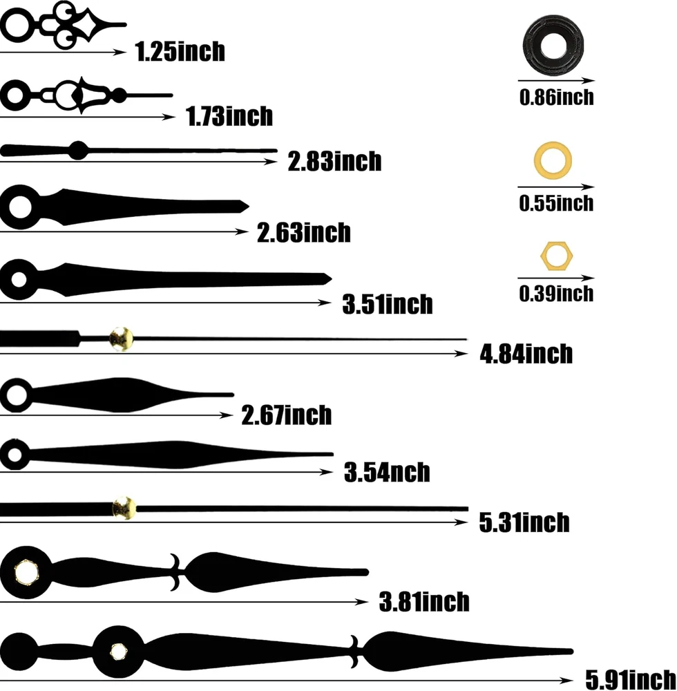 Store New Arrivals Add to Favorite View Feedback Contact 5Pcs High Torque Quartz Clock Movement Mechanism Replacement Clock Kit with 12 Different Pairs of Hands Clock for DIY Handicrafts Repair Clock Parts Shaft Lengths 13Mm 18Mm Description Item Weight 7.8 ounces Batteries Required? No Batteries Included? No Package Dimensions 6.38 x 4.8 x 1.57 inches Manufacturer PARAOR Nice DIY clock repair set: This battery clock replacement mechanism set comes with 5 quartz clock movements, 12 pairs of clock hands, 5 gaskets and 5 hang hooks, and the enough quantity to use and replace, provides a variety of styles to choose from Size details: the total shaft lengths are approx 13 mm/ 0.51 inches, 18 mm/ 0.7 inches and the thread lengths are approx 5mm/ 0.2 inches, 11mm/ 0.43 inches. Jump second movement is suitable for 2 mm/ 0.079 inches, 11 mm/ 0.43 inches thickness of clock panel; Suitable size is for your easy use and storage 12 Different styles of hands: this clock kit comes with 12 pairs of clock hands in different styles and length for your options, so it is great for clock creations and repairs while providing a decorative effect Practical: the quartz DIY wall clock mobile mechanism has nice precision and is equipped with sweeping motion, which can provide the watchmaker with reliability and keep quiet when you are reading or sleeping Wide Application: These clock repair replacement part kit can be applied in bedroom, living room, office, classroom, restaurant, etc, fit for cross-stitch, three-dimensional embroidery craft clock, quartz wall clock and so on. Product Description ABOUT US We offer the best prices around on high quality products. Our E-store includes media such as books, movies, music and games while offering electronics, toys, sporting apparel, clothing, tools, general home, garden items and more. SHIPPING We are always working hard to ensure your package arrives as soon as possible. Please understand that some factors like weather, high postal traffic, and the performance of shipping companies are outside of our control. We offer free shipping to the lower 48 states and ship within 2 business days of payment, usually sooner. We do not accept P.O. Boxes. Please provide a physical address. RETURNS We offer a 30-Day Return Policy on items which you are not completely satisfied with. You have the option for a full-refund or an exchange of the item. No returns are available on items shipped outside of the USA. PAYMENT We accept PayPal. CONTACT US This page content is yet to come Please ad us to your favorite seller and visit again later Thank You CUSTOMER SATISFACTION We try our very best to make sure every customer is completely satisfied. If there's a problem, message us! We're happy to help.