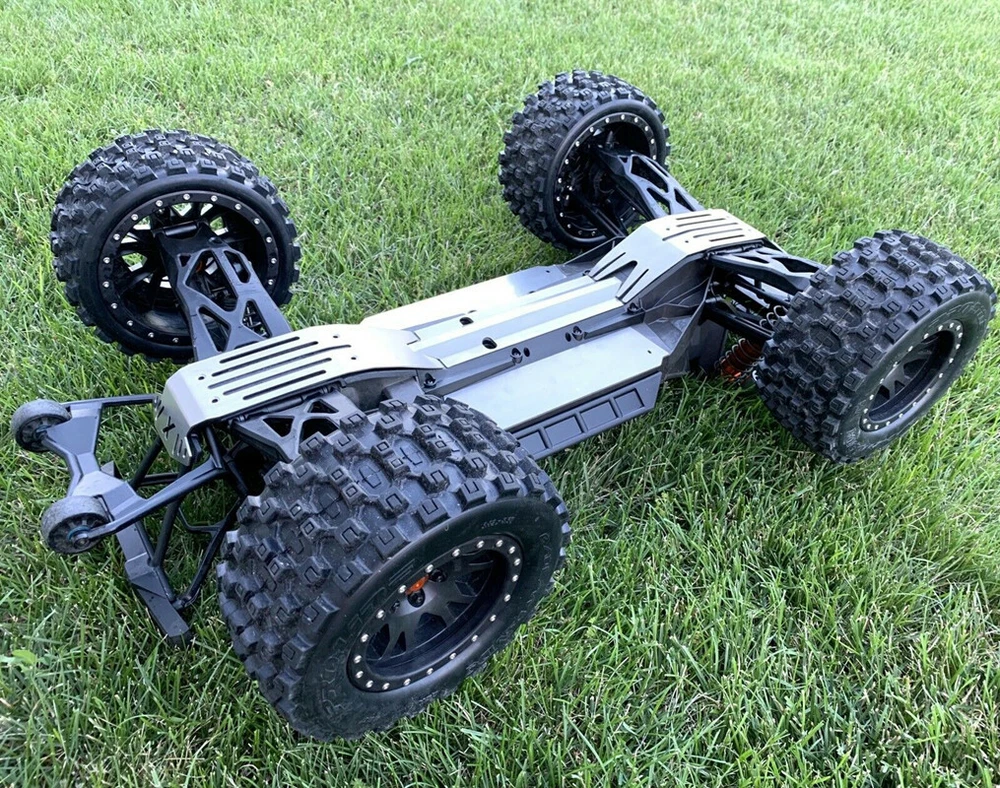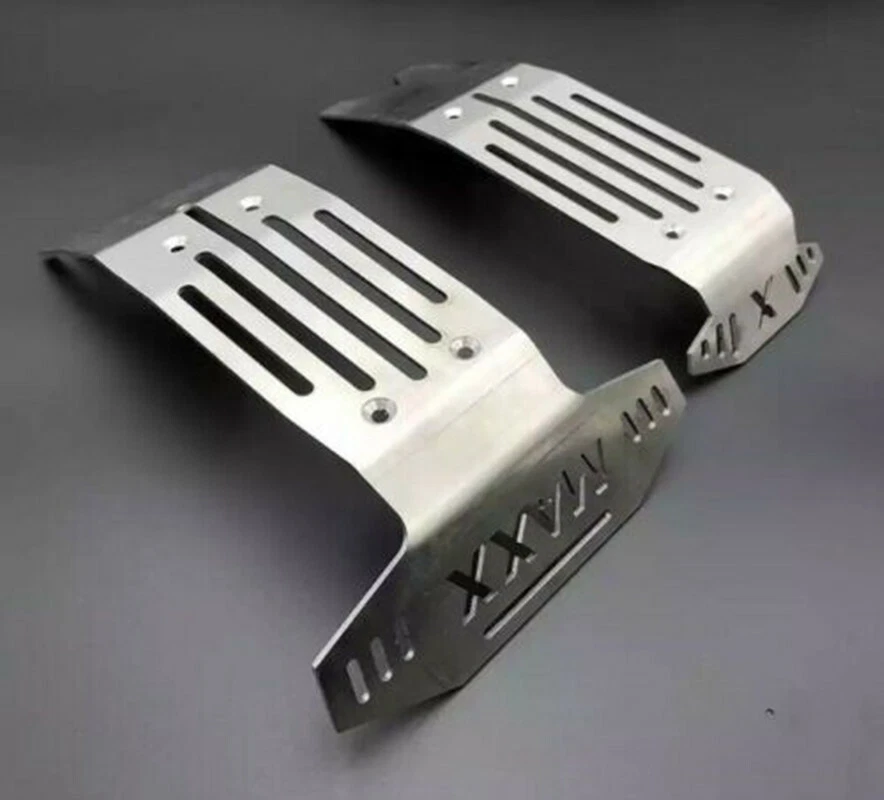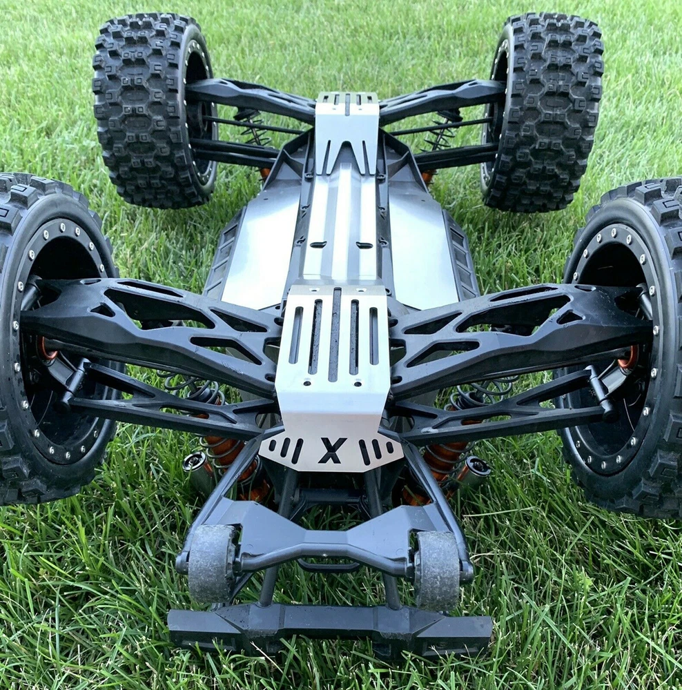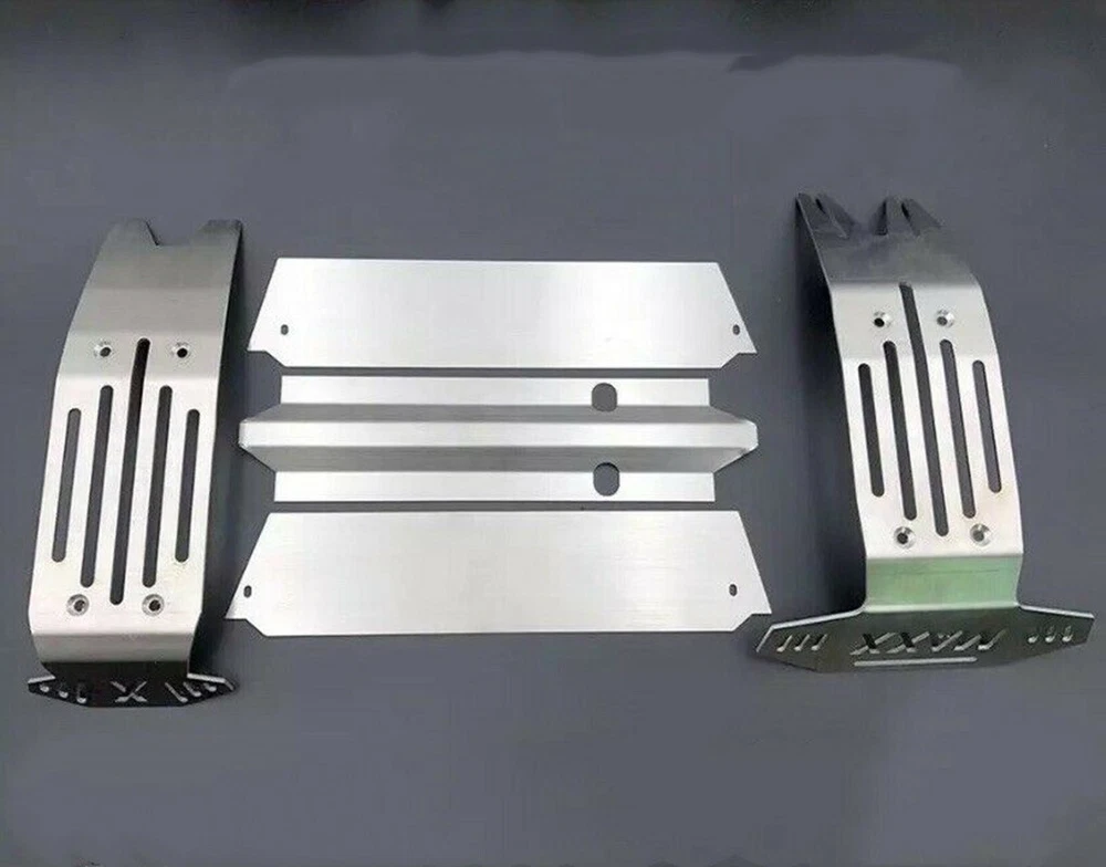 Description: For Traxxas X-Maxx XMAXX Stainless Steel Chassis Armor Complete 5pc Skid Plate Set 5-PC Stainless Steel Set: Provides ultimate protection underneath front & rear differentials, driveshaft, electronics & battery compartments Requires the following hardware (not included): - 4) M3x25 button heads - 8) M4x20 flat counter sink - Double sided tape also required for center section (under driveshaft) and below battery compartments SKU; WYKCHJ005W