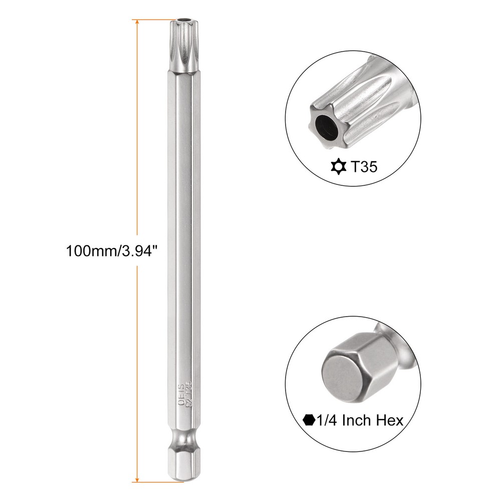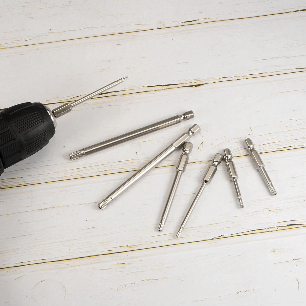 Document Security Torx screws are often called Pin Torx due to the additional pin at the center of the six-point star socket head. This center pin makes it impossible to use a standard Torx screwdriver, making this type of fastening tamper-proof.The security torx bit is made of S2 alloy steel, the hardness is as high as HRC60±, the high-temperature quenching treatment is durable, the surface is nickel-plated, and has good anti-rust and anti-corrosion functions.Security bits and drivers are used with security screws to create secure fastener assemblies. They can be used anywhere that tampering might be suspected. Such as repairs, interiors, computers, electronics, etc.The 1/4" hex handle can be used with electric screwdrivers, hand screwdrivers, power drills, combination utility tools, and any standard drill bit.Notice: Do not turn screws that do not match the size to prevent damage to the screw and bit. 5Pcs Security Torx Bit 1/4" Hex Shank 4" Long Drill Bit T35 Torx Star S2 Steel Security Torx screws are often called Pin Torx due to the additional pin at the center of the six-point star socket head. This center pin makes it impossible to use a standard Torx screwdriver, making this type of fastening tamper-proof. The security torx bit is made of S2 alloy steel, the hardness is as high as HRC60±, the high-temperature quenching treatment is durable, the surface is nickel-plated, and has good anti-rust and anti-corrosion functions. Security bits and drivers are used with security screws to create secure fastener assemblies. They can be used anywhere that tampering might be suspected. Such as repairs, interiors, computers, electronics, etc. The 1/4" hex handle can be used with electric screwdrivers, hand screwdrivers, power drills, combination utility tools, and any standard drill bit. Notice: Do not turn screws that do not match the size to prevent damage to the screw and bit. Hot Item Payment 1.We accept eBay payment . 2.Payment must be received within 7 business days of auction closing. Shipping 1.We ship to your eBay or Paypal address. Please make sure your eBay and Paypal address is correct before you pay. 2.Items will be shipped within 1-3 business day when we received payment. 3.Delivery time depends on destination and other factors. Description Policy 5Pcs Security Torx Bit 1/4" Hex Shank 4" Long Drill Bit T35 Torx Star S2 Steel Security Torx screws are often called Pin Torx due to the additional pin at the center of the six-point star socket head. This center pin makes it impossible to use a standard Torx screwdriver, making this type of fastening tamper-proof. The security torx bit is made of S2 alloy steel, the hardness is as high as HRC60±, the high-temperature quenching treatment is durable, the surface is nickel-plated, and has good anti-rust and anti-corrosion functions. Security bits and drivers are used with security screws to create secure fastener assemblies. They can be used anywhere that tampering might be suspected. Such as repairs, interiors, computers, electronics, etc. The 1/4" hex handle can be used with electric screwdrivers, hand screwdrivers, power drills, combination utility tools, and any standard drill bit. Notice: Do not turn screws that do not match the size to prevent damage to the screw and bit. Hot Item Payment 1.We accept eBay payment . 2.Payment must be received within 7 business days of auction closing. Shipping 1.We ship to your eBay or Paypal address. Please make sure your eBay and Paypal address is correct before you pay. 2.Items will be shipped within 1-3 business day when we received payment. 3.Delivery time depends on destination and other factors.