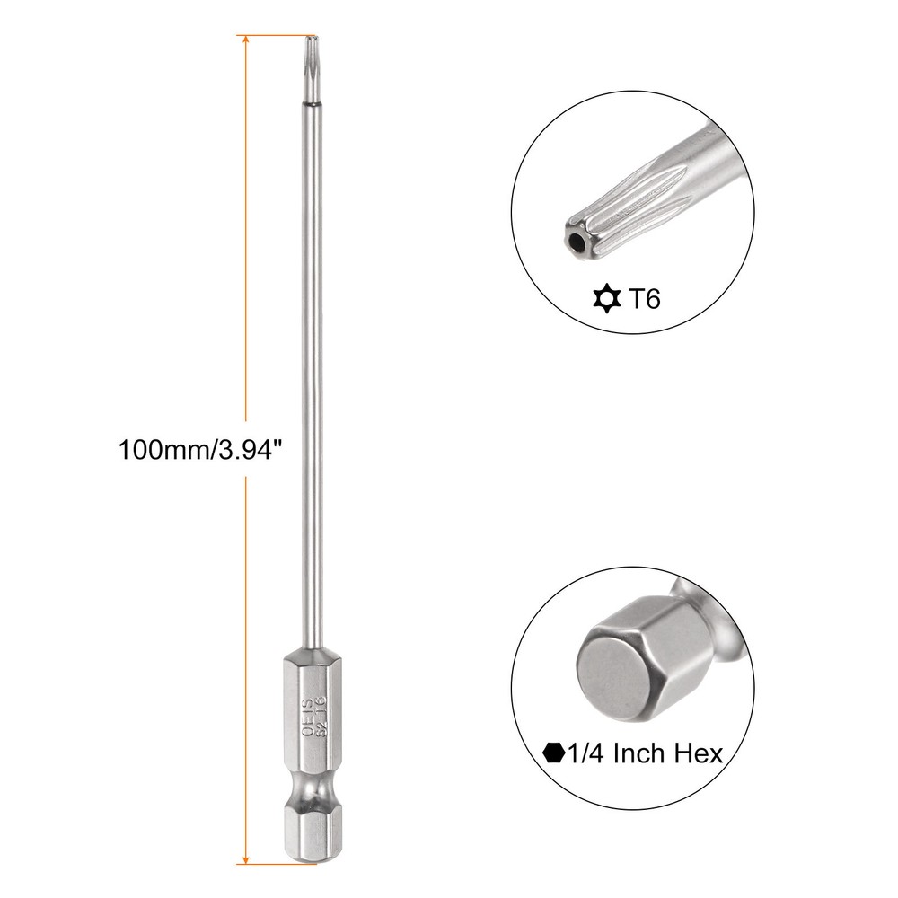 Document Security Torx screws are often called Pin Torx due to the additional pin at the center of the six-point star socket head. This center pin makes it impossible to use a standard Torx screwdriver, making this type of fastening tamper-proof.The security torx bit is made of S2 alloy steel, the hardness is as high as HRC60±, the high-temperature quenching treatment is durable, the surface is nickel-plated, and has good anti-rust and anti-corrosion functions.Security bits and drivers are used with security screws to create secure fastener assemblies. They can be used anywhere that tampering might be suspected. Such as repairs, interiors, computers, electronics, etc.The 1/4" hex handle can be used with electric screwdrivers, hand screwdrivers, power drills, combination utility tools, and any standard drill bit.Notice: Do not turn screws that do not match the size to prevent damage to the screw and bit. 5Pcs Security Torx Bit 1/4" Hex Shank 4" Long Drill Bit T6 Torx Star S2 Steel Security Torx screws are often called Pin Torx due to the additional pin at the center of the six-point star socket head. This center pin makes it impossible to use a standard Torx screwdriver, making this type of fastening tamper-proof. The security torx bit is made of S2 alloy steel, the hardness is as high as HRC60±, the high-temperature quenching treatment is durable, the surface is nickel-plated, and has good anti-rust and anti-corrosion functions. Security bits and drivers are used with security screws to create secure fastener assemblies. They can be used anywhere that tampering might be suspected. Such as repairs, interiors, computers, electronics, etc. The 1/4" hex handle can be used with electric screwdrivers, hand screwdrivers, power drills, combination utility tools, and any standard drill bit. Notice: Do not turn screws that do not match the size to prevent damage to the screw and bit. Hot Item Payment 1.We accept eBay payment . 2.Payment must be received within 7 business days of auction closing. Shipping 1.We ship to your eBay or Paypal address. Please make sure your eBay and Paypal address is correct before you pay. 2.Items will be shipped within 1-3 business day when we received payment. 3.Delivery time depends on destination and other factors. Description Policy 5Pcs Security Torx Bit 1/4" Hex Shank 4" Long Drill Bit T6 Torx Star S2 Steel Security Torx screws are often called Pin Torx due to the additional pin at the center of the six-point star socket head. This center pin makes it impossible to use a standard Torx screwdriver, making this type of fastening tamper-proof. The security torx bit is made of S2 alloy steel, the hardness is as high as HRC60±, the high-temperature quenching treatment is durable, the surface is nickel-plated, and has good anti-rust and anti-corrosion functions. Security bits and drivers are used with security screws to create secure fastener assemblies. They can be used anywhere that tampering might be suspected. Such as repairs, interiors, computers, electronics, etc. The 1/4" hex handle can be used with electric screwdrivers, hand screwdrivers, power drills, combination utility tools, and any standard drill bit. Notice: Do not turn screws that do not match the size to prevent damage to the screw and bit. Hot Item Payment 1.We accept eBay payment . 2.Payment must be received within 7 business days of auction closing. Shipping 1.We ship to your eBay or Paypal address. Please make sure your eBay and Paypal address is correct before you pay. 2.Items will be shipped within 1-3 business day when we received payment. 3.Delivery time depends on destination and other factors.