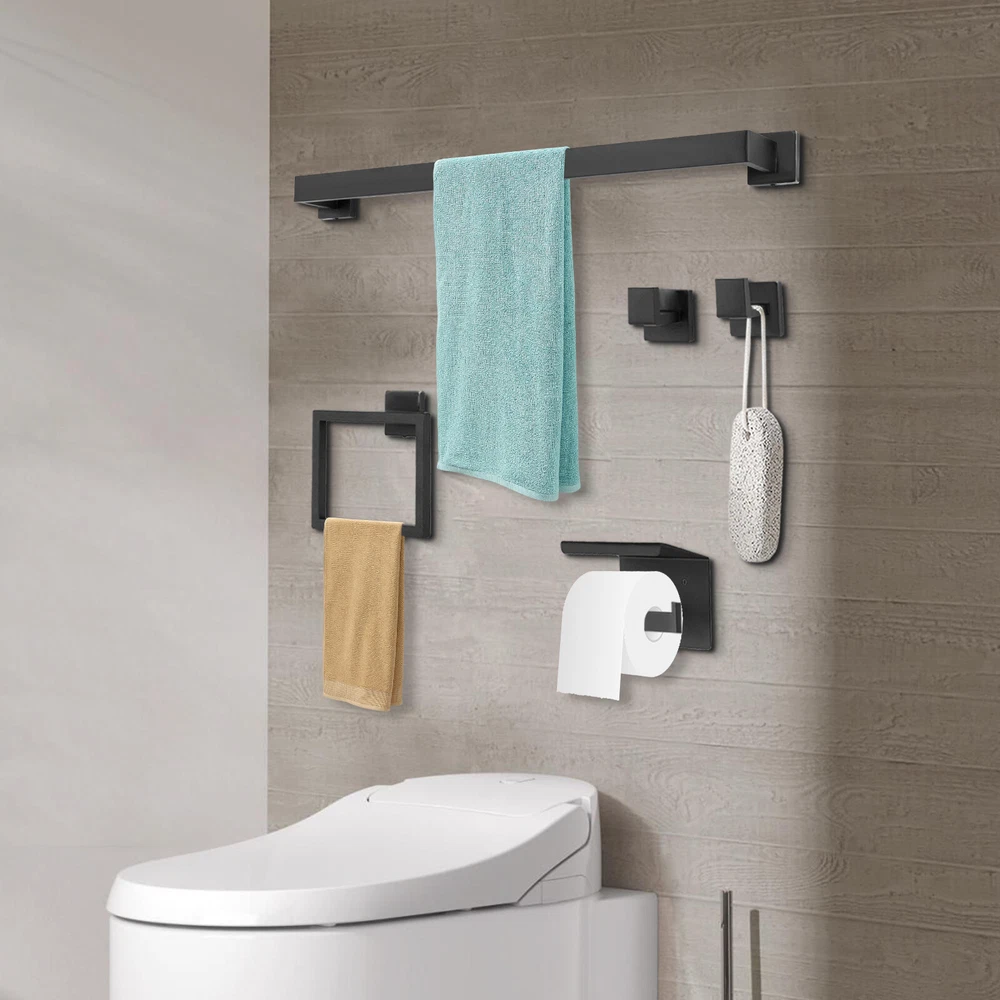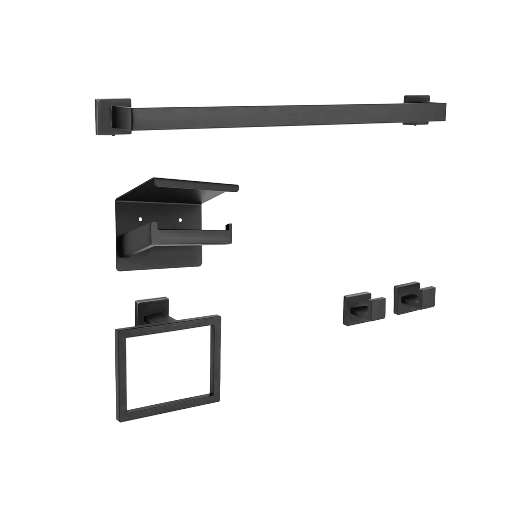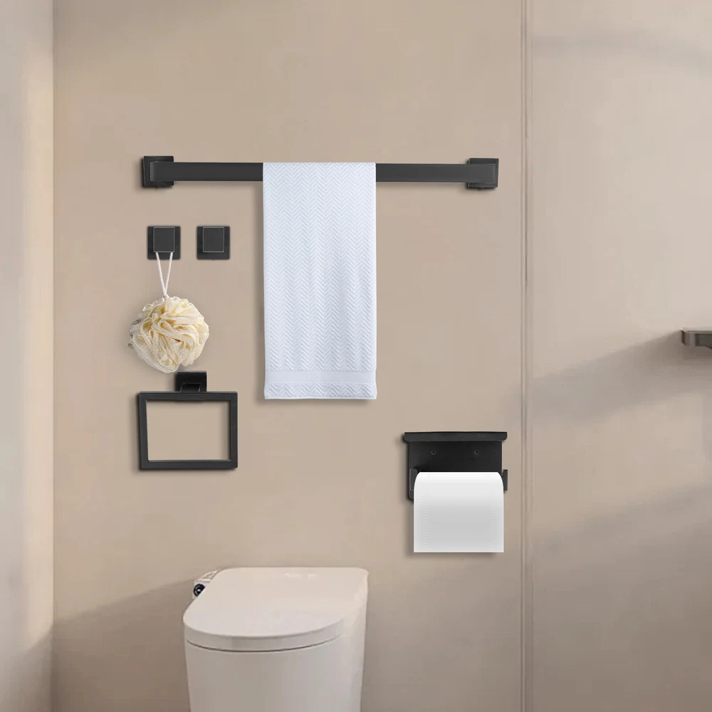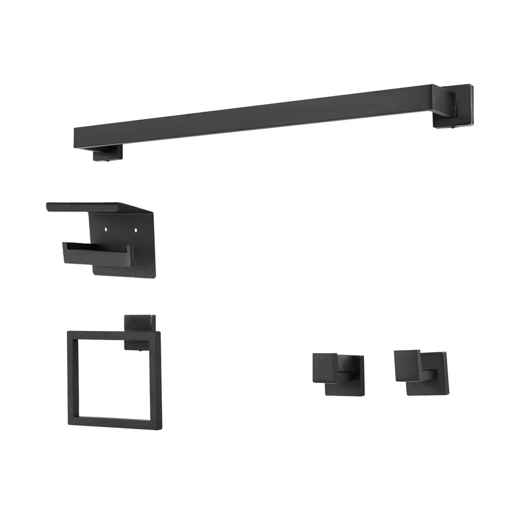 This sleek black stainless steel bathroom set is a game-changer! The modern design looks ultra-stylish, and the 5-piece set has everything you need—towel bar, hooks, ring, and toilet paper holder. Installation was straightforward with the included diagram, and the sturdy 201 stainless steel feels premium. The matte black finish resists fingerprints and matches any decor perfectly. Super functional while adding a high-end touch to my bathroom!