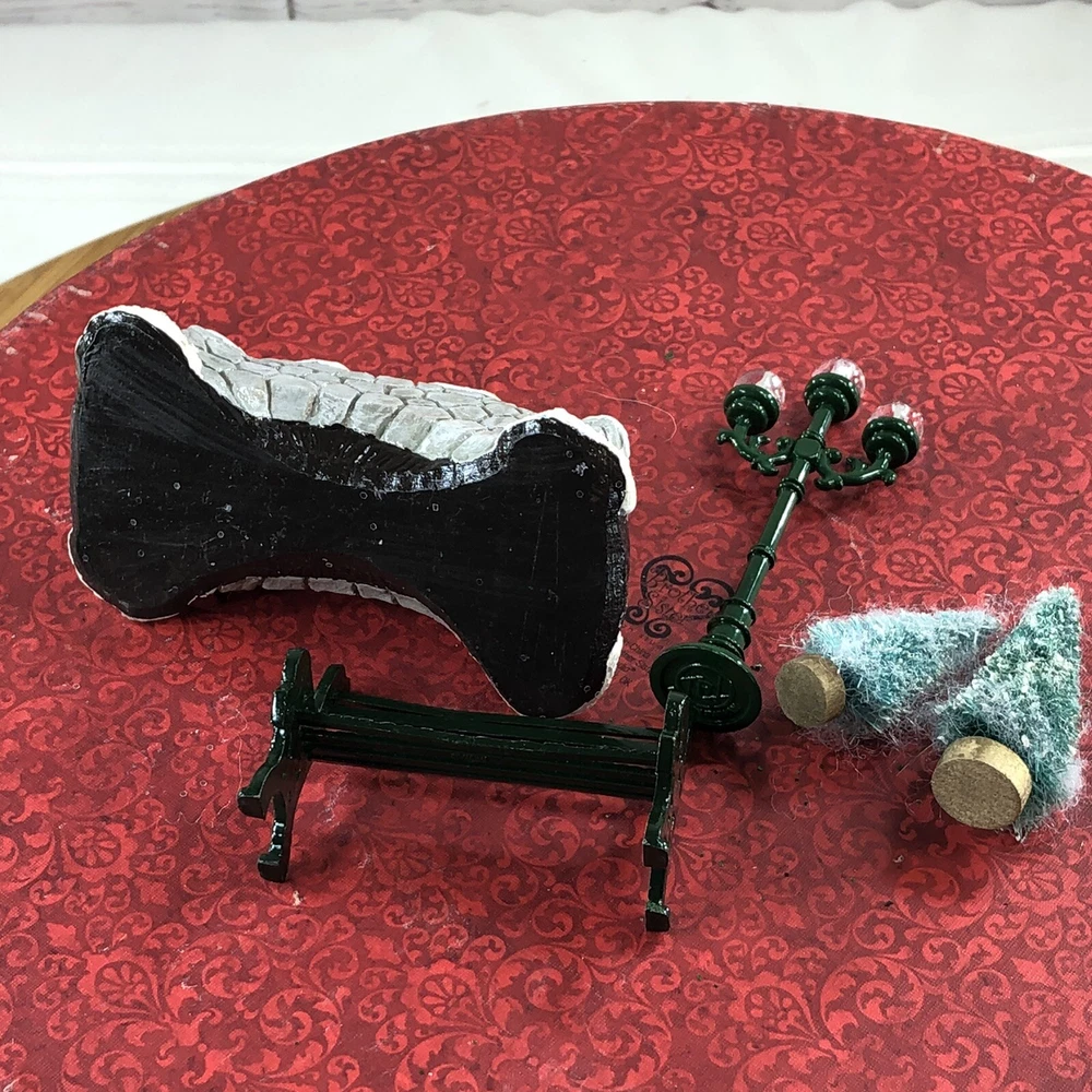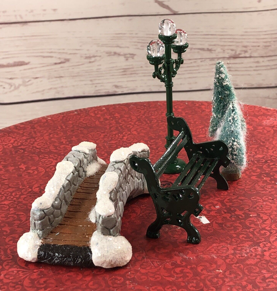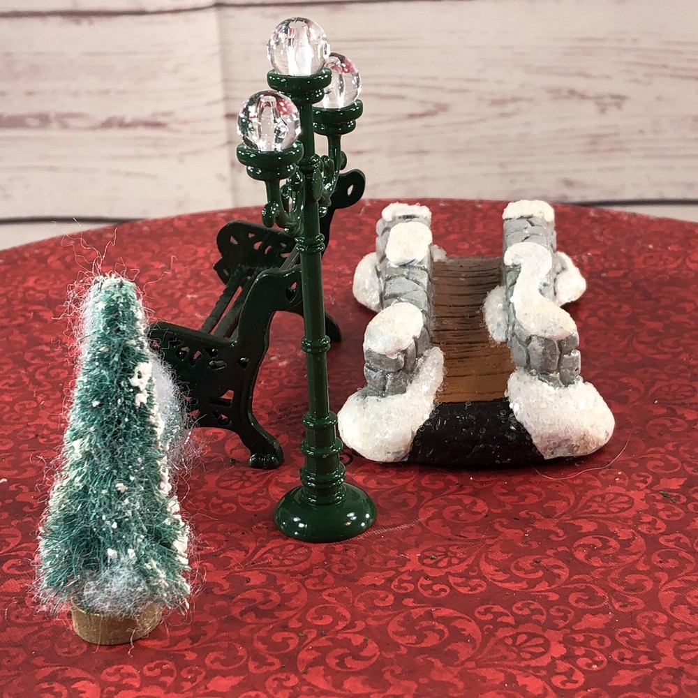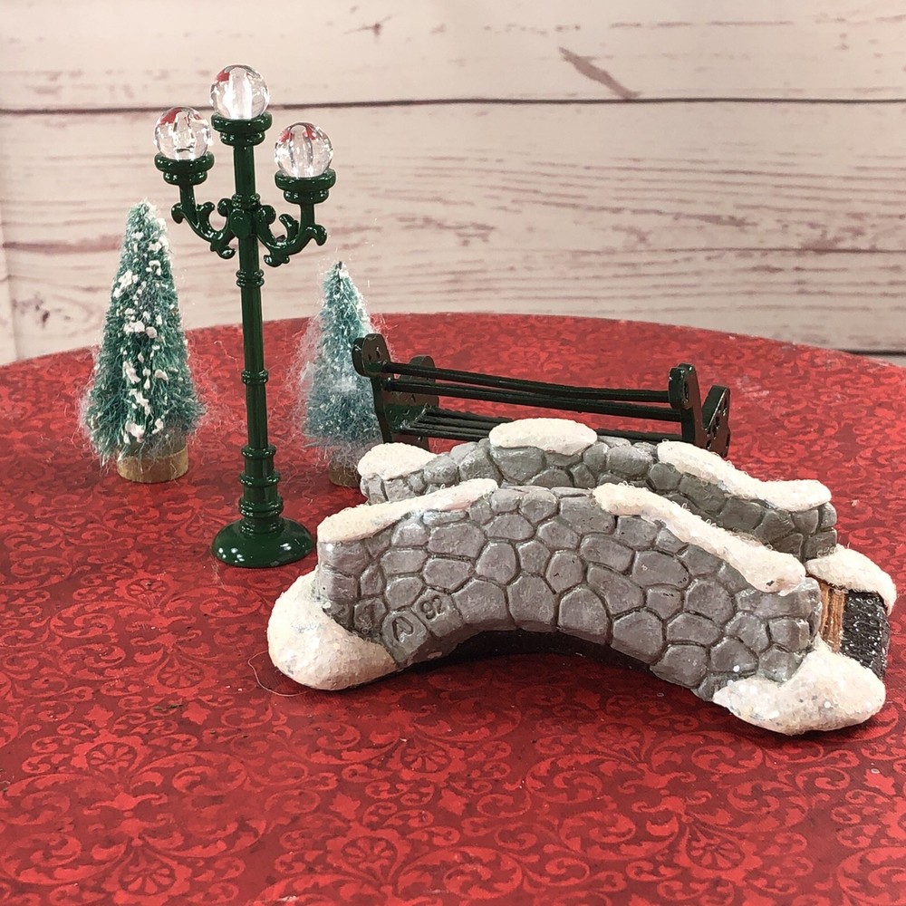 Lot of 5 Christmas Village Accent pieces Resin foot Bridge Metal Park Bench 2 flock Christmas Trees Metal Street Lamp Resin & Mix material nice as shown Many Many other Christmas Ornaments and Village Houses Listed! All preowned clothing have been laundried / or steam cleaned per ebay policies all preowned clothing items have been laundried or steamed cleaned pre Ebay policies
