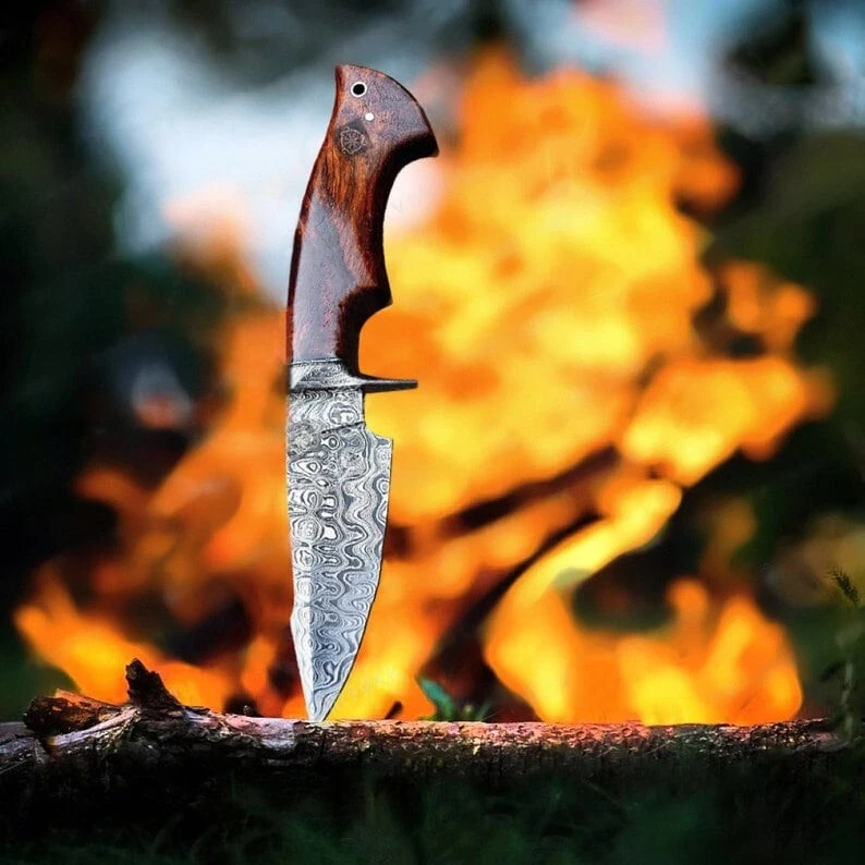 5 Piece Hunting Knife Damascus Steel Full Tang Fixed Blade Camping Knife Looking For An Unusual Hand Crafted Hunting Knife? Here It Is! A Compact Outdoors Hunting Knife, Classic Bowie Hunting Knife Custom Hand Forged High Quality Damascus Steel Hunting Knife , Easy-To-Carry, Beautiful Hunting Knife, And Made Of Powerful Damascus Steel. We Take Great Pride In Creating By Hand, Our Hunting Knife Crafted With Damascus Steel Wooden Handle The Highest Quality Materials. Our Bowie Hunting Knife Is Also Designed To Be Used As An All-Around Tool For Camping, Hunting, Fishing, And Other Outdoor Activities. Crafted With Precision And Designed For Durability, Best Hunting Knife. This Hunting Knife Is The Perfect Companion For Any Hunting, Camping, Or Survival Adventure. Here's Why You'll Love It: Premium Quality Innovative, Traditional, Precise Ergonomic Handle, With Classic Look Easy To Clean, Very Hygienic Custom Handmade Stainless Steel Blade User-friendliness Best Gift For Your Love Once & Hunter Friends. High Quality Hunting Knife Which Can Be Used For Camping. Damascus Steel Hunting Knife, Wood Handle, With Leather Sheath. PRODUCT SPECIFICATION Blade Length: 5.0 (Inches) Handle Length: 4.7 (Inches) Overall Length: 10 (Inches) Handmade Leather Sheath Included High Quality Materials for Durability Fully Handmade Item, No Pre-Bought Parts RESTRICTION You Must Be Over 18 Years Of Age To Purchase These Products, The Buyer is Fully Responsible For Local Laws And Regulations Concerning the Purchase And Possession Of Knives, Swords, And Other Cutlery Tools, By Making A Purchase You Are Confirming Our Age Policy. HAVE A SAFE SHOPPING PLEASE LEAVE A HONEST REVIEW