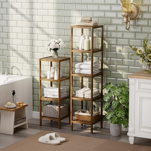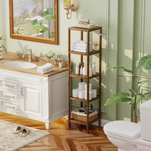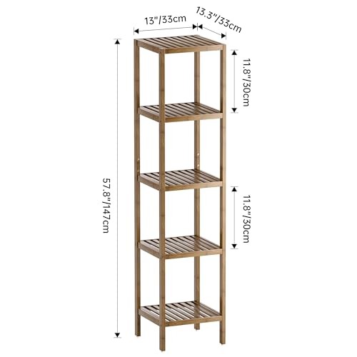 Return Policy Fast Delivery Trusted seller Bathroom Storage Shelf, 5-Tier Bamboo Rack Organizer, Multifunctional Shelving Unit for Living Room Bedroom Kitchen (Walnut) Product Description ★ GREAT FOR SMALL SPACE STORAGE: With 5 11.8" tall open shelves, this space-saving bamboo shelf offers plenty of storage but only takes up 13" x 13.4" of floor space, perfect for narrow spaces or corners of room to store odds and ends ★ HIGHLY VERSATILE & PRACTICAL: This nice utility storage shelf is great for organizing towels, toiletries, bags, box, baskets, or small appliances, perfect use it as a bathroom rack, balcony flower plant stand, kitchen rack, pantry shelf, bookshelf, garage shelving and more ★ ELEGANT, PREMIUM QUALITY & BUILD TO LAST: made of 100% well-sanded solid bamboo wood and covered with an eco-friendly protective coat of lacquer, very smooth finish, minimalist style but large capacity match great with your bathroom décor ★ EASY TO ASSEMBLY & STURDY: With included illustration and tools, just follow the instructions and tighten the screws will set it up; All solid bamboo parts are fastened by galvanized screws, making this toilet rack very stable and wobble-free, each shelf holds up to 33 Lbs. ★ SAFE DESIGN & NON-SLIP: Sunken screw holes, smooth surface, and round corners will cause no harm to your belongings; 4 non-skid rubber stoppers securely screwed on the bottom, prevent tiles from scratching and stay firmly on the floor, make your bathroom accessories and rack safer Shipping Returns Payment Shipping Shipping is FREE to all addresses other than APO/PO boxes in the lower 48 states. All our stock ships from US-based warehouses. Shipped via USPS or UPS (depending on location and package weight) Unless stated otherwise, all orders will ship within 24-72 hours of your payment being processed. Check our feedback to see the great reviews of FAST shipping we offer. Returns Seller does not accept returns Payment We currently accept payment via eBay managed payments only. Once payment is cleared, we will dispatch your shipment within 1-3 business days. Please refer to the "Shipping" tab for more information regarding shipping speed to your destination.
