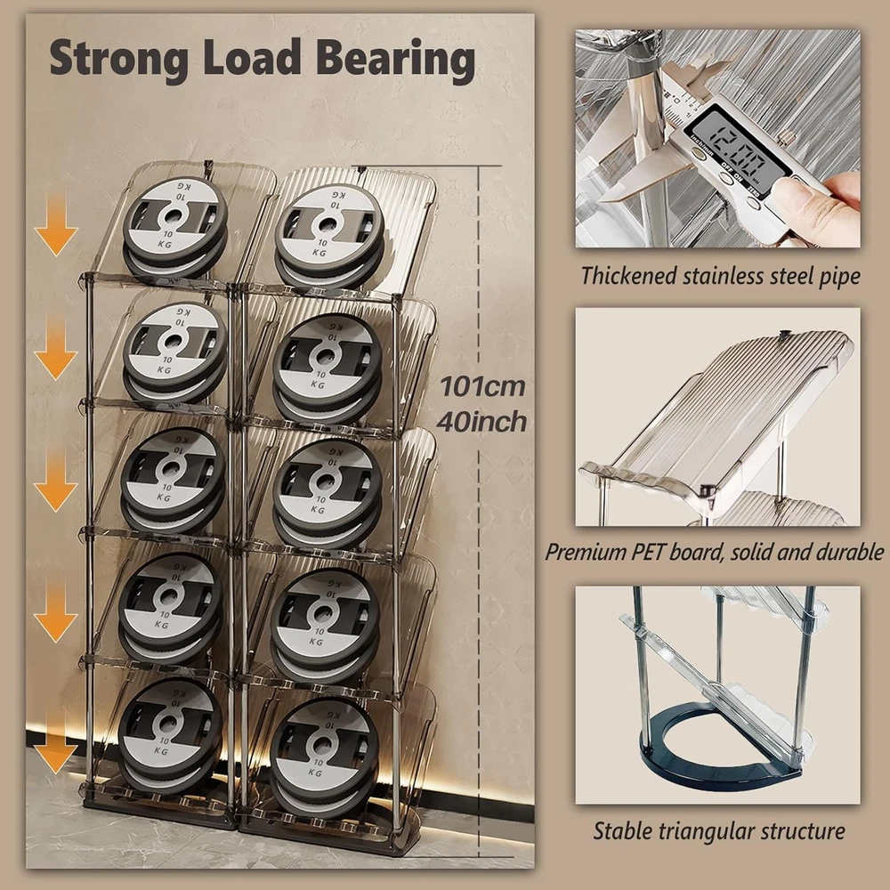 Sloping Narrow Shoe Rack 5 Tiers - Free Standing 5 Tier * 1 Pack, Clear Product Details Brand: Patinao Color: Clear Material: Plastic Recommended Uses For Product: Living Room, Bedroom, Hallway Product Dimensions: 11"D x 8.2"W x 39"H Installation Type: Free Standing Special Feature: Cordless Style: Modern Finish Type: Steel Load Capacity: 220.5 Pounds Number of Shelves: 1 Furniture Finish: Stainless Steel Frame Material: Stainless Steel Assembly Required: Yes Maximum Weight Recommendation: 10 Kilograms Manufacturer: Patinao Item Weight: 4.36 pounds Country of Origin: China The sloping design reduces the footprint of the shoe rack while actually increased the space for storing shoes (increased depth and height), allowing the shoe rack to hold taller and longer shoes. All kinds of shoes can be stored, such as Martin boots, sports shoes, high top shoes, children's shoes, sneaker, slippers, boots, high heels, etc More ergonomic design, makes finding, picking up and placing shoes easier, so that people bend less when picking up or placing shoes, especially for the elderly and kids is very friendly The tilted 45 ° design of the shoe rack panel reduces the footprint by 1/3, allowing for more shoes to storing in a smaller area and improving the utilization of space in your home. This shoe rack can also be placed in many narrow spaces. This shoe rack is very suitable for placing at the entryway, hallway, next to the door, bathroom, living room, and other places Sturdy Material: This shoe rack is made of high-quality PET plastic and stainless steel, which is sturdy and durable, and has strong load-bearing capacity. Compared with other wooden and cloth shoe racks, it has the characteristics of being non deformable and washable The tiers of the shoe rack can be freely spliced and combined. No tools needed to install, easy to install. This shoe rack can also hold books, snacks, paper towels and other daily sundries, a wide range of uses