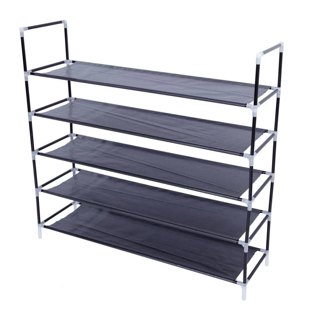 Introductions:A concise, compact and nice-looking shoe rack must be ideal for you to collect your messy shoes and keep your house tidy! I do believe you must be satisfied with this Simple Assembly 5 Tiers Non-woven Fabric Shoe Rack with Handle! Made of highly superior plastic, metal and non-woven fabric material, this shoe rack, after being well assembled, will ensure solid structure and high durability. It is meticulously shaped into 5 tiers, providing sufficient and balanced room for shoes. Just order one!Features: 1. This 5-layer shoe rack is perfect for organizing your messy shoes 2. It helps you easily locate the shoes you are looking for and prevents those time-consuming household hunts for a missing shoe 3. Made of superior materials, it is durable and reliable for Free Shipping Over $49.99* Details 5-Tier Shoe Rack Shoe Storage Organizer Space Saving Stackable Product Description: Introductions: A concise, compact and nice-looking shoe rack must be ideal for you to collect your messy shoes and keep your house tidy! I do believe you must be satisfied with this Simple Assembly 5 Tiers Non-woven Fabric Shoe Rack with Handle! Made of highly superior plastic, metal and non-woven fabric material, this shoe rack, after being well assembled, will ensure solid structure and high durability. It is meticulously shaped into 5 tiers, providing sufficient and balanced room for shoes. Just order one! Features: 1. This 5-layer shoe rack is perfect for organizing your messy shoes 2. It helps you easily locate the shoes you are looking for and prevents those time-consuming household hunts for a missing shoe 3. Made of superior materials, it is durable and reliable for long-term use 4. It is easy to install and clean 5. Featuring a compact body, it will not occupy too much room 6. Built-in handle for convenient carrying Specifications: 1. ColorBlack 2. MaterialStrengthened Metal Pipes, Non-woven Fabrics Tiers, Plastic Connectors 3. Dimensions(39.37 x 11 x 37.4)" / (100 x 28 x 95)cm (L x W x H) 4. Tier Height6.7" / 17cm 5. Assembly RequiredYes 6. Tube Diameter0.59" / 1.5cm 7. Weight2.54 lbs / 1.15 kg Package Includes: 1 x 5 Tiers Shoe Rack Warm Tip: Please confirm the product size before purchasing, to make sure the size of our product is in line with your requirements