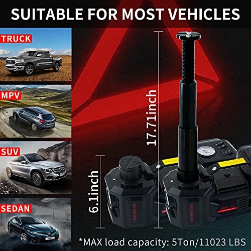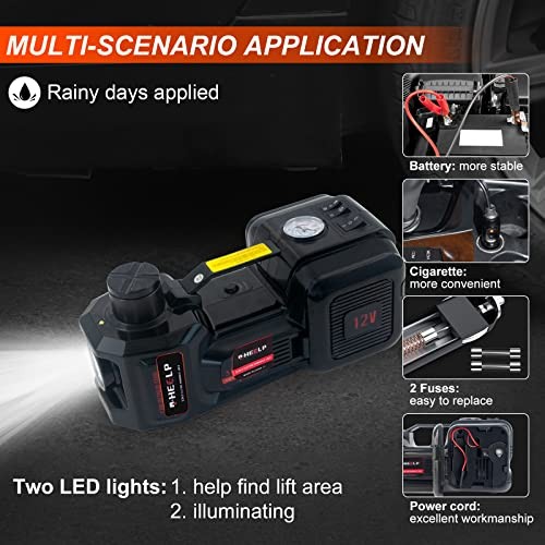 5Ton Electric Car Jack Kit with Impact Wrench & Tire Inflator for Car, SUV, MPV 5Ton Electric Car Jack Kit with Impact Wrench & Tire Inflator for Car, SUV, MPV Electric car jack is hydraulic driven, enabling it to lift vehicles weighing less than 5 tons (11023 lbs) and only takes less than 2 mins to lift to its MAX height (lifting range 6.1-17.7 inch). The high power engine installed in the hydraulic jack nearly matches all the autos, sedan, SUV, MPV, and truck. Easy and quick tire-changing solution to any roadside emergency. Car battery (more stable, recommend) and cigar lighter are two ways of power supply. Equipped with 2 spare fuses. Moreover, put your electric jack in your trunk; you can use it on your motorcycle or some other heavy items. Please make sure you operate carefully on flat ground and the load weight never exceeds its MAX. With a tire inflator pump installed in the electric car jack, there is no need to worry about tire-broken troubles in the middle of nowhere. Equipped with a tire pressure display, you can monitor the tire pressure while pumping. If you are a person who is not used to using an ordinary floor jack and have never changed a flat tire before, you would be amazed at how easy and quick this thing works. This portable jack for truck is applicable whether in your home garage, on a road trip, at a car repair shop, on a farm, or during a halfway emergency. Electric hydraulic jack and the power cable connectors are waterproof; feel free to use them on rainy days. Plus, two LED lights help find your lift area and illuminate your working environment even in the dark midnight. When the electric hydraulic jack reaches its MAX height or the weight exceeds its MAX loading weight, the overload protection system starts working, and the floor jack will automatically stop lifting. Meanwhile, the cross lines on the top of the bar head improve the friction while lifting. Top Seller | Fast, Reliable Shipping | Always Free | 1-Day Processing | Customer Support You Can Trust Questions? We?re Happy to Help We?re committed to giving you a five-star experience from start to finish. Whether you?re just browsing or have already made a purchase, we?re available to answer your questions quickly and clearly. All communication is handled through eBay?s messaging platform. We take pride in providing fast, honest replies?usually within 24 hours, if not sooner. Buy with Confidence Each item is carefully inspected before it ships to make sure you receive exactly what you ordered, in the best possible condition. And if you?re not 100% satisfied, we?ll do everything we can to make it right . We don?t waste time?your order ships within 1 business day of receiving payment, and we use trusted shipping services like USPS and UPS to ensure it gets to you fast. We never charge for shipping ?it?s always free . ? Due to lighting and screen differences, the actual color may differ slightly from what you see online. Thanks for understanding! Actus_Corp